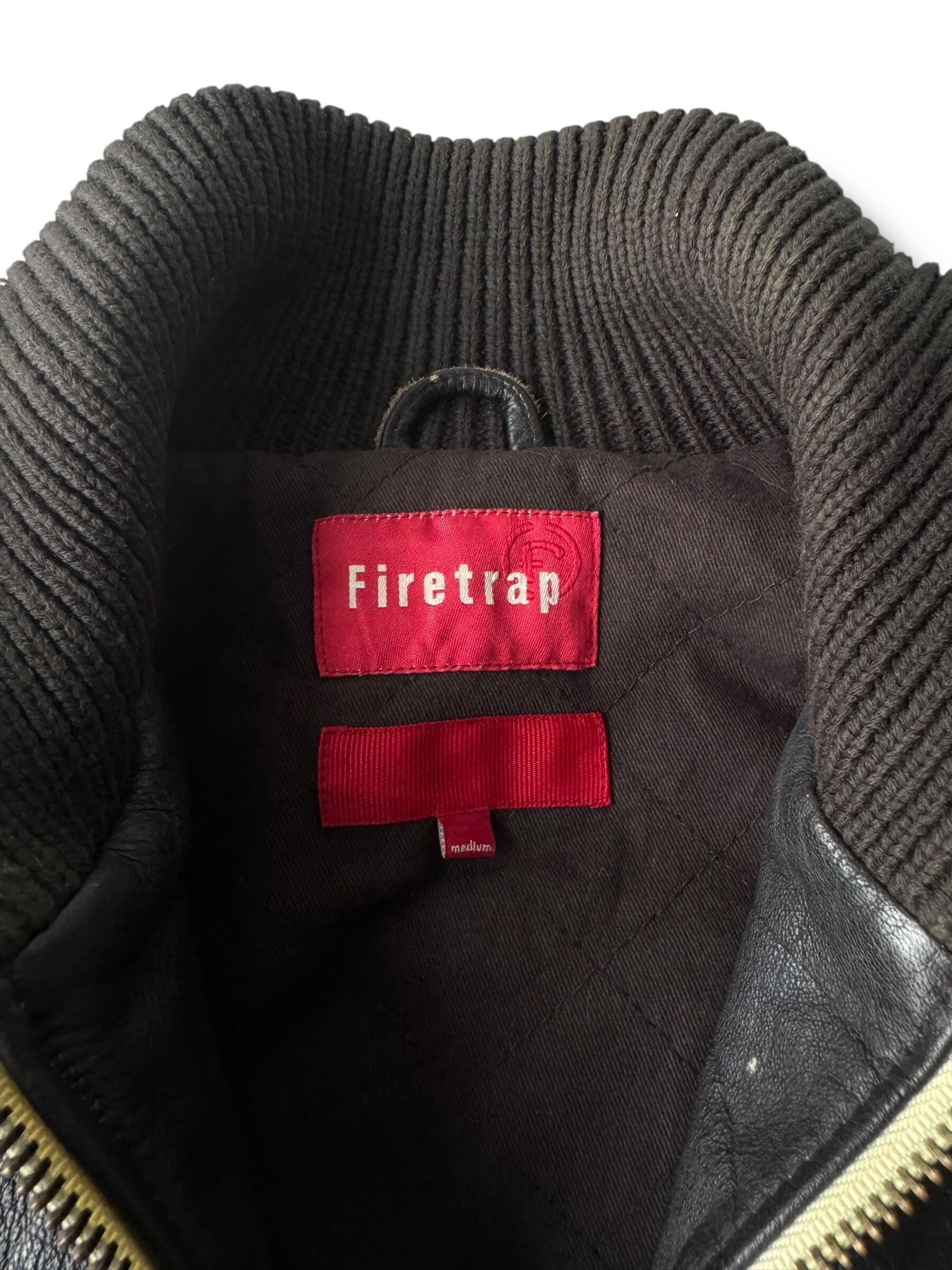 ♾Firetrap♾ switching design leather zip up flight jacket size medium