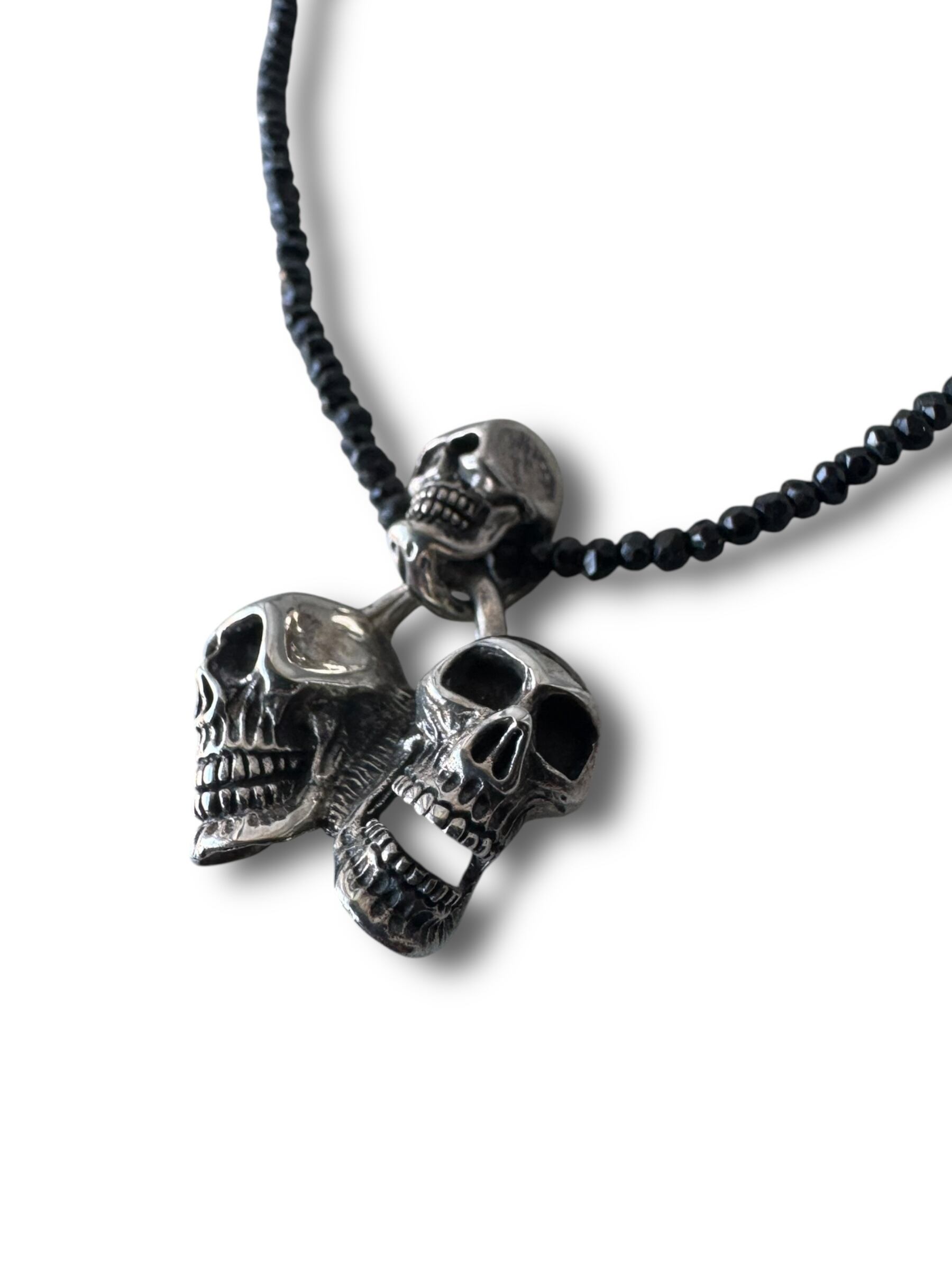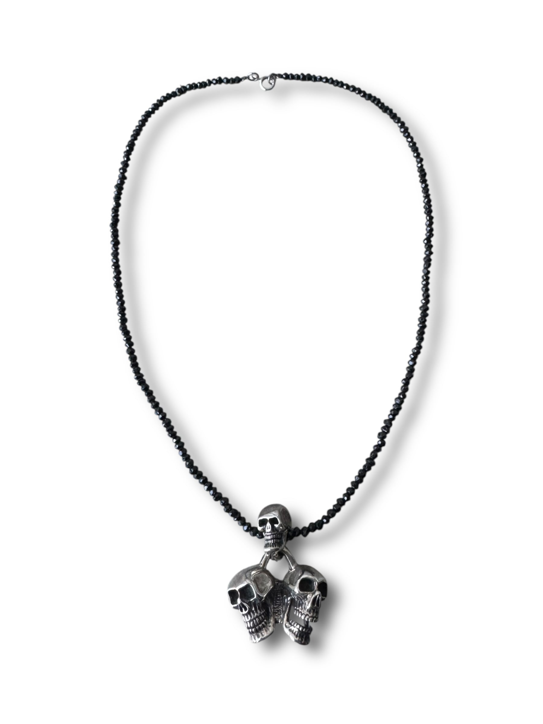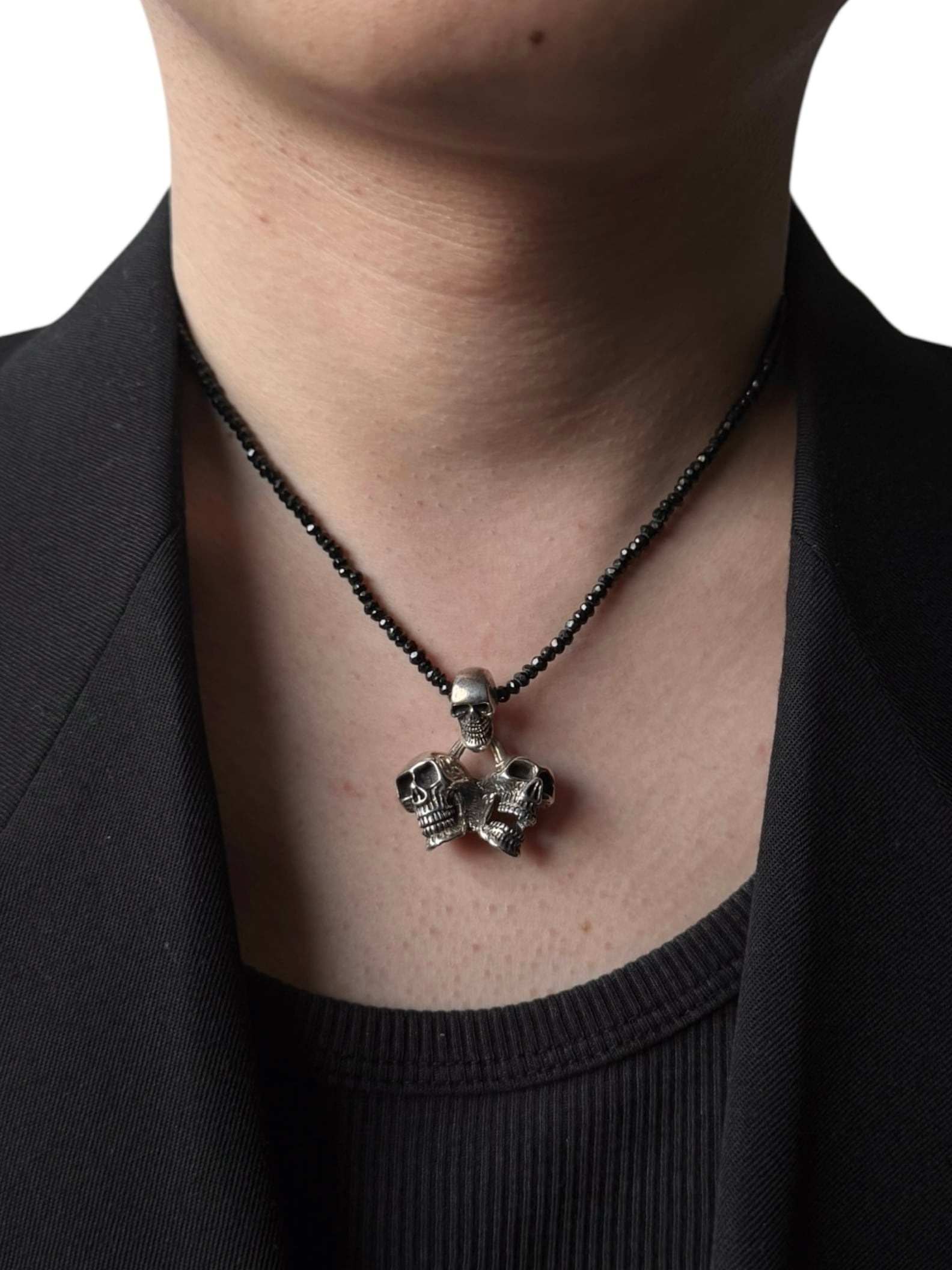 黒のビーズに目を惹かれる煌びやかなネックレス。