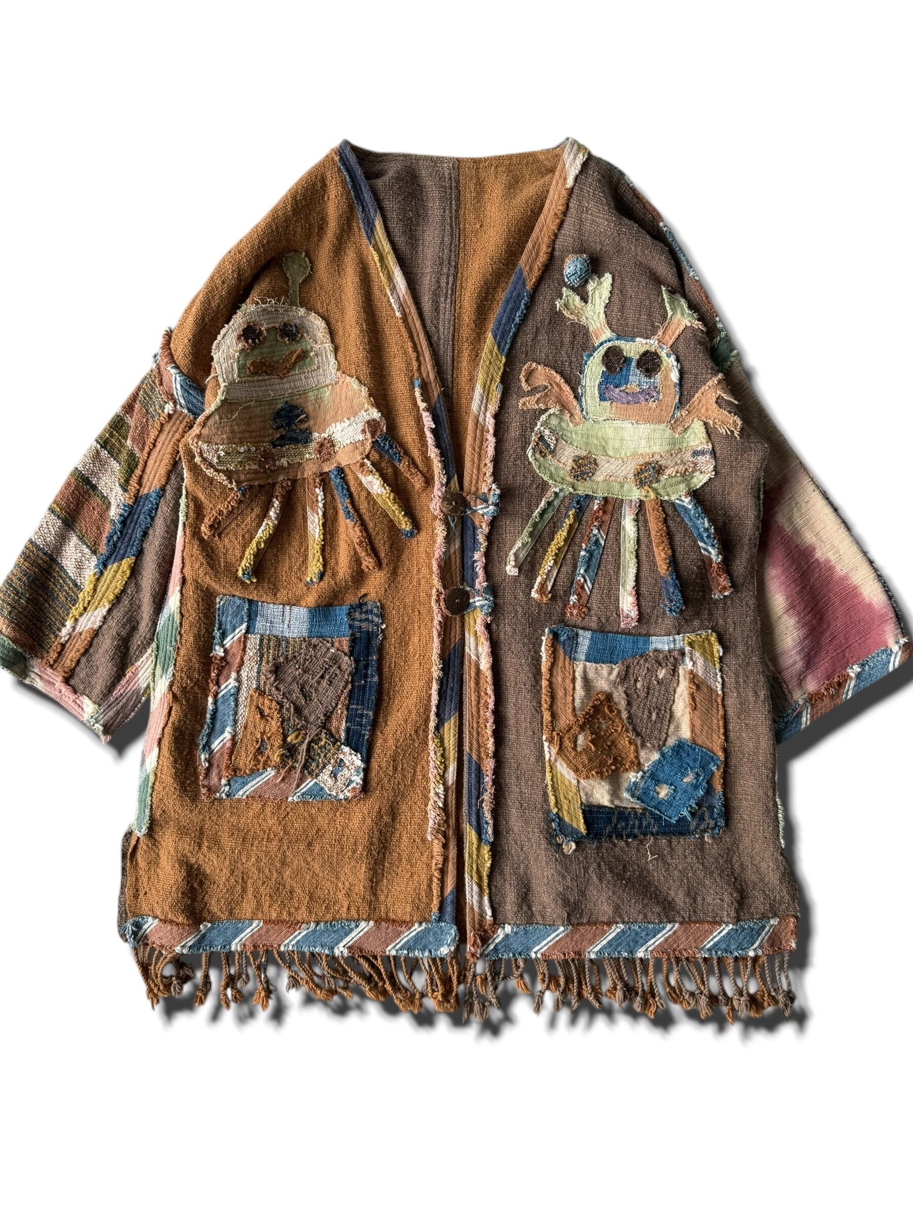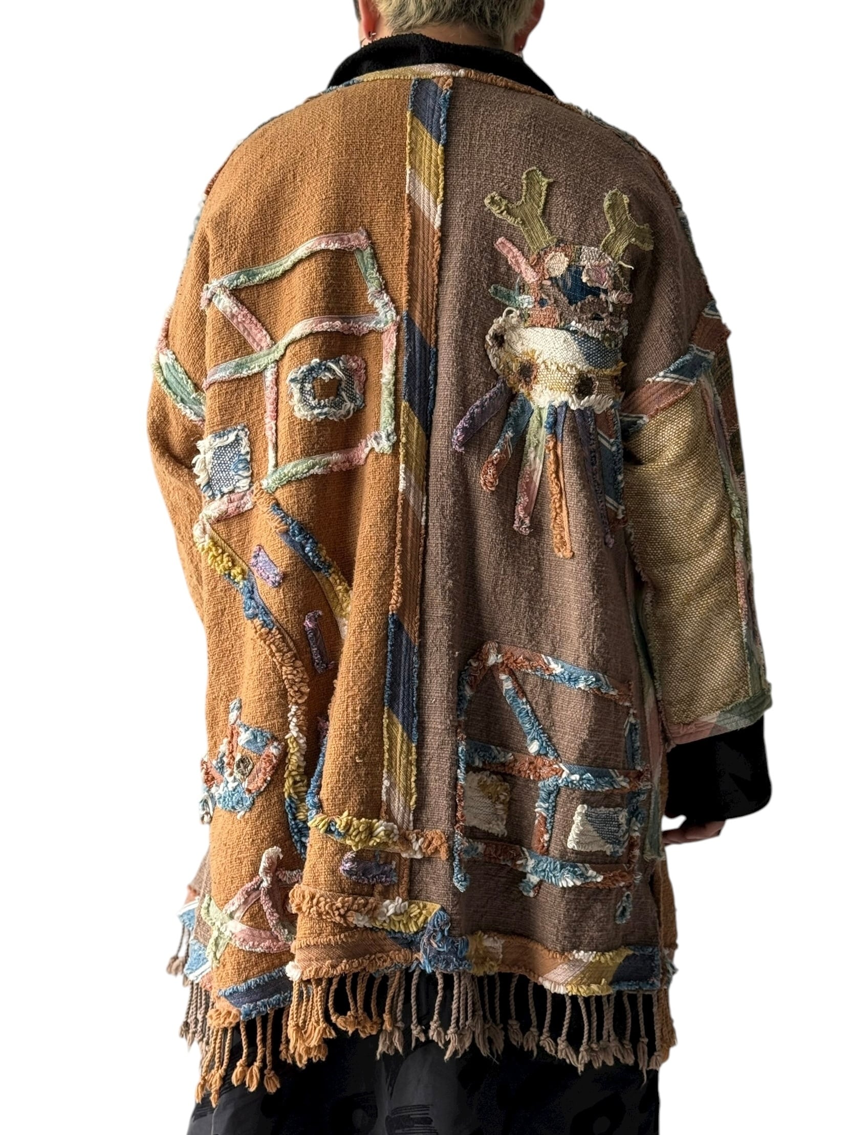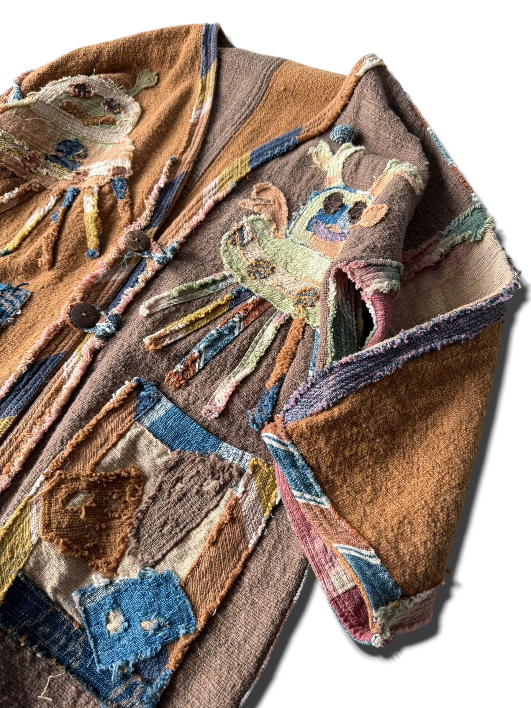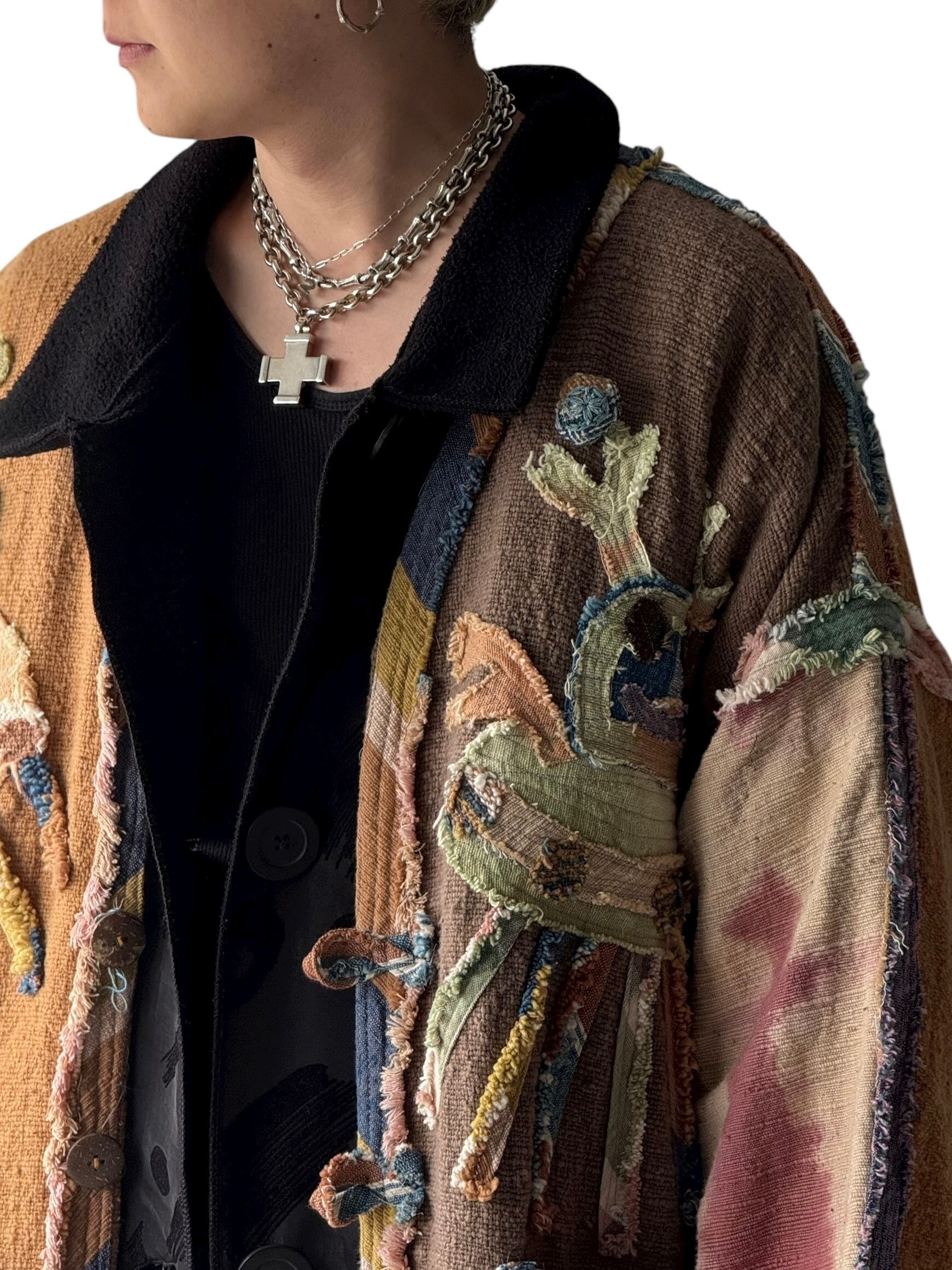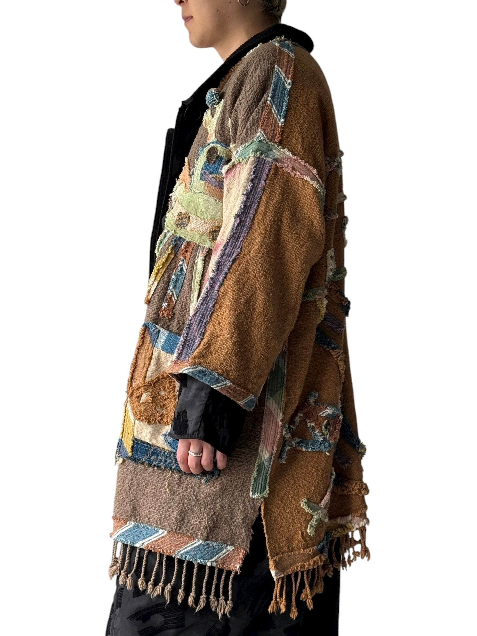 織り生地で芸術的なまでのパッチワークで制作されたであろうデザインコート!!!!
