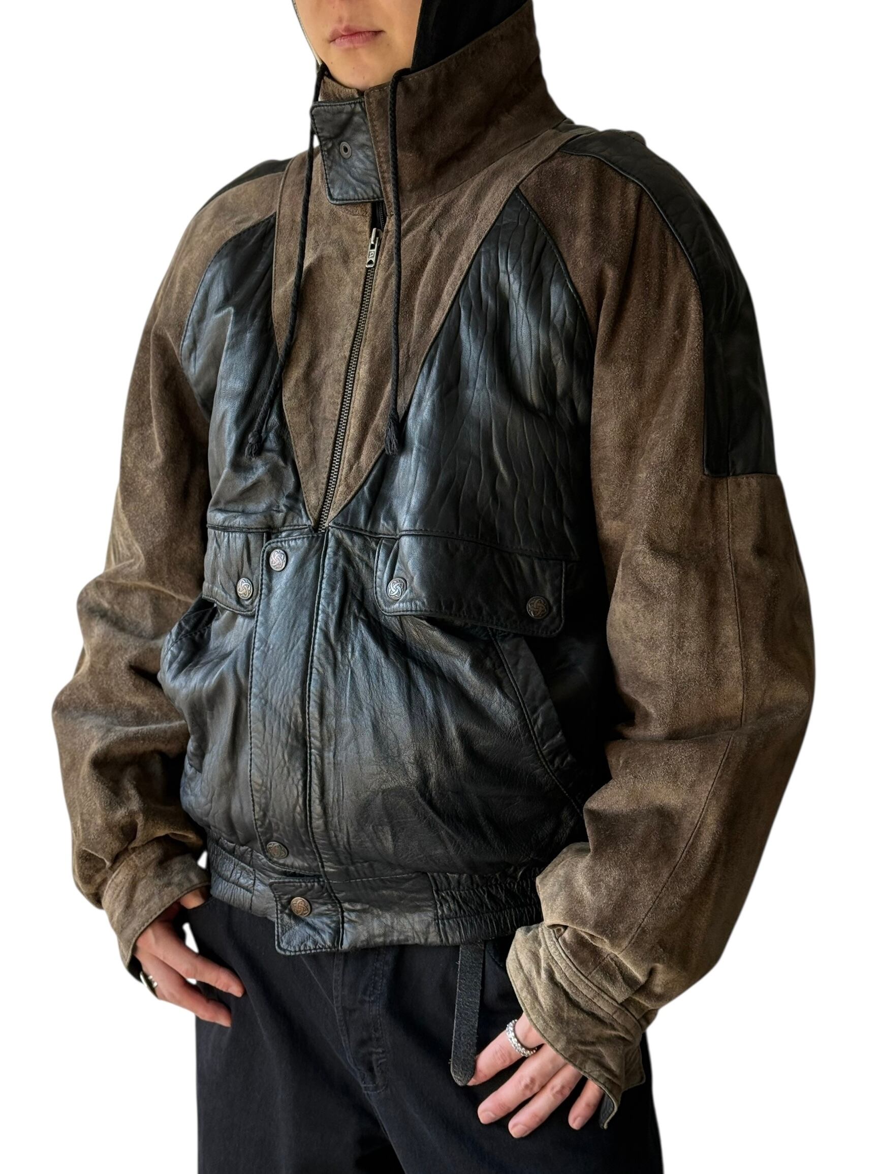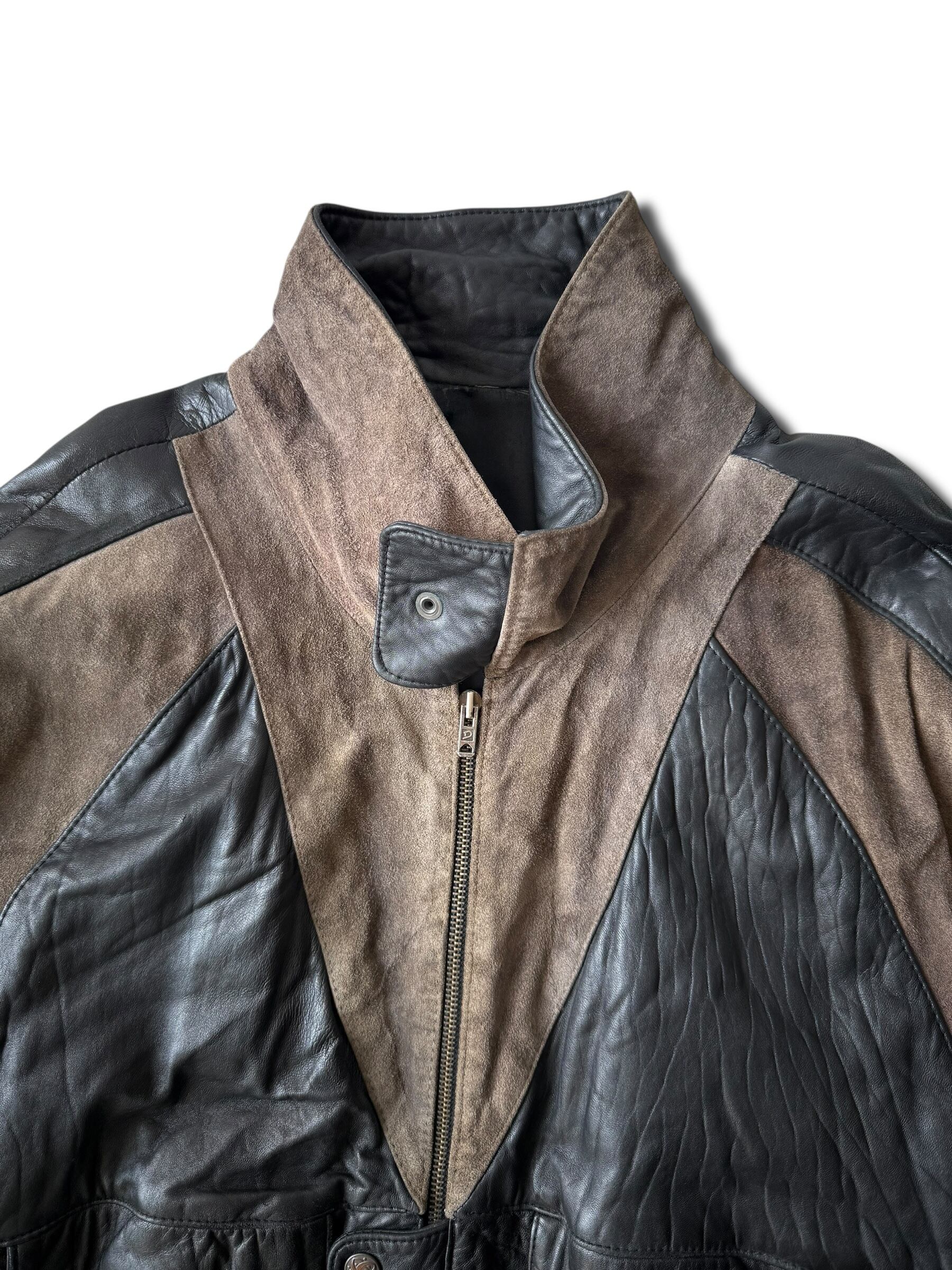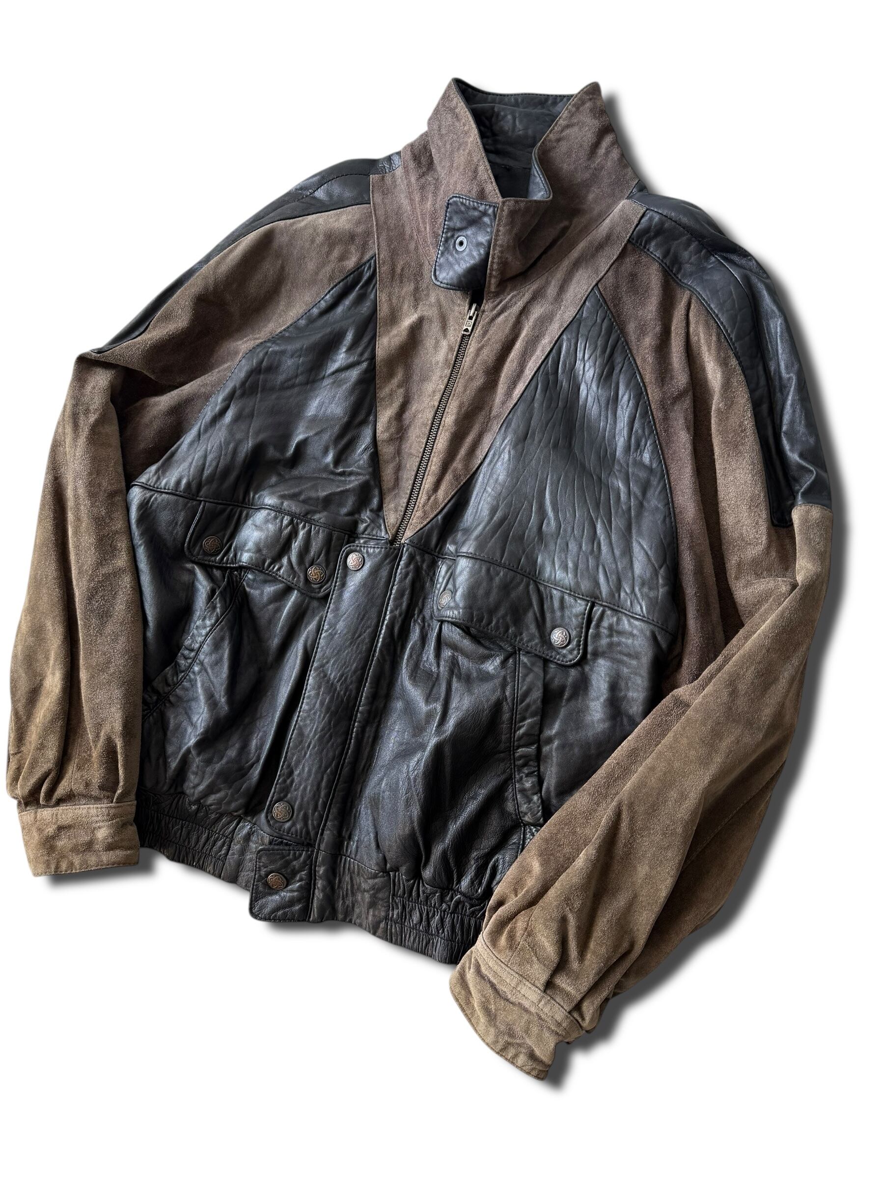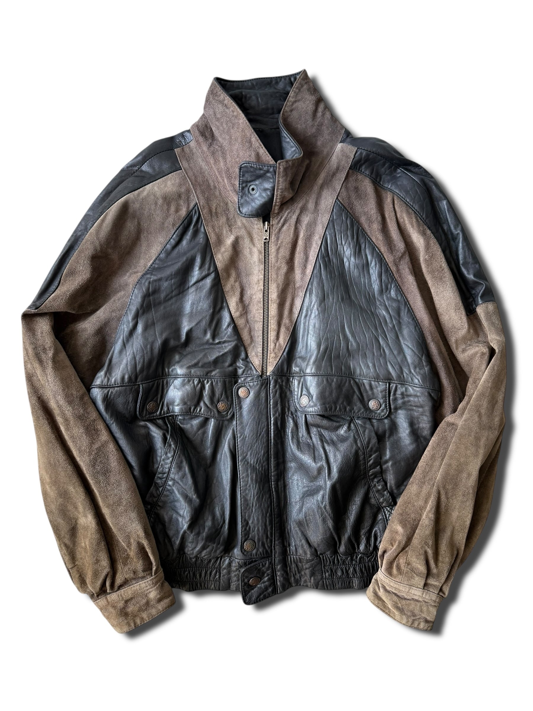 【Old unknown】 Switching design Stand-neck zip-up leather jacket