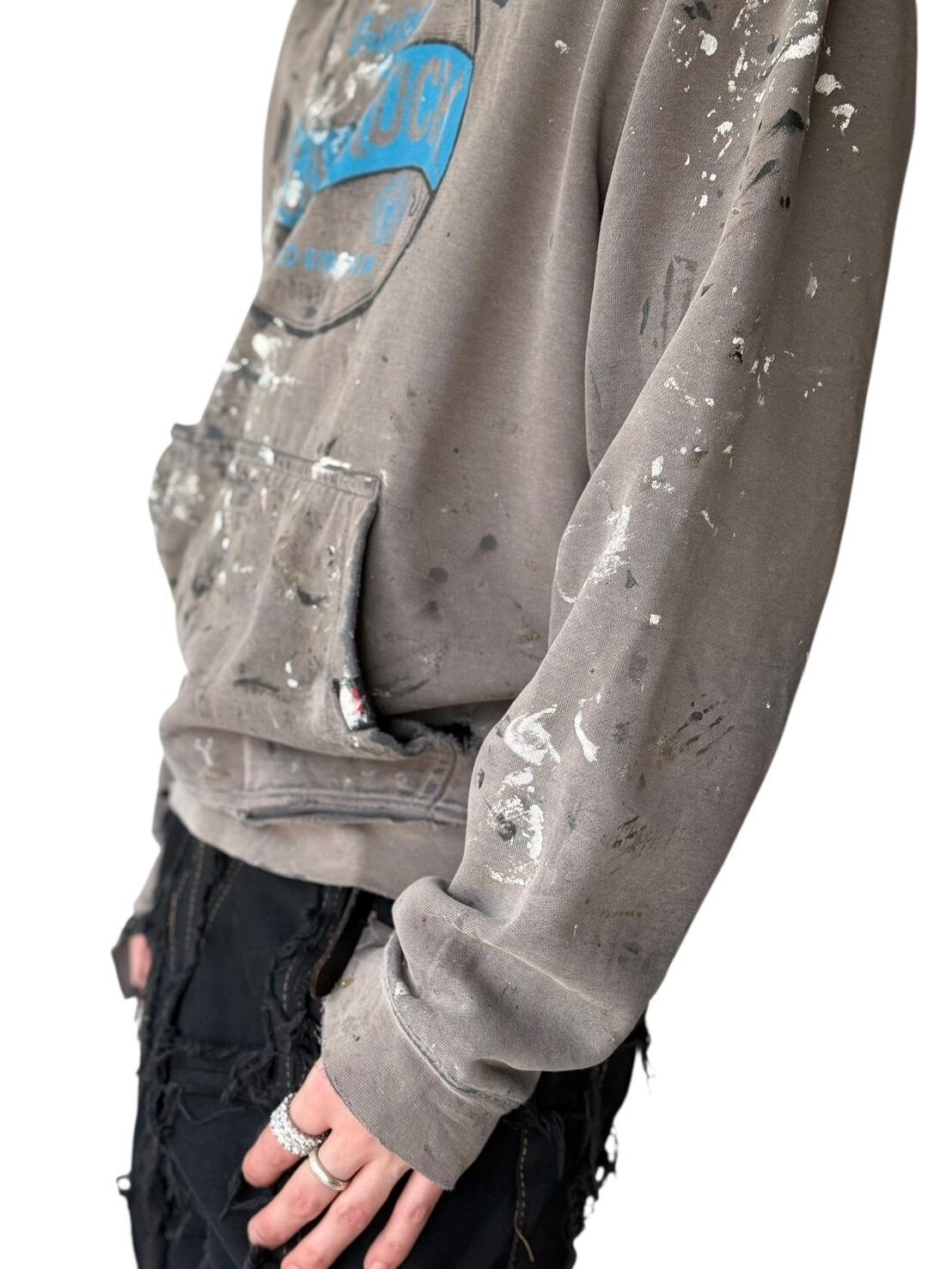 Paint-splattered damage design hoodie