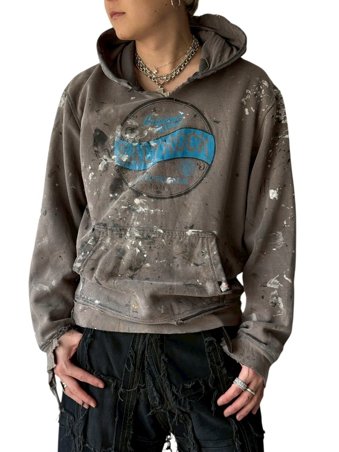 【SALTROCK】Paint-splattered damage design hoodie