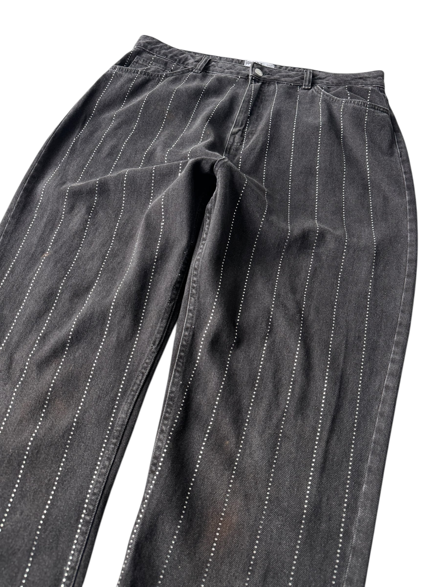 ♾Rita Ora♾ Rhinestone Striped Wide Silhouette Denim Pants size 18