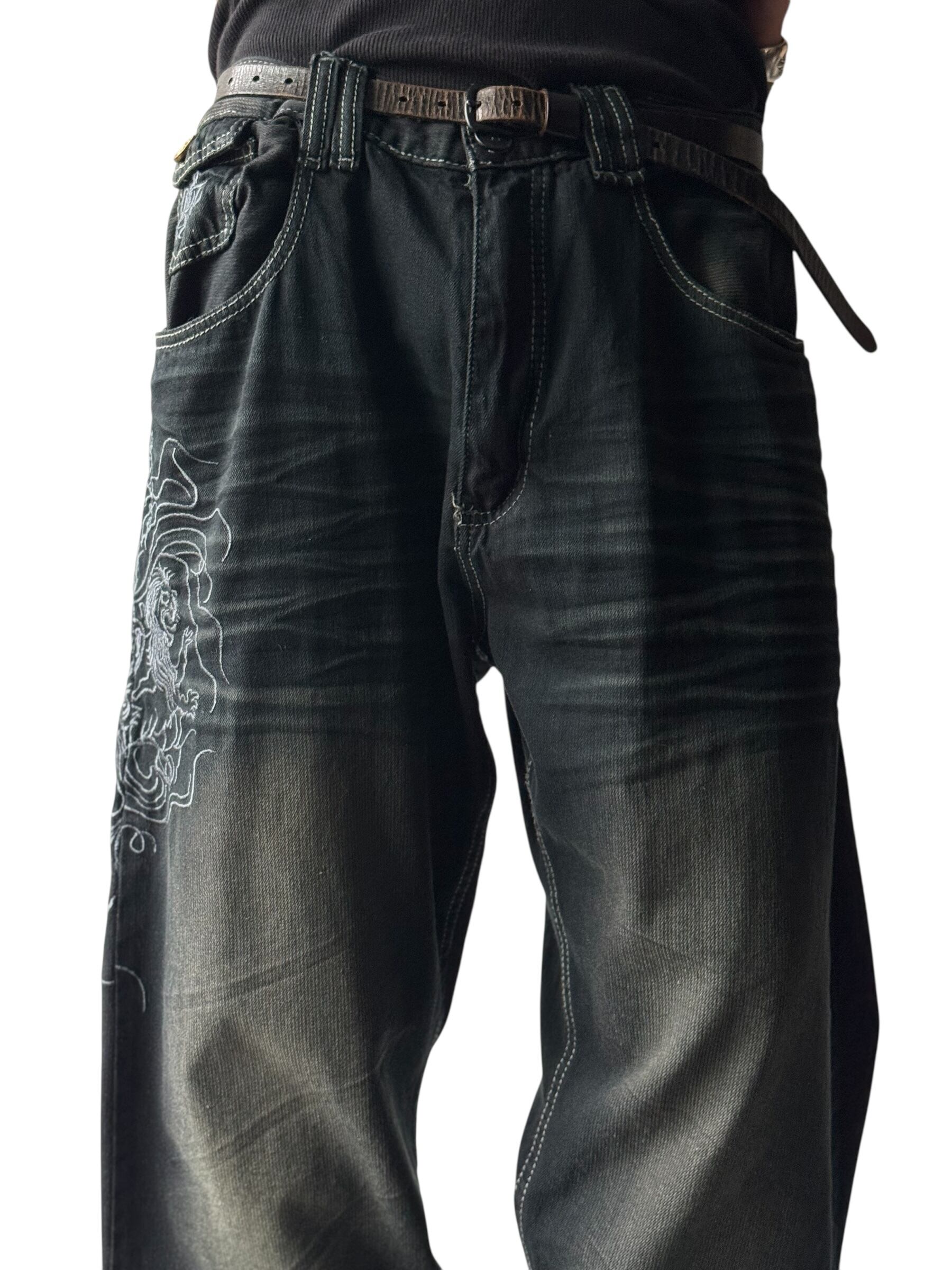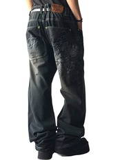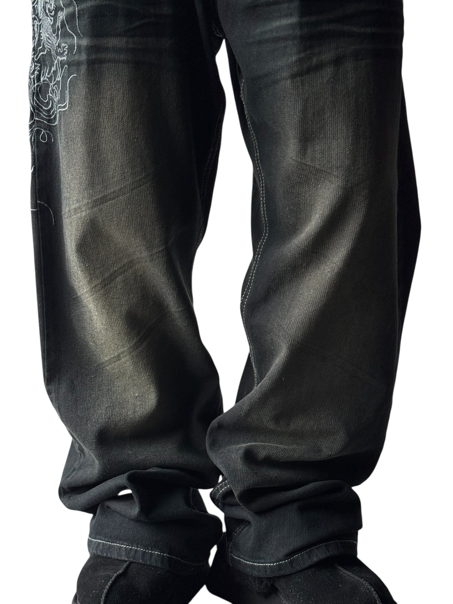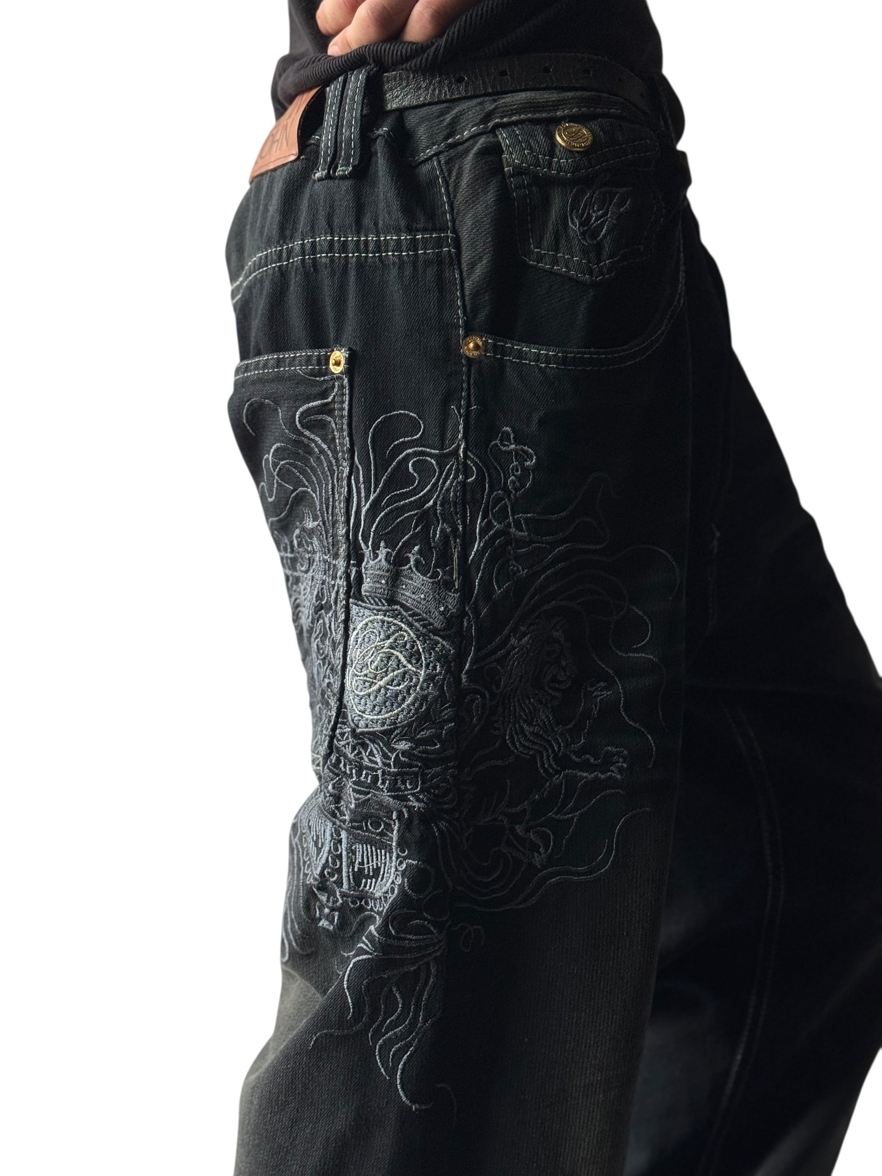 ♾SEAN JOHN♾ emblem motif Embroidered wide denim pants size 38