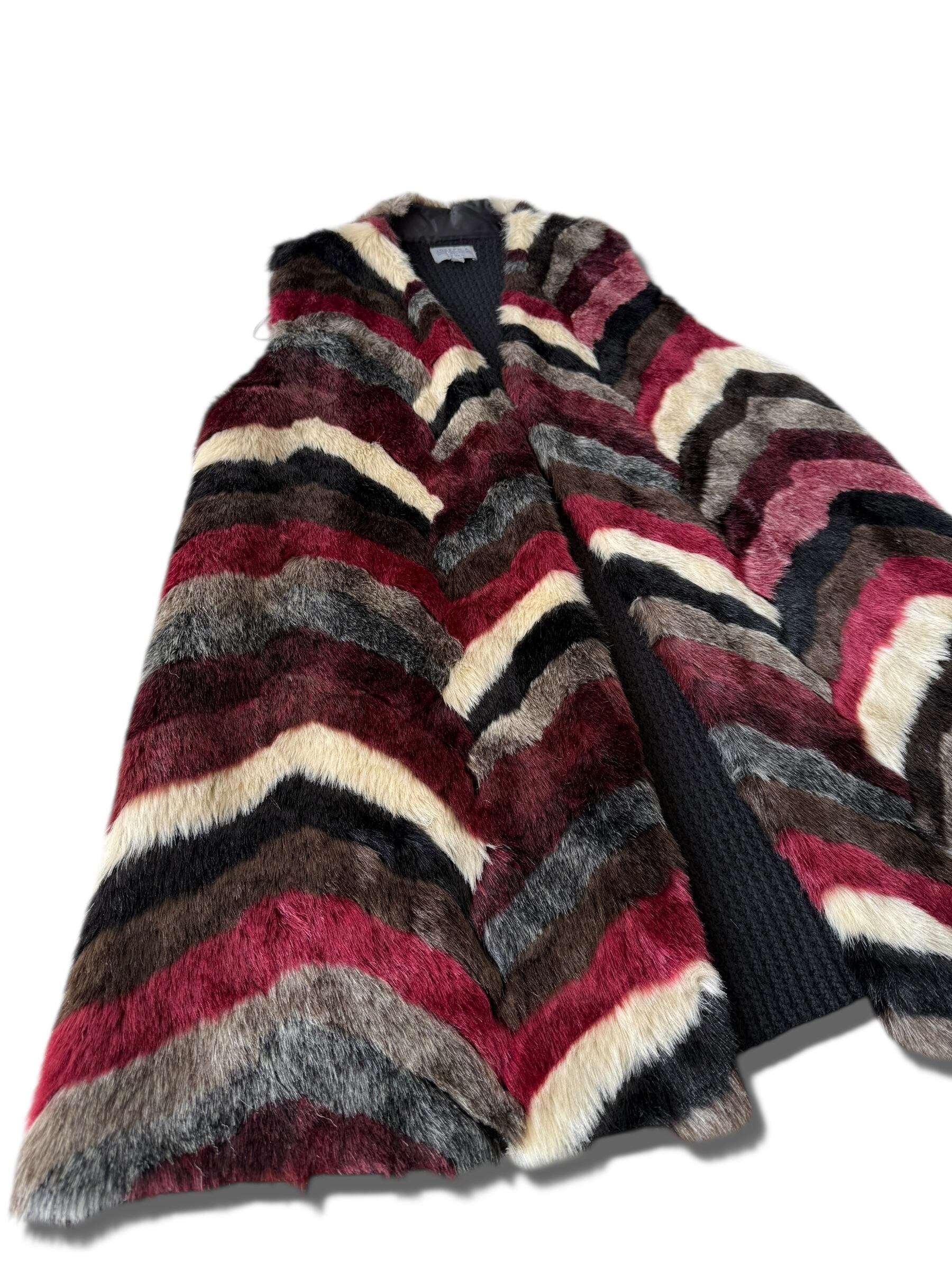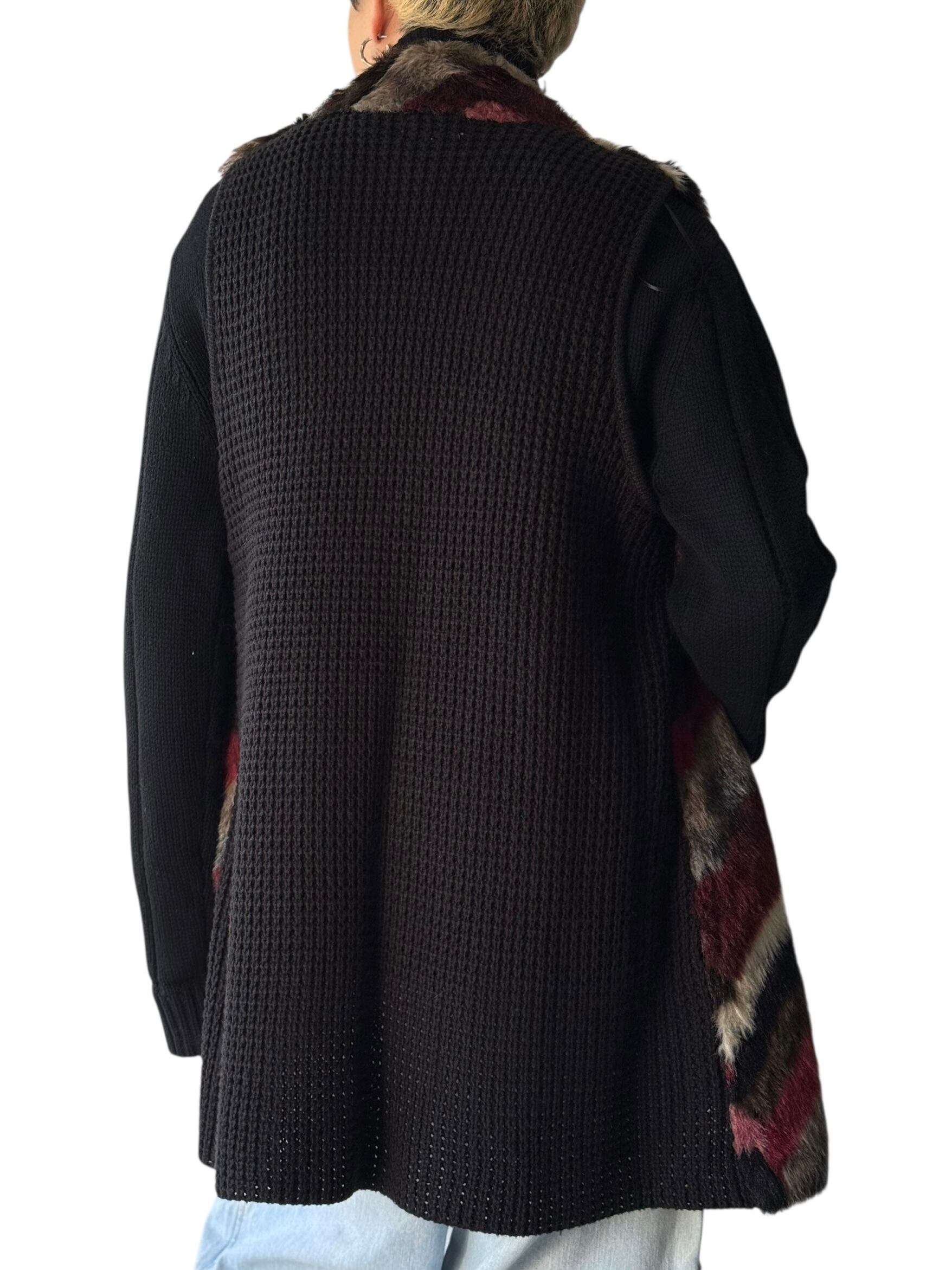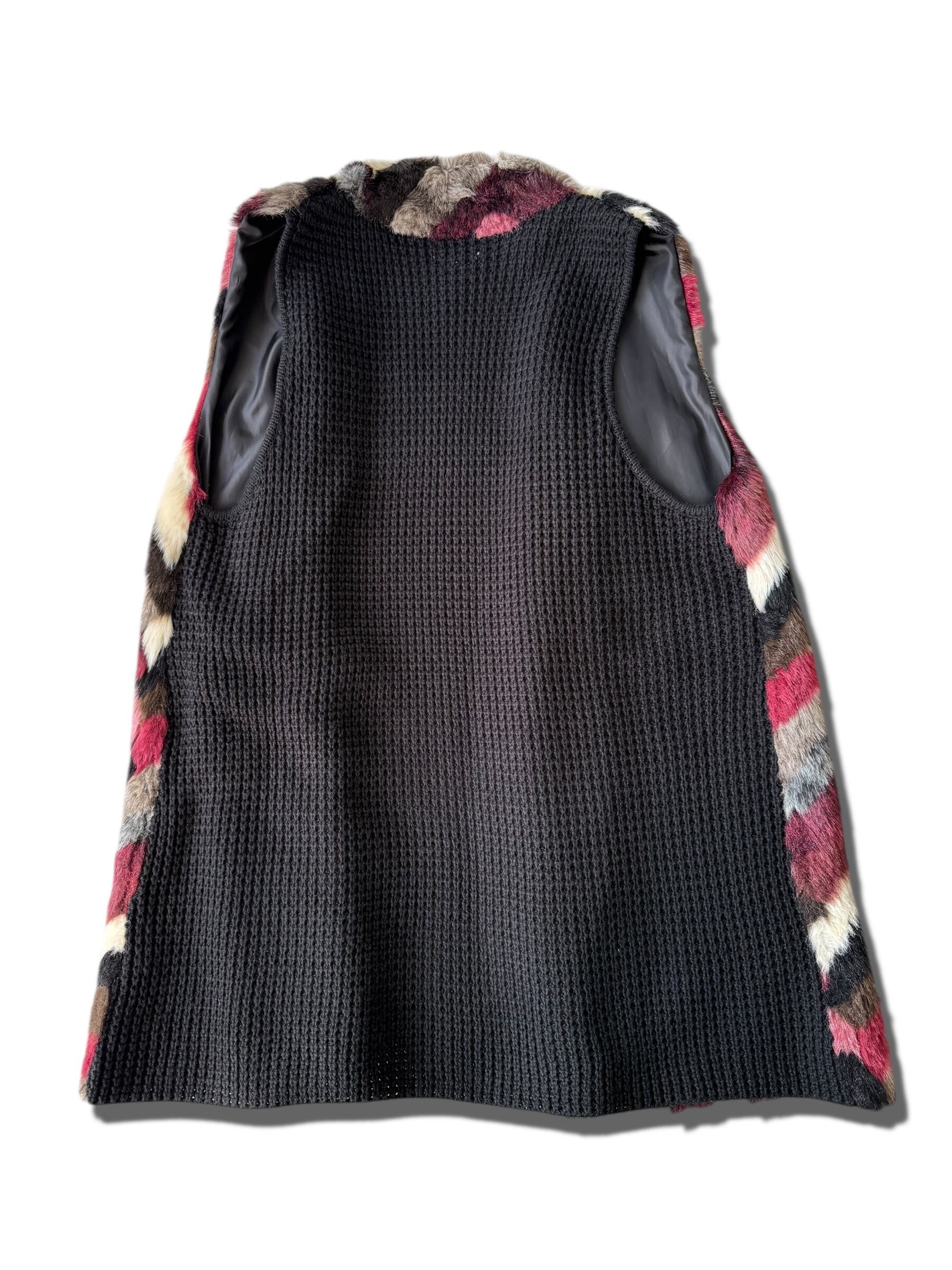 Knit Swiching Oversized Faux Fur Long Vest