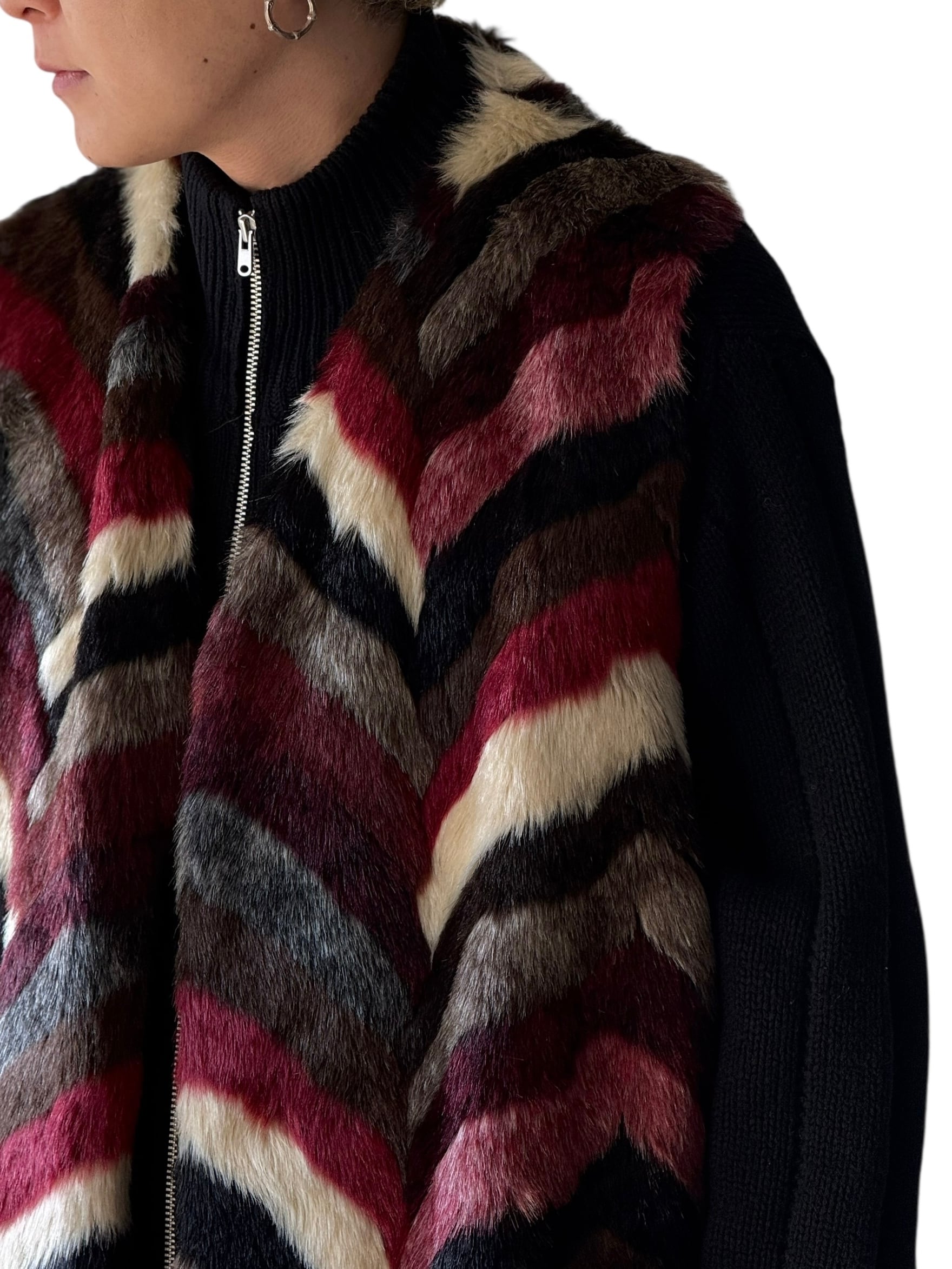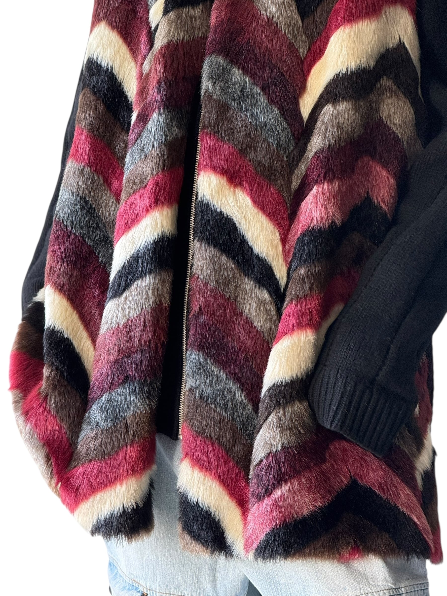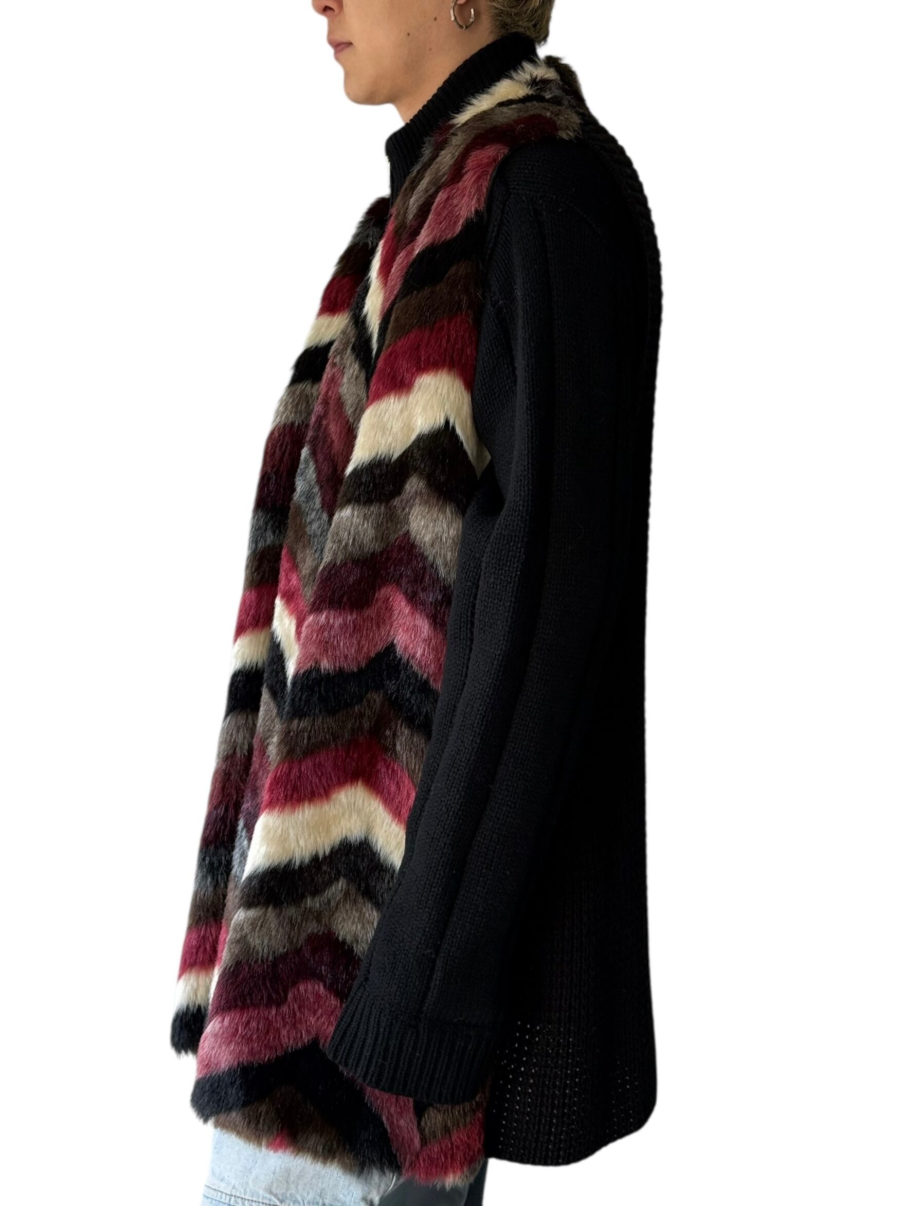Knit Swiching Oversized Faux Fur Long Vest