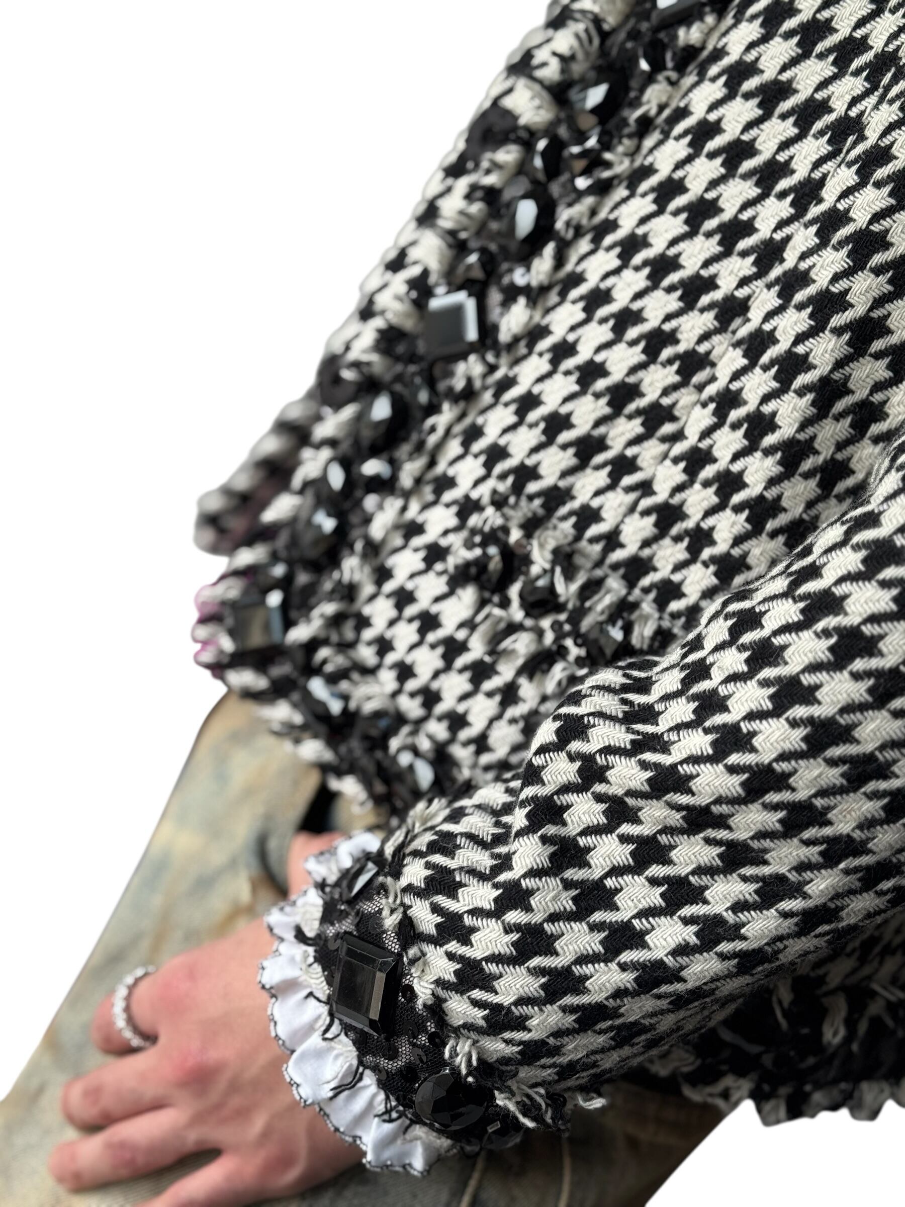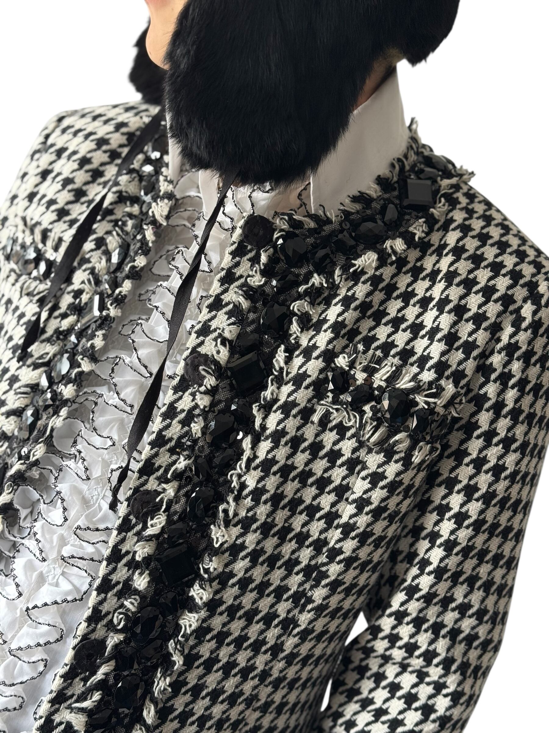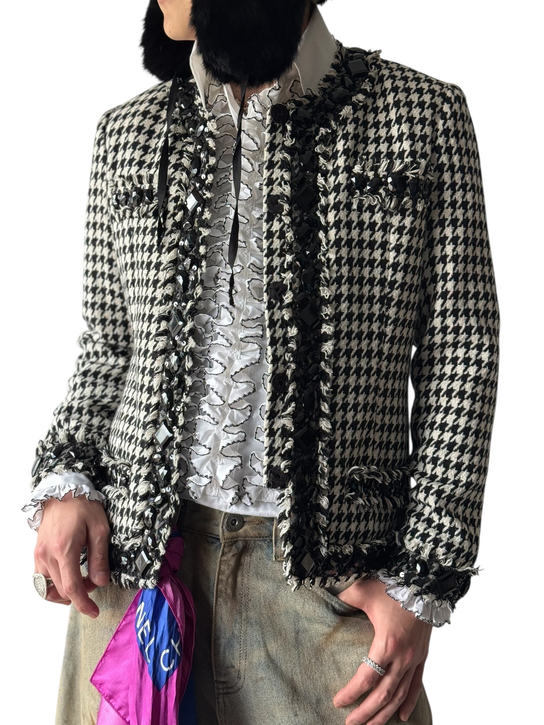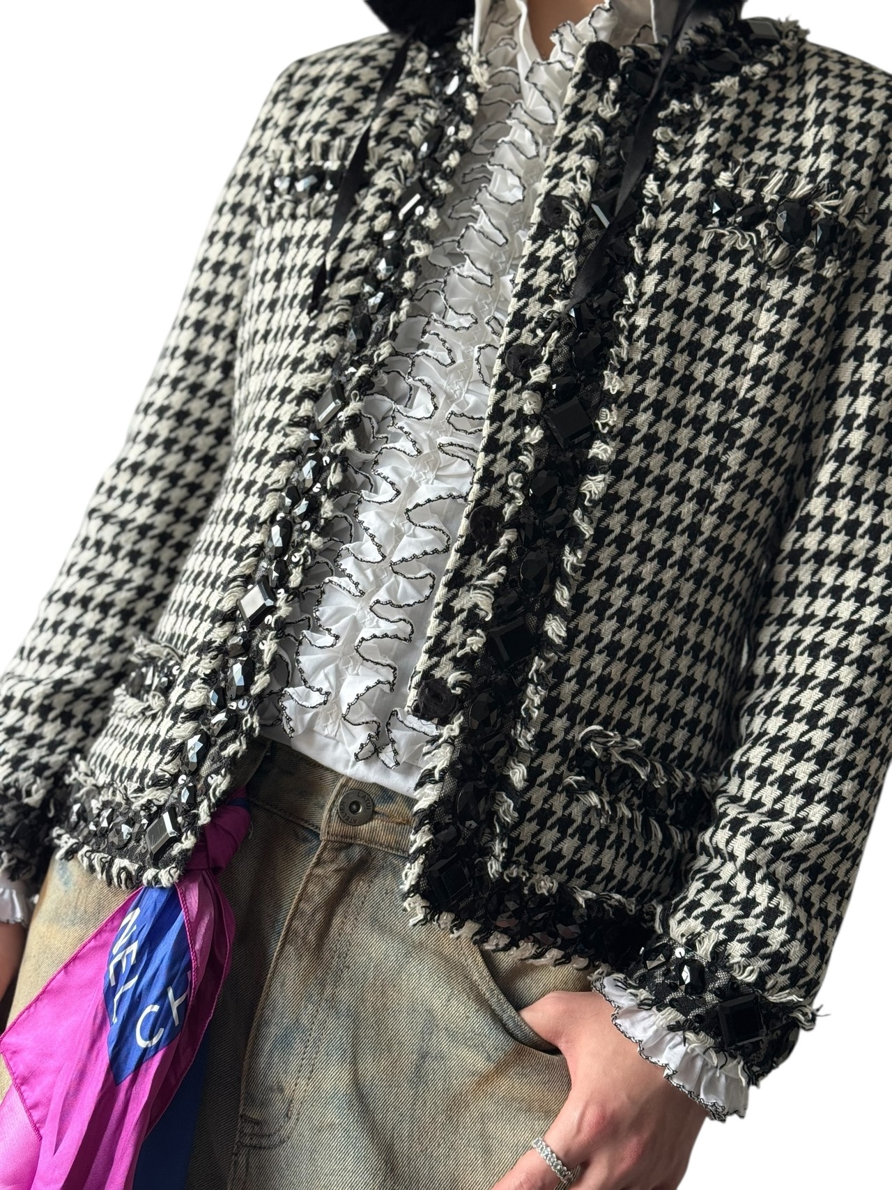 千鳥格子柄に、フリンジやビジューを大胆にあらったツイードジャケット‼️