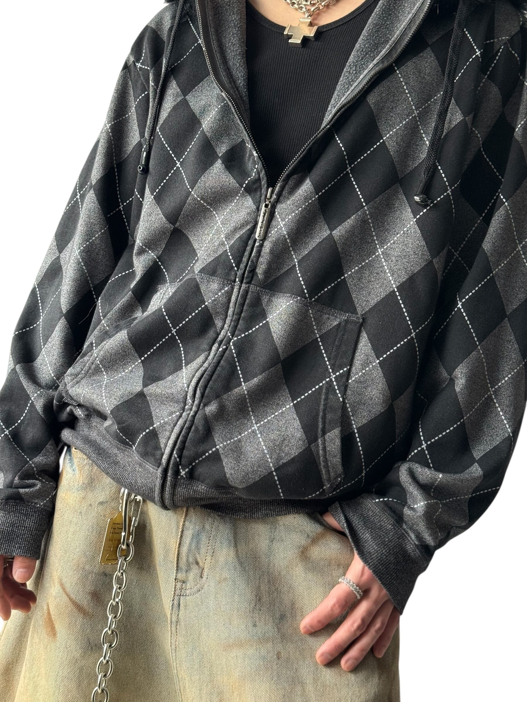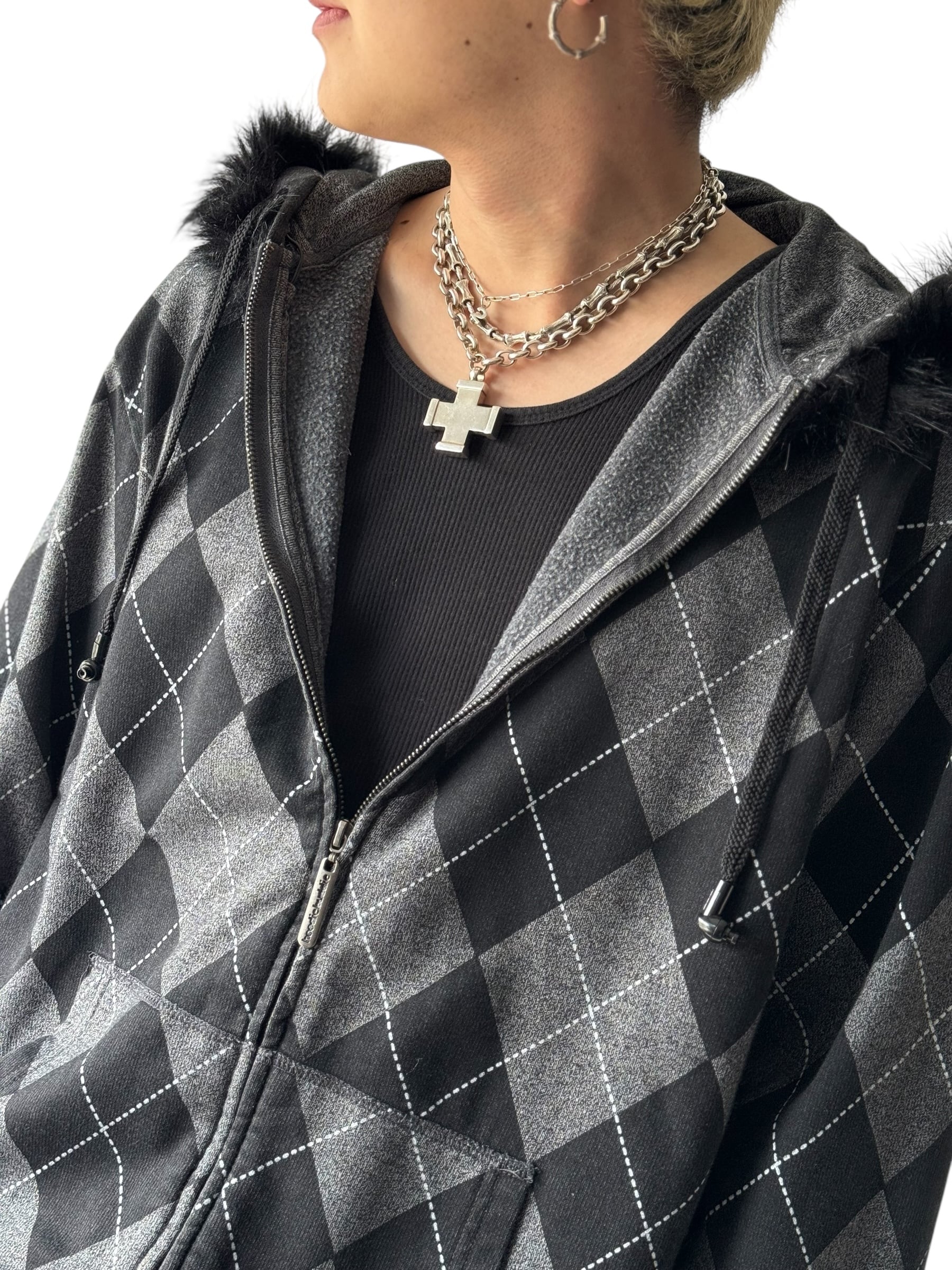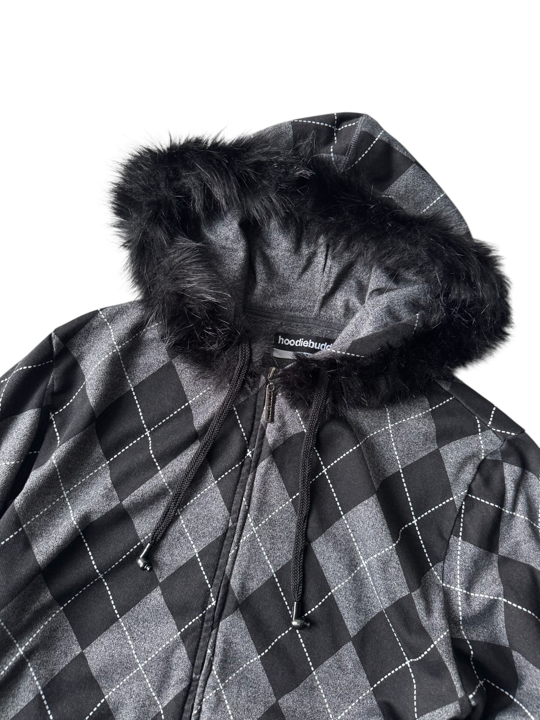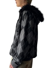 ♾HOODIEBUDDIE♾ Argyle pattern fur hooded zip hoodie size L