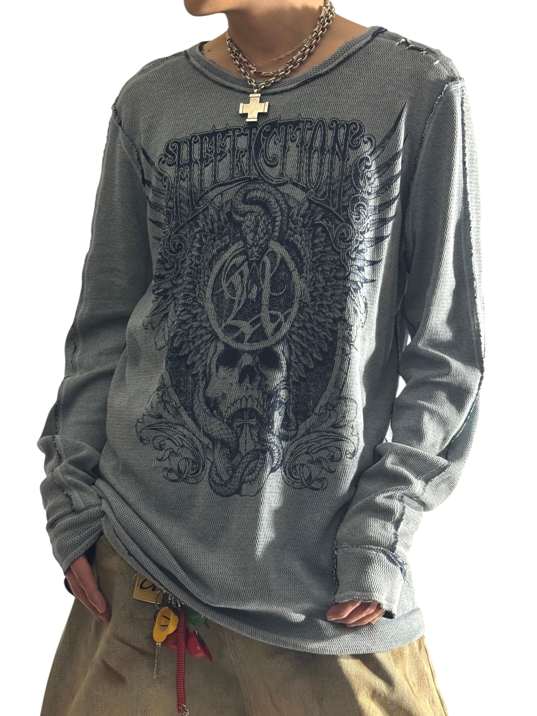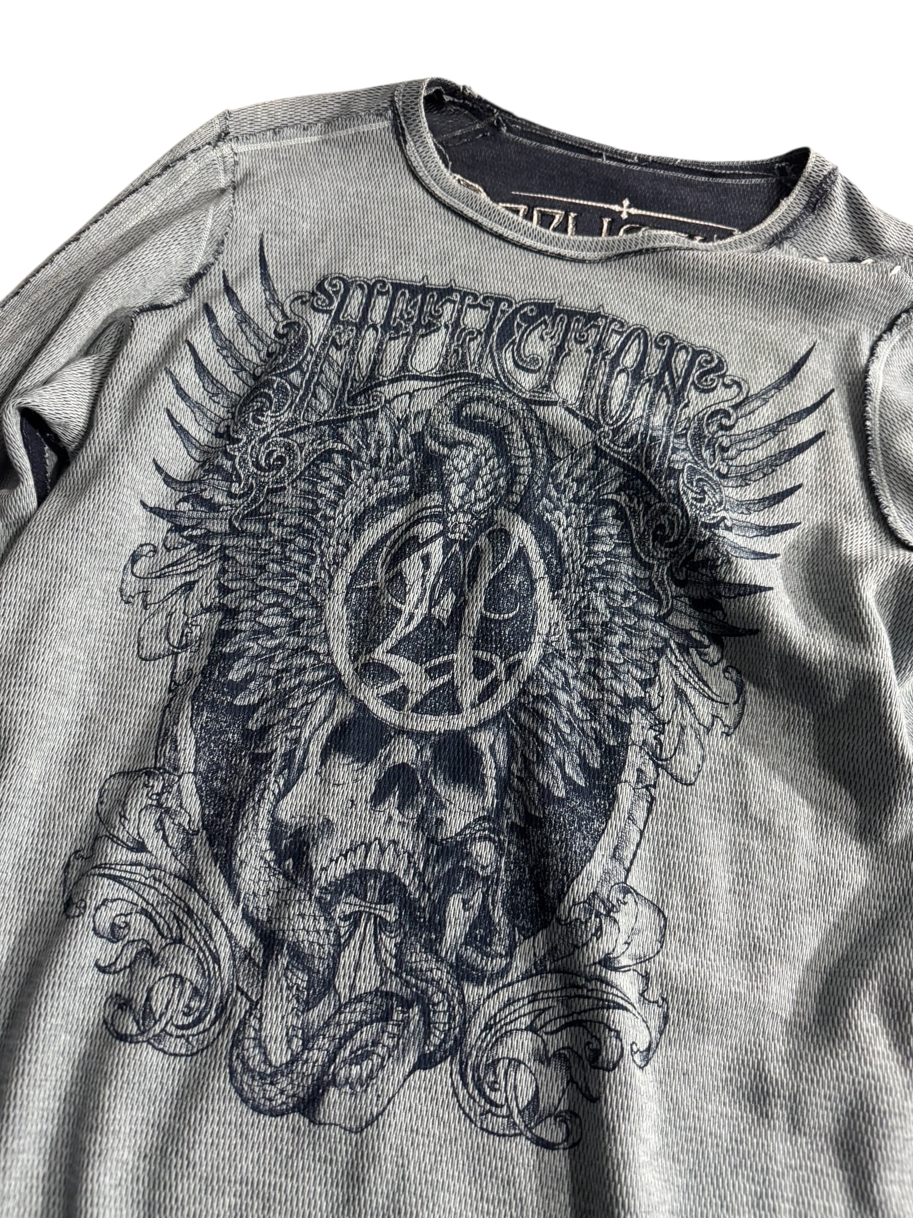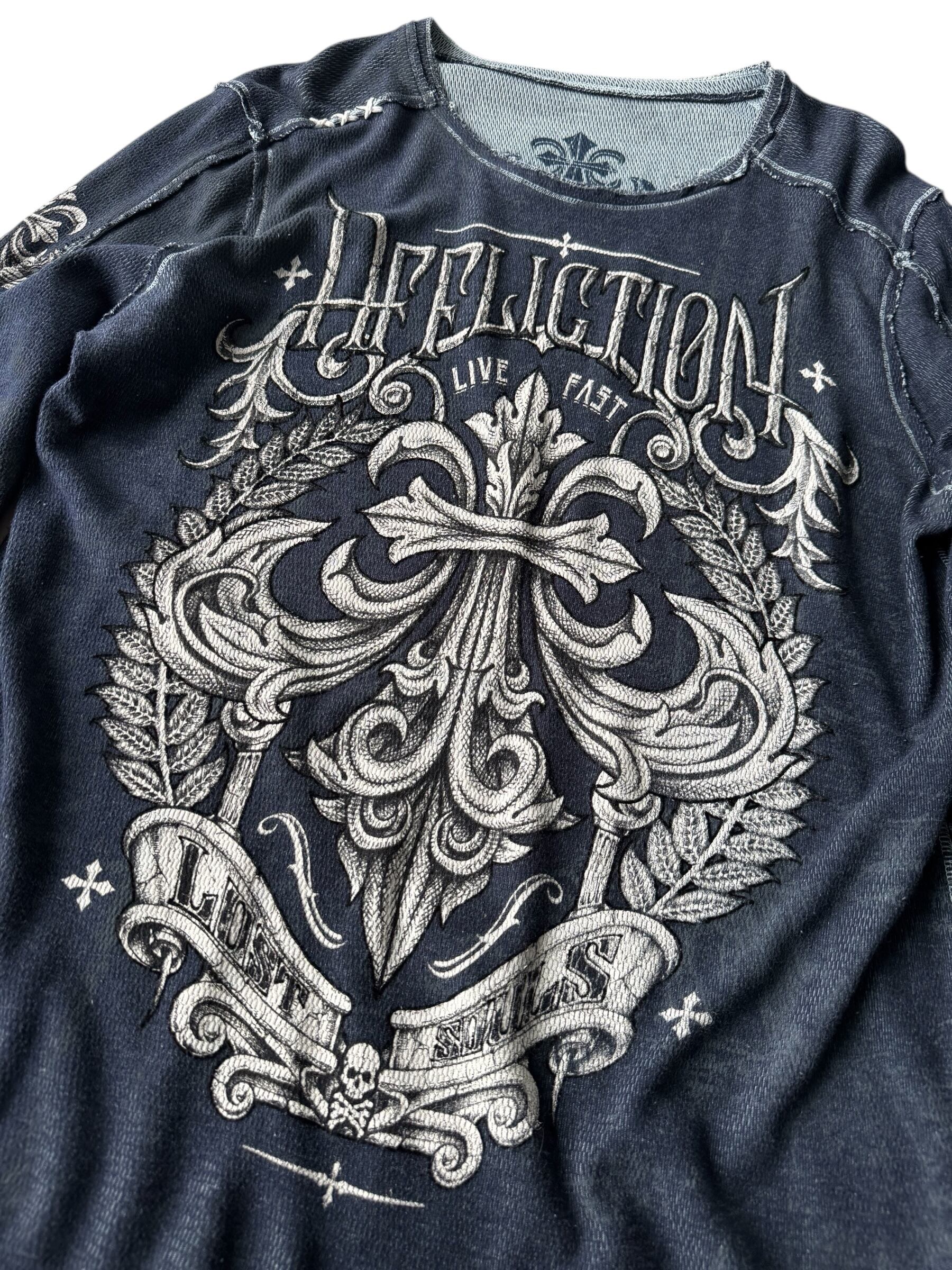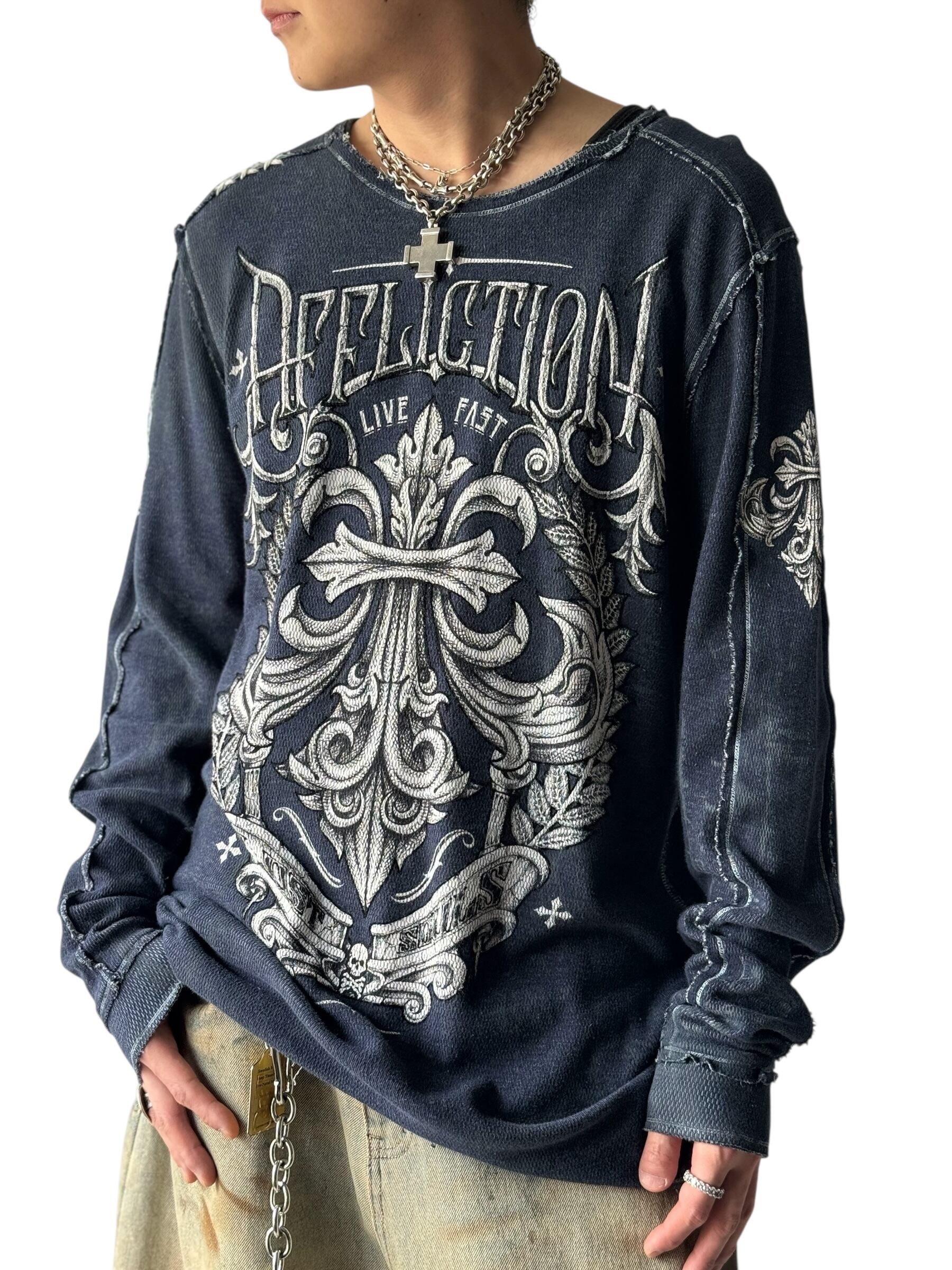 ♾Affliction♾ reversible y2k design flare print long sleeve T-shirt size XXL