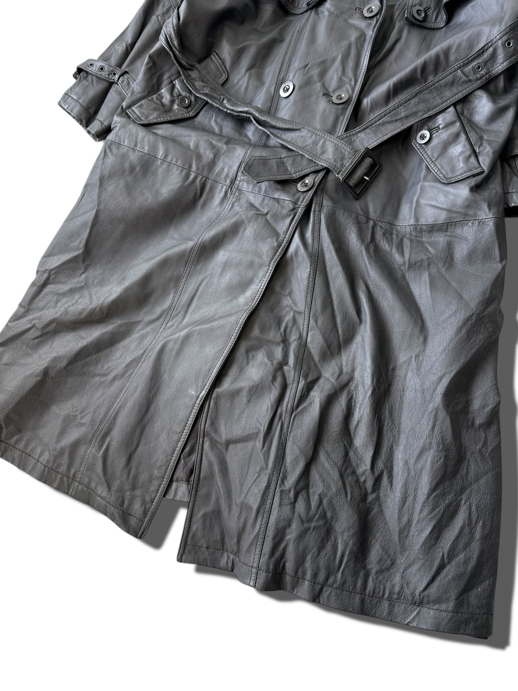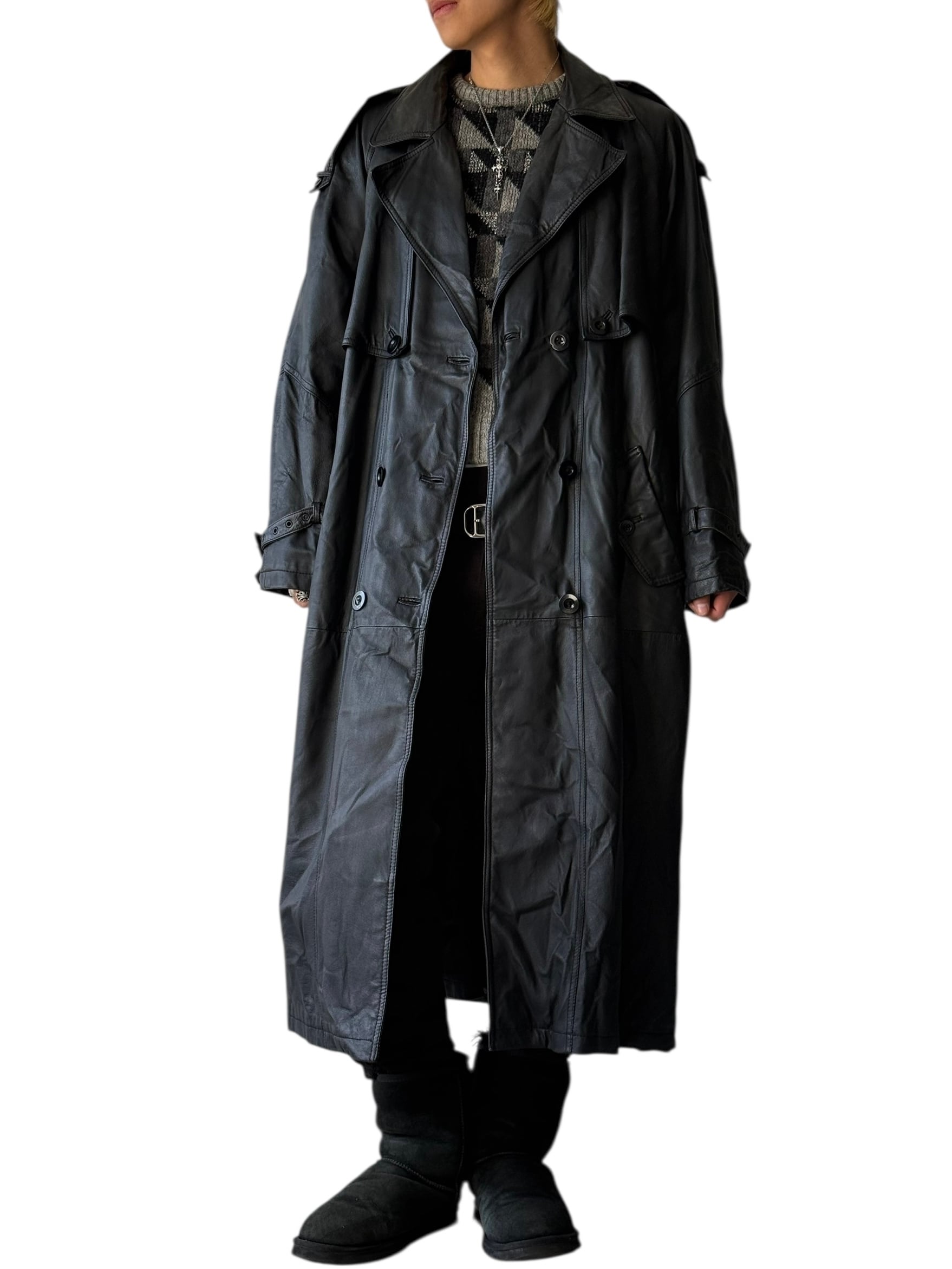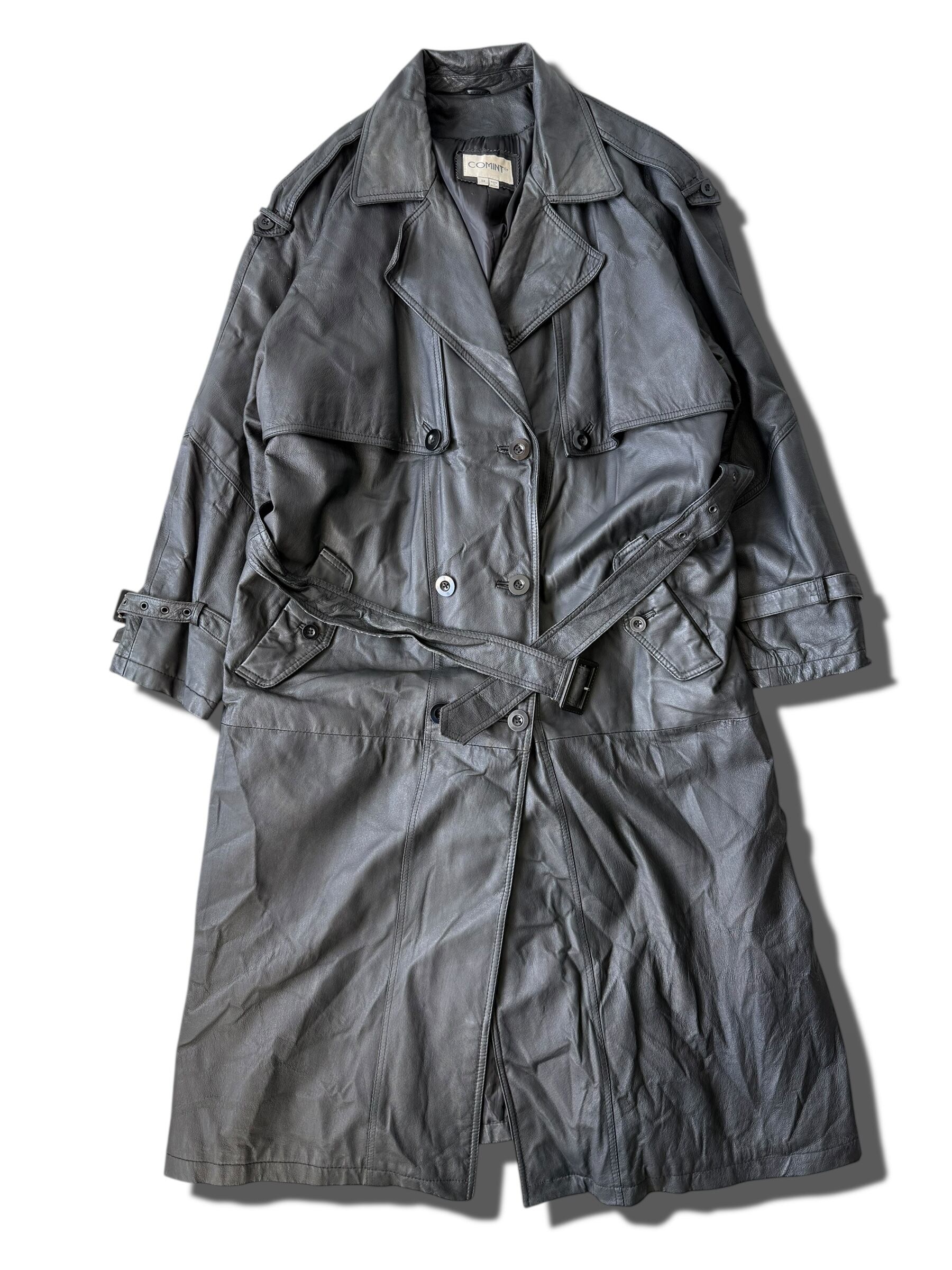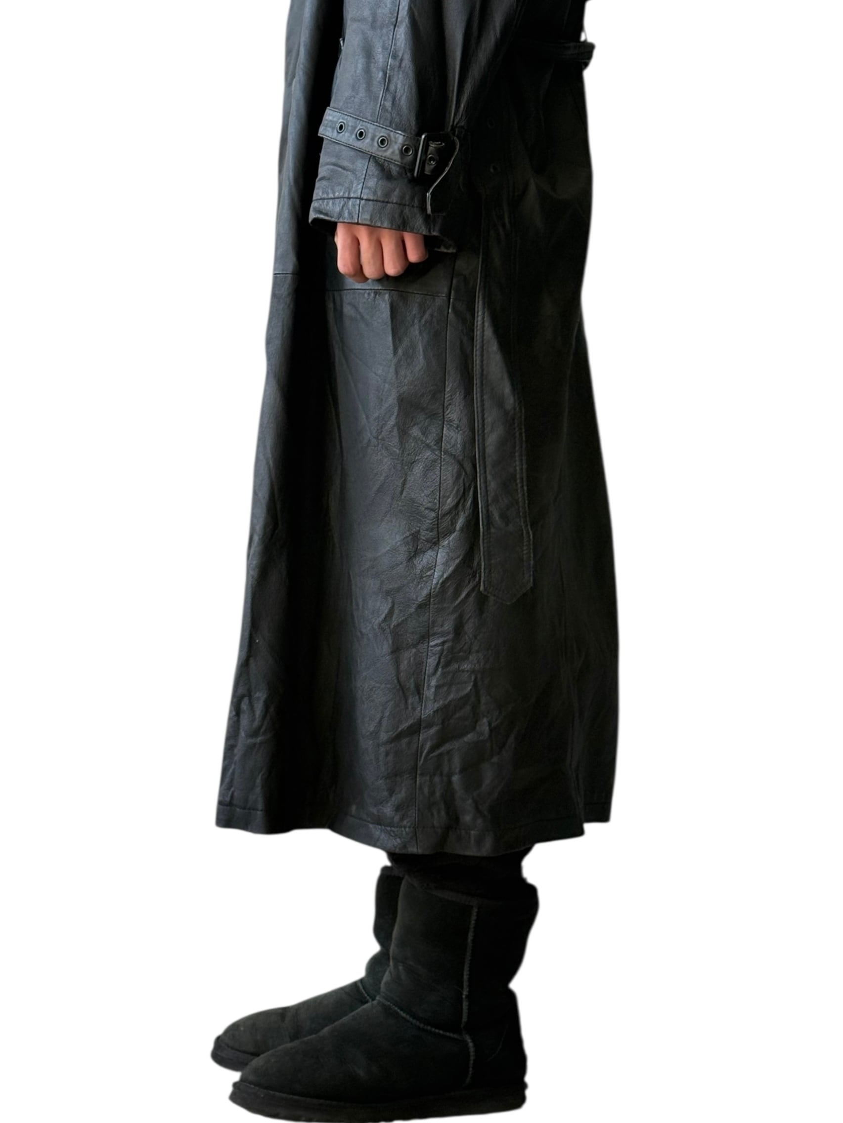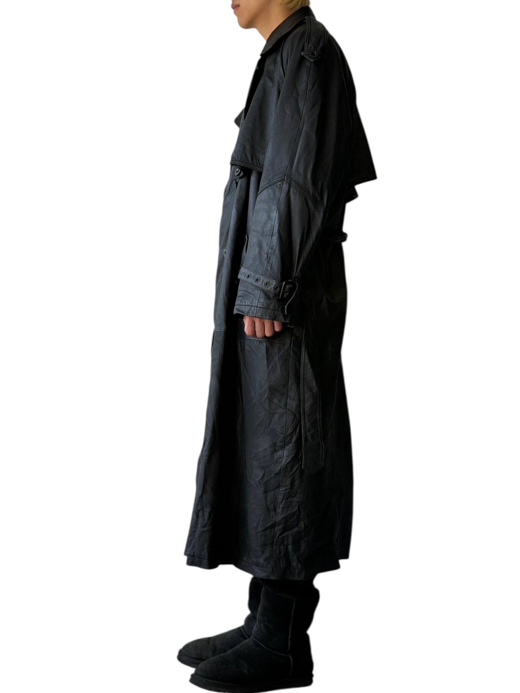 【COMINT】 Double Breasted Leather Trench Long Coat