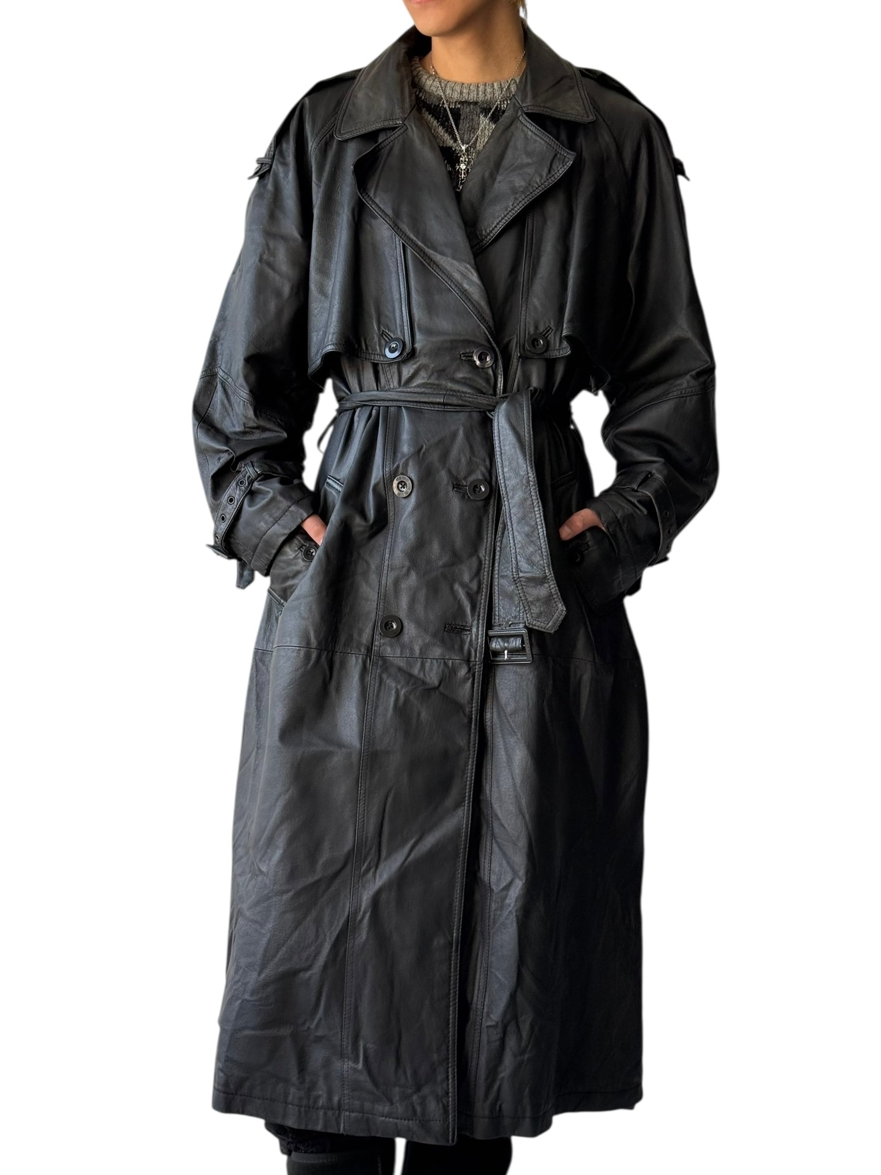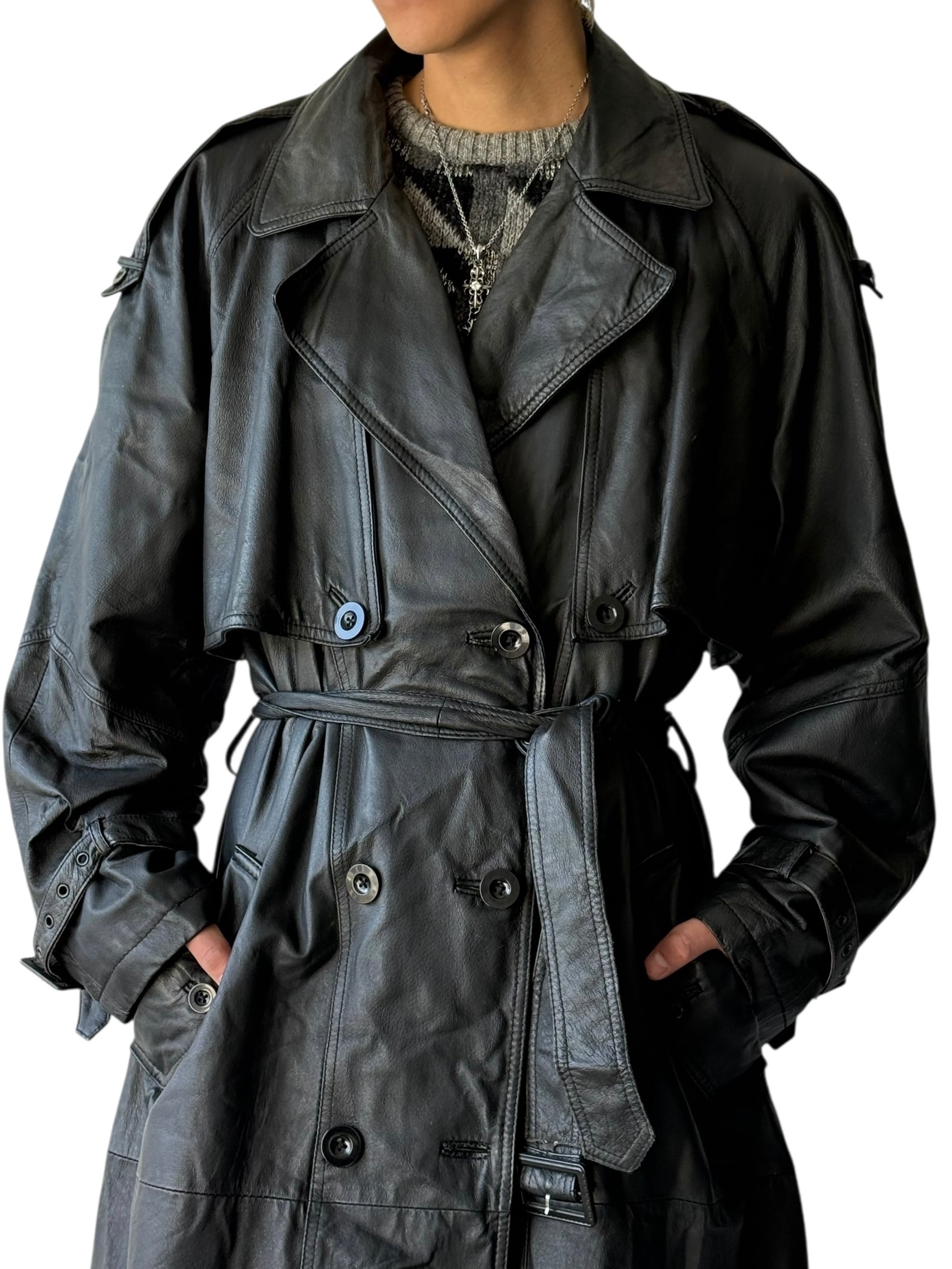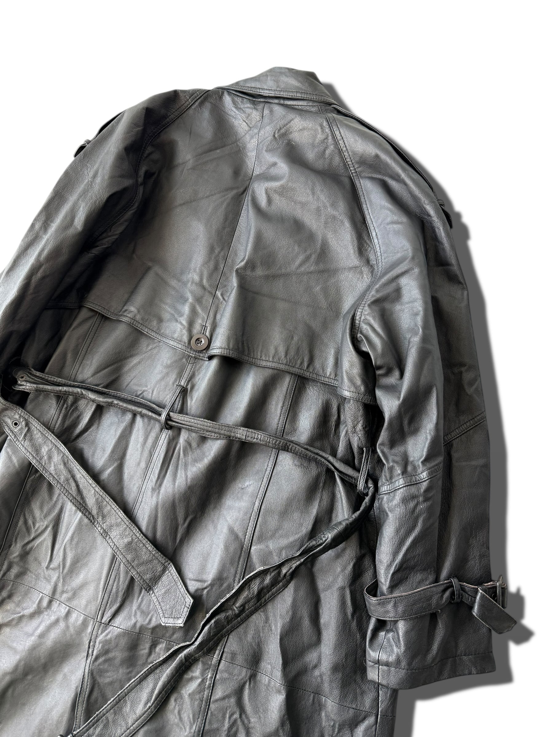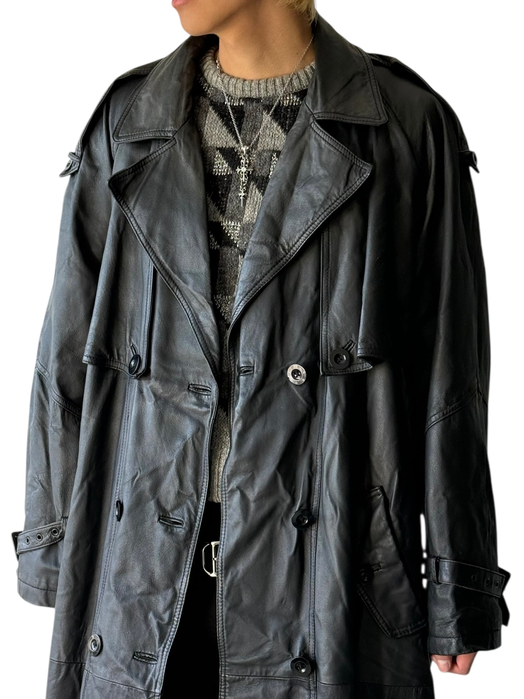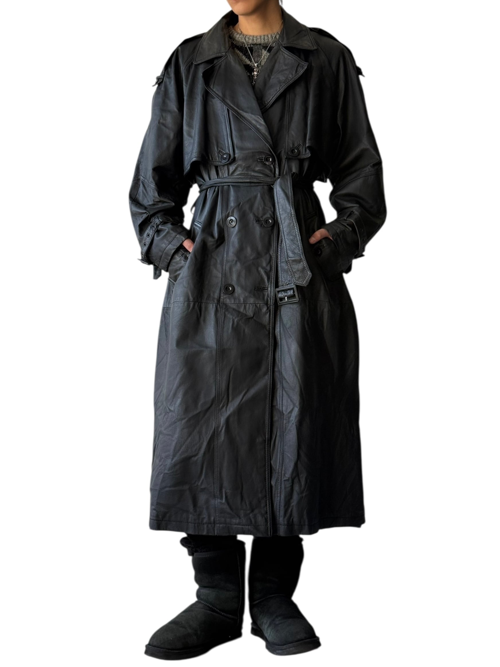 【COMINT】 Double Breasted Leather Trench Long Coat