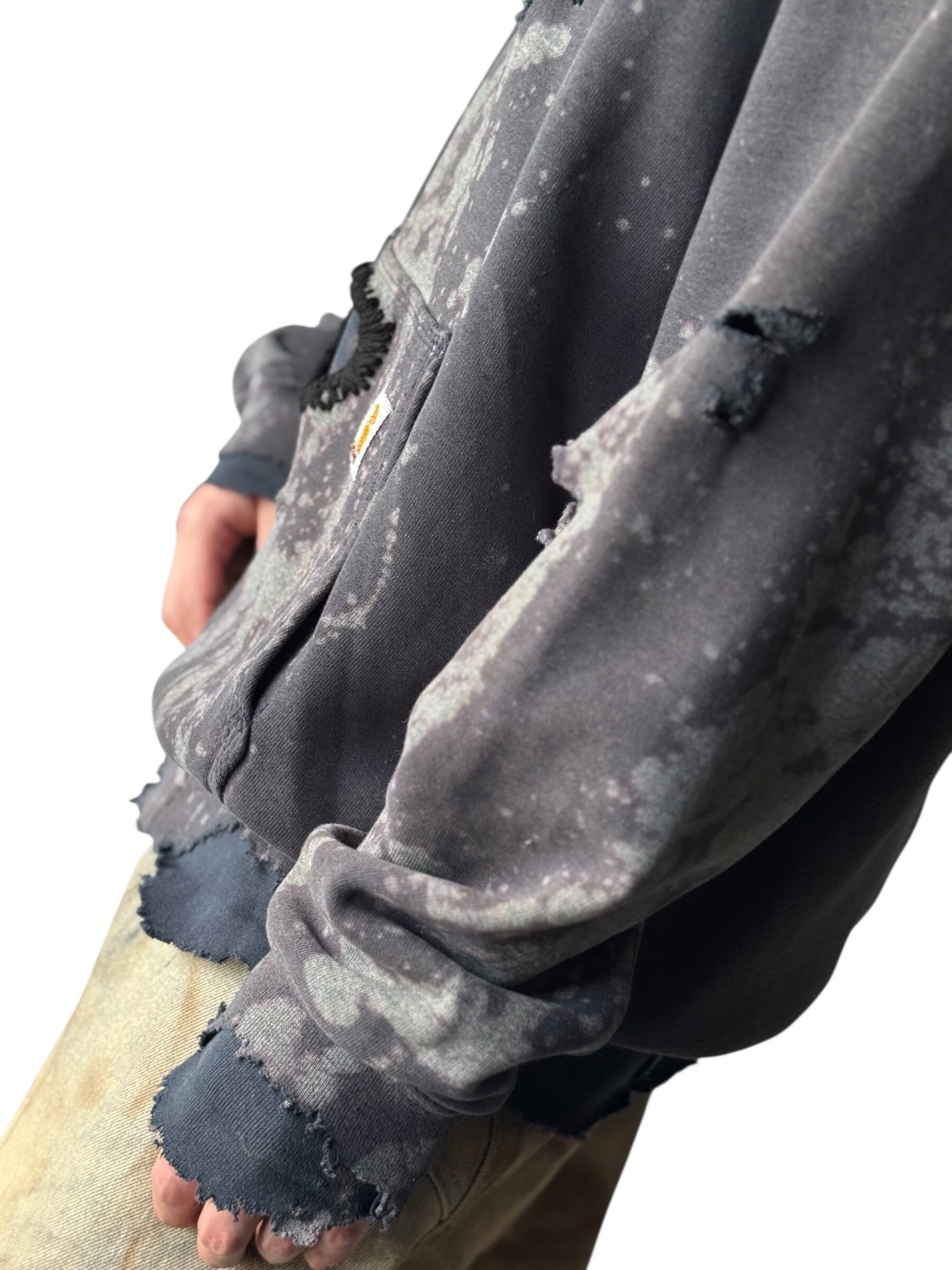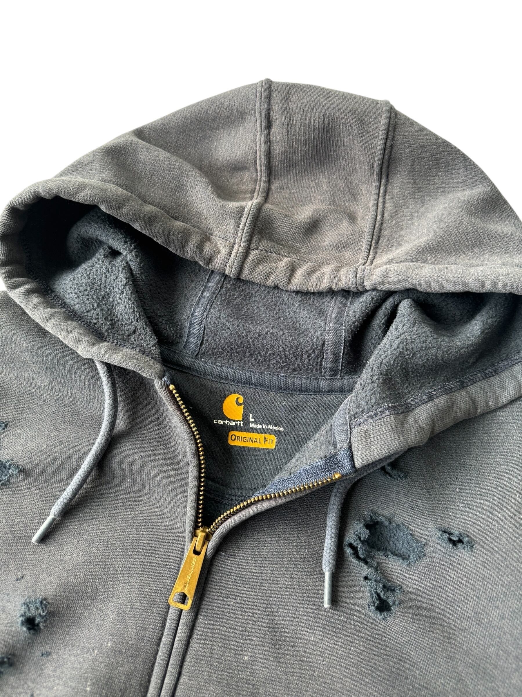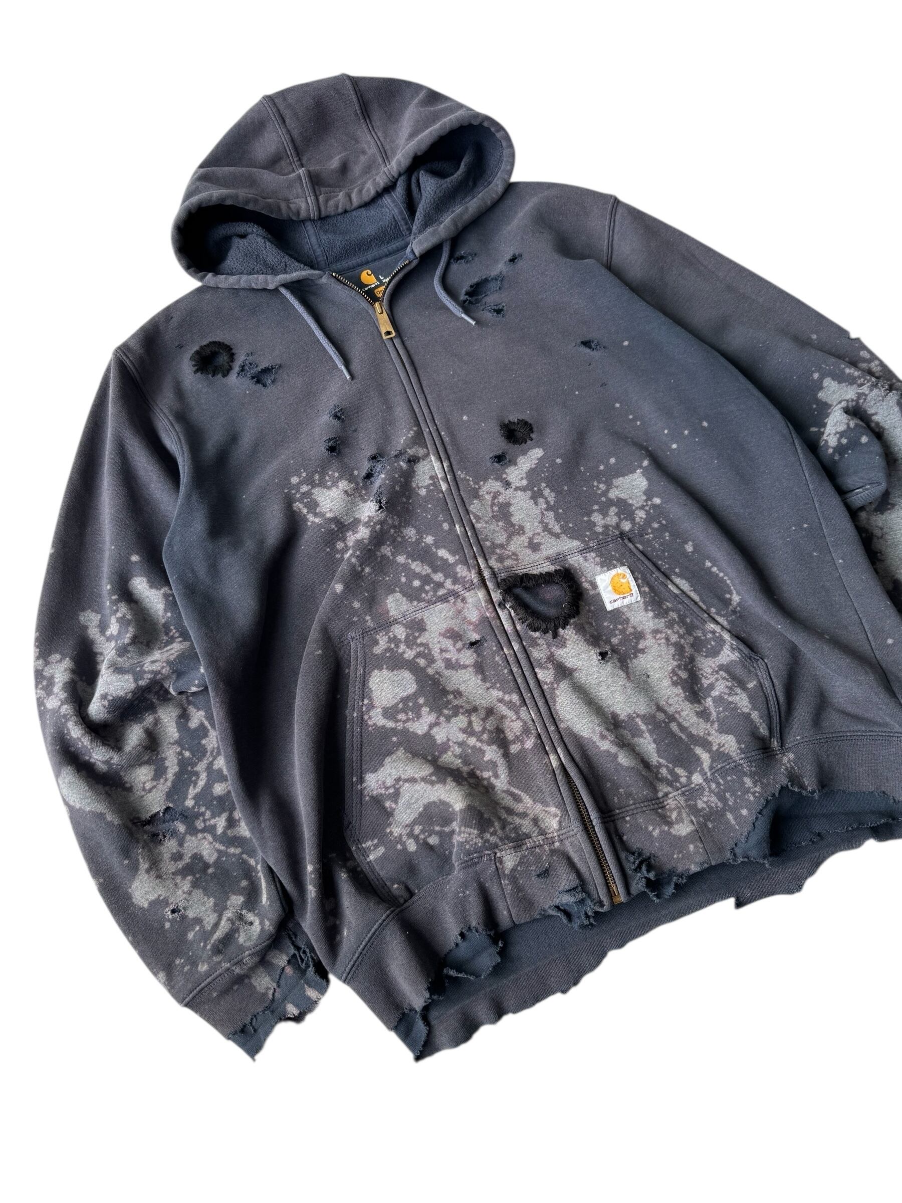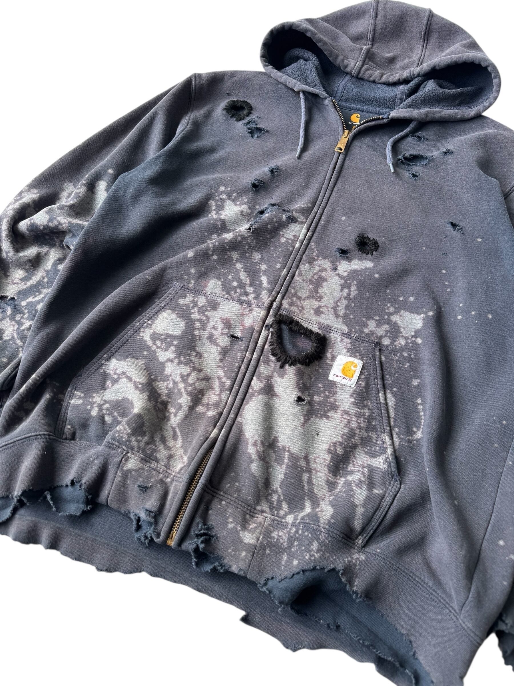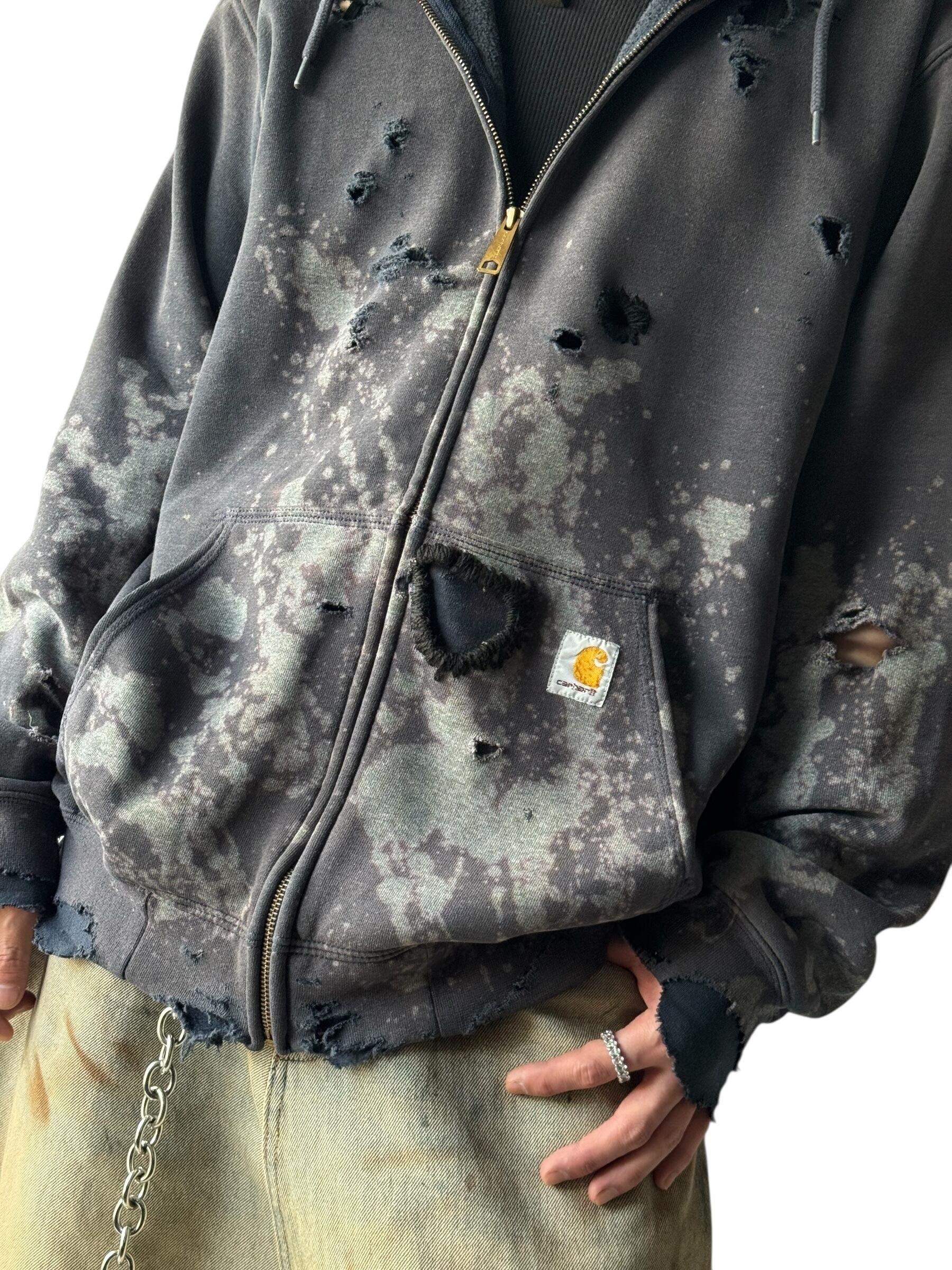♾Carhartt♾ Bleach Destroyed Knit Stitch Zip Hoodie size L