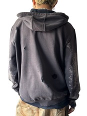 Bleach Destroyed Knit Stitch Zip Hoodie