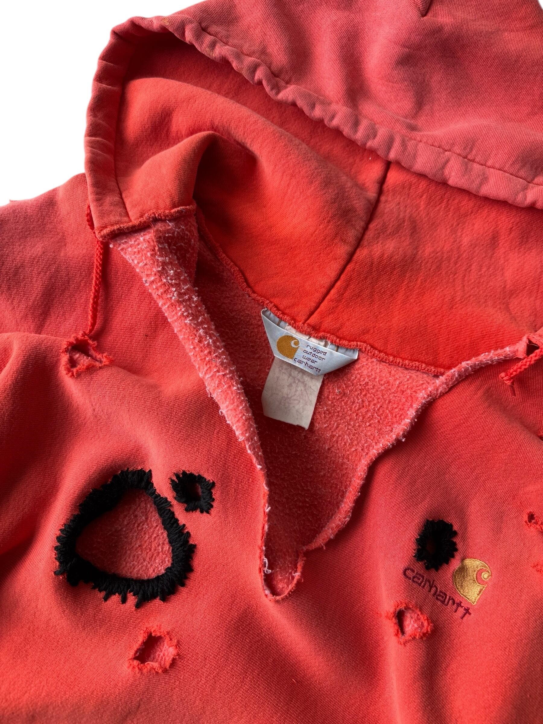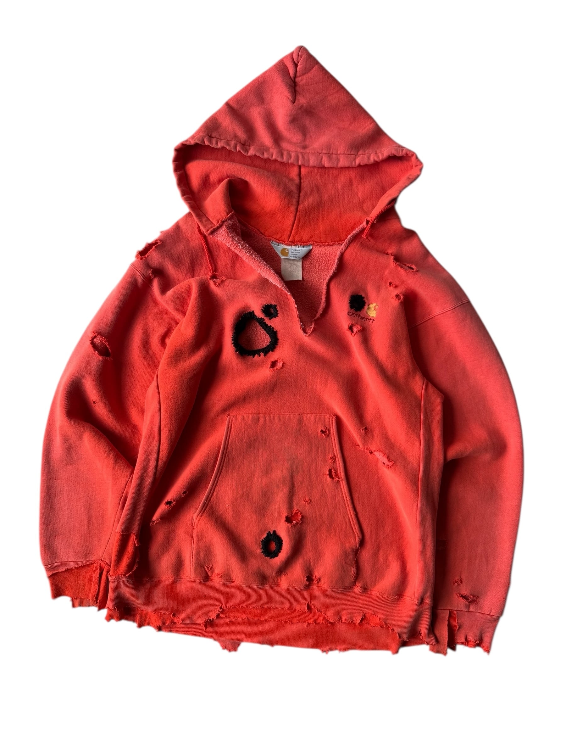 ♾80's Carhartt♾ made in u.s.a Cut-off Destroyed Knit Embroidered Pullover Hoodie
