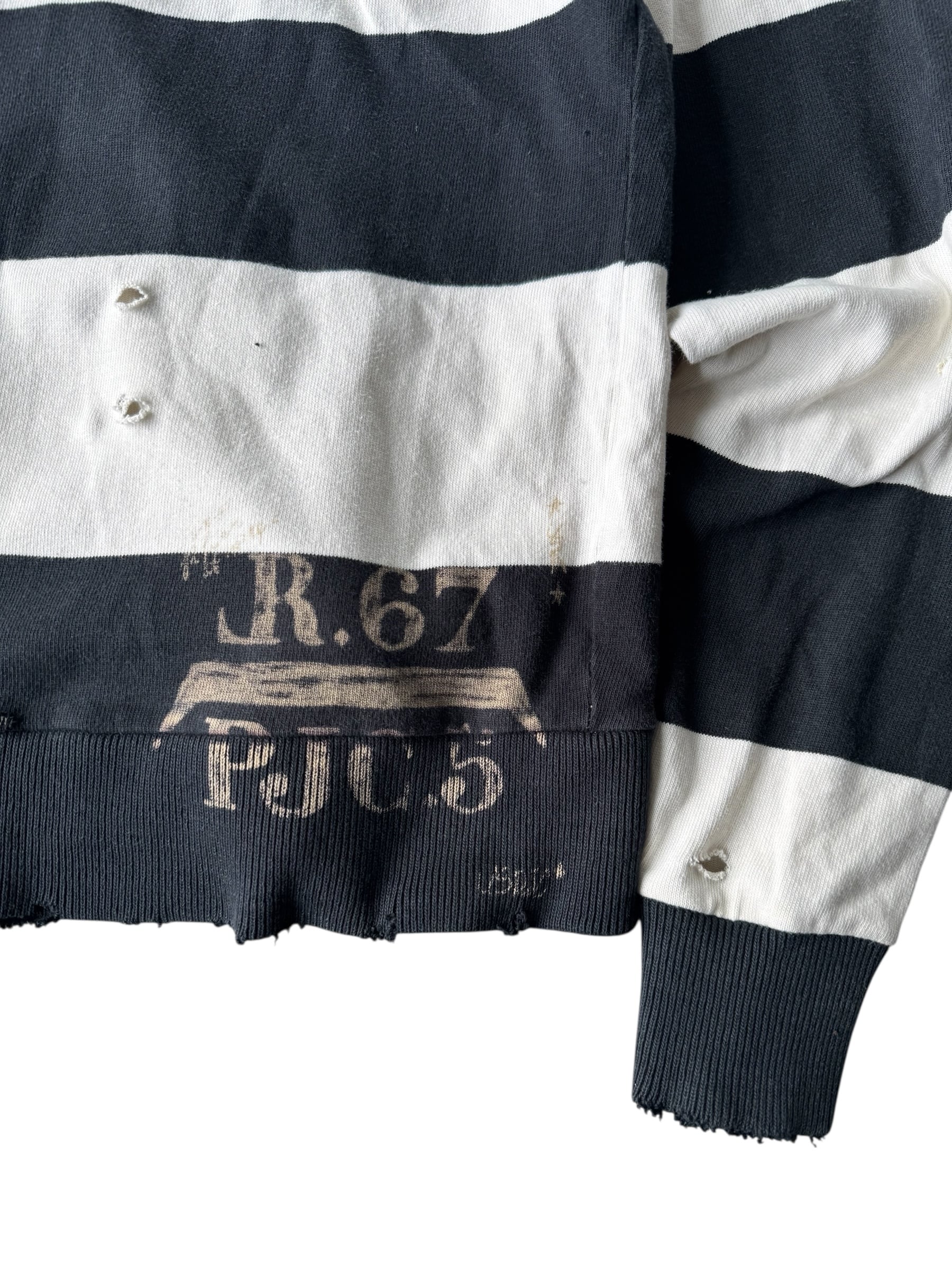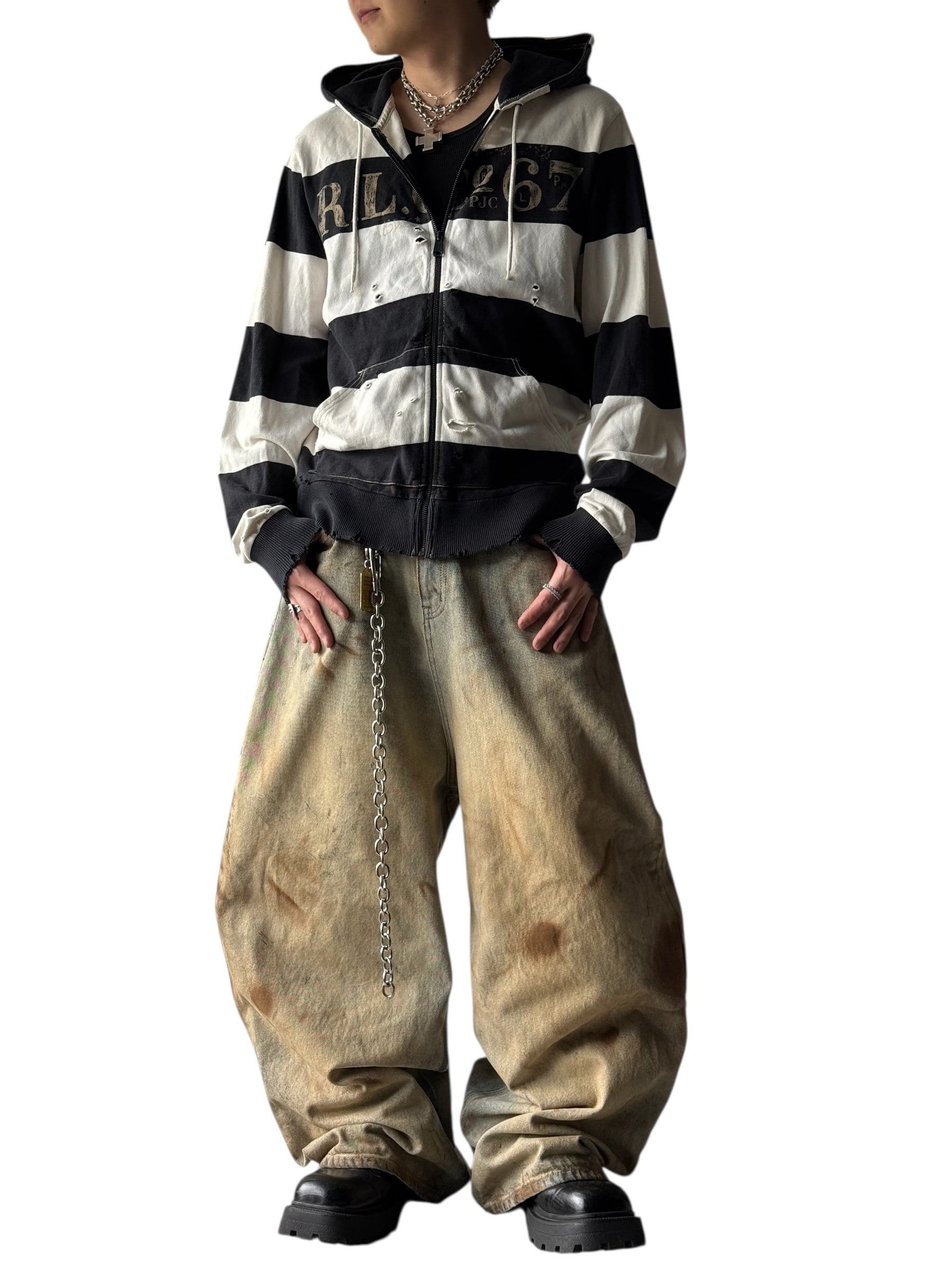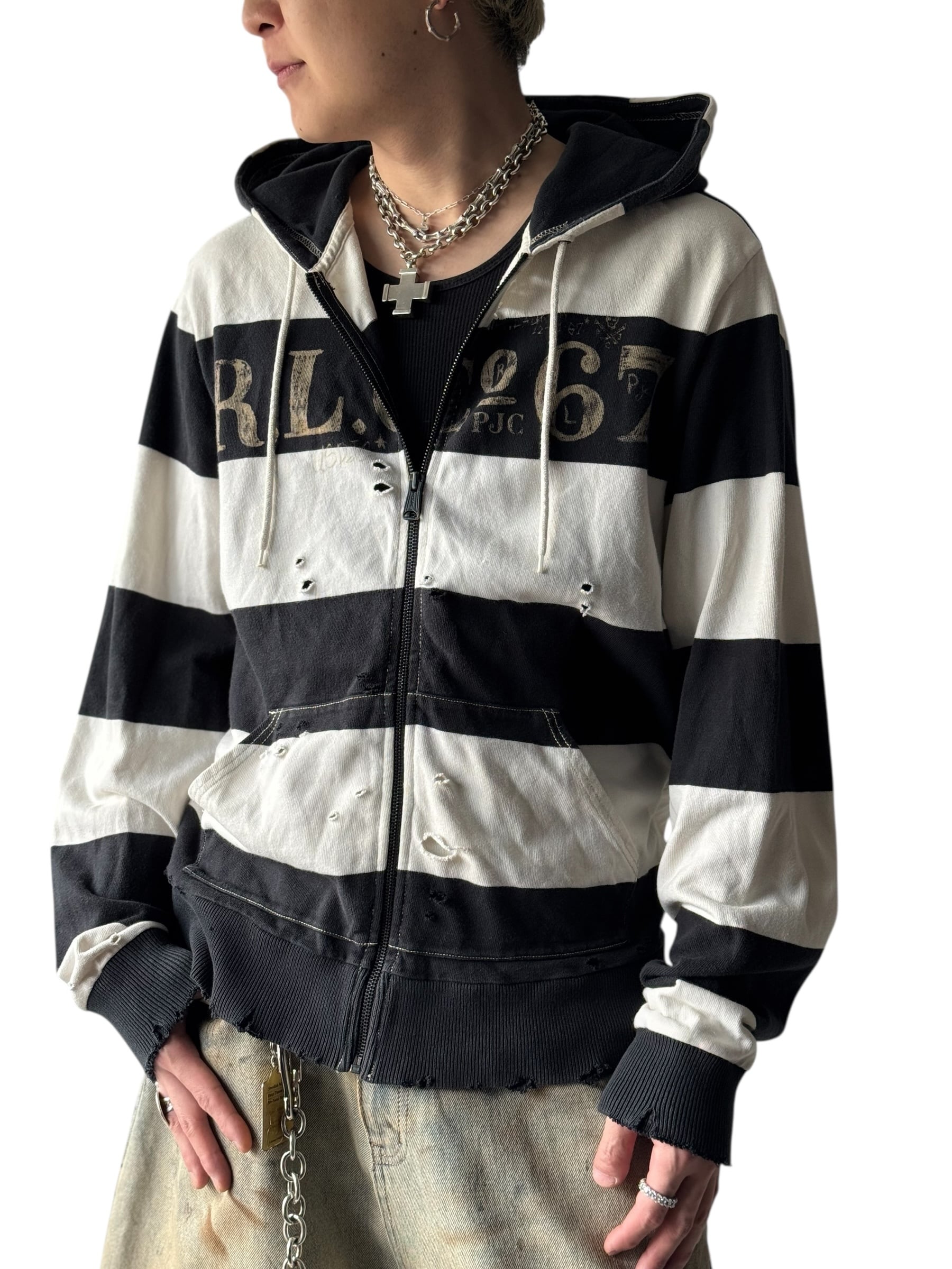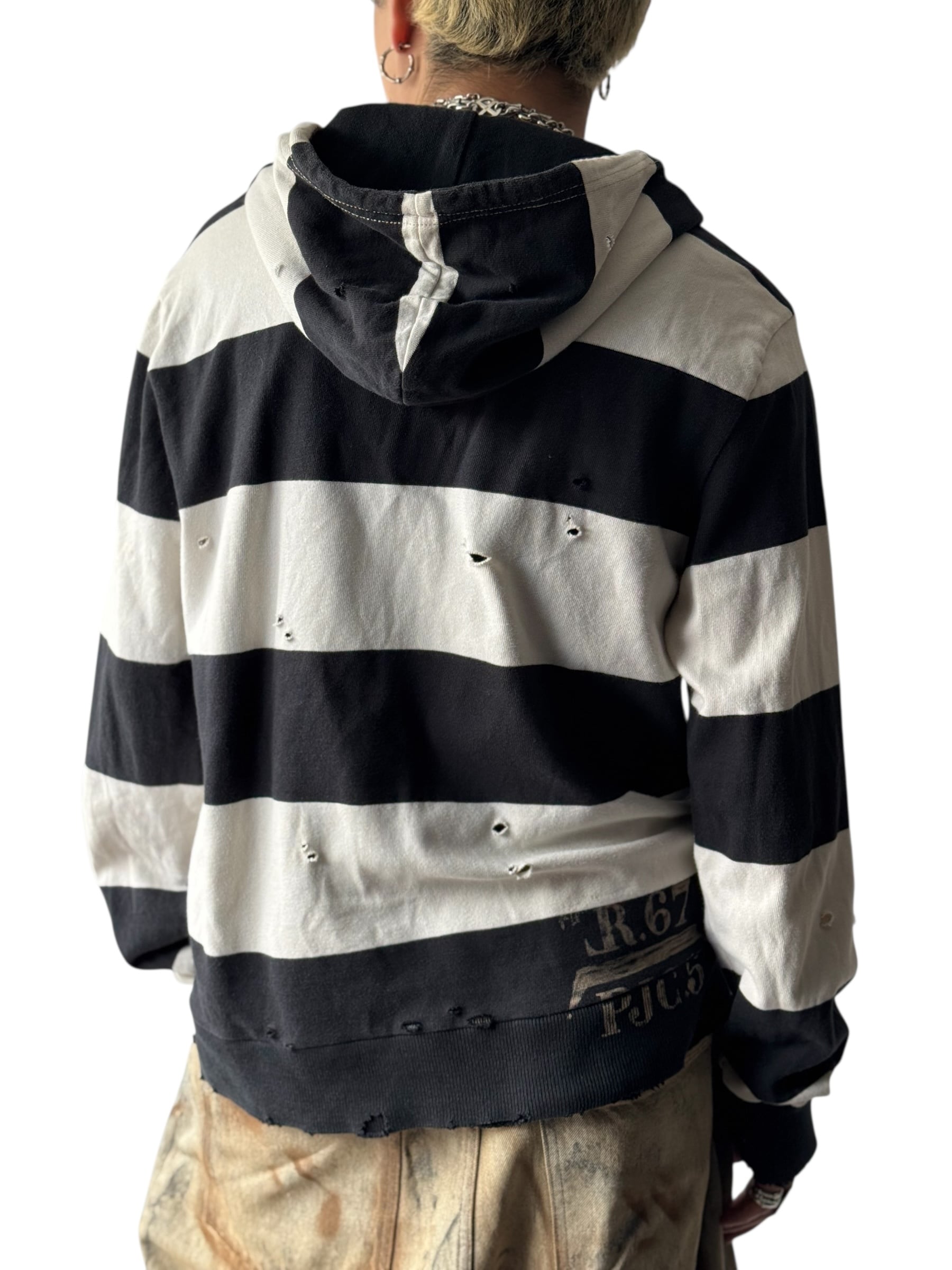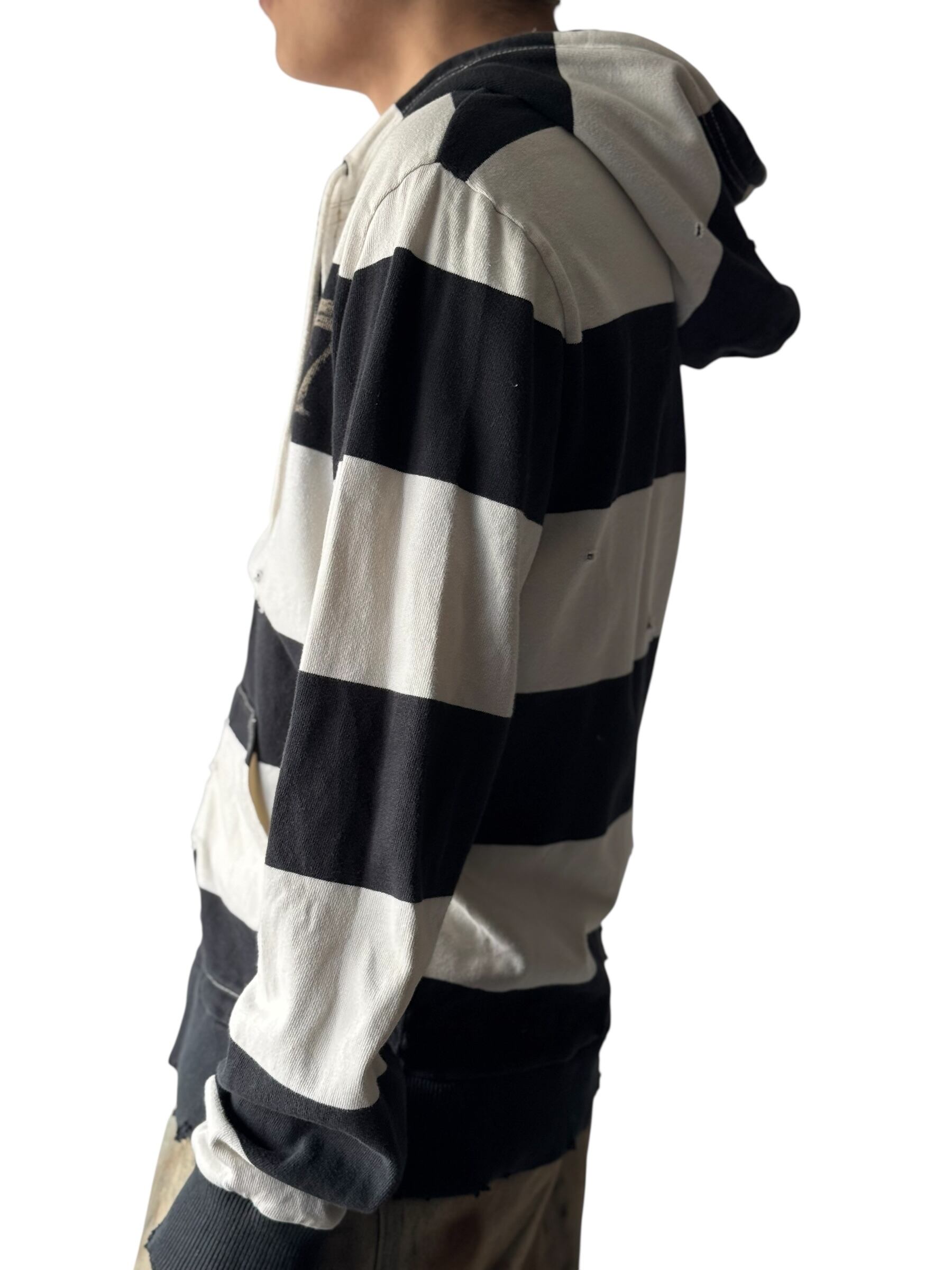 可愛らしい太めのボーダーにダメージ加工が加えられたキュートでクールなデザインのジップフーディーの入荷‼️‼️