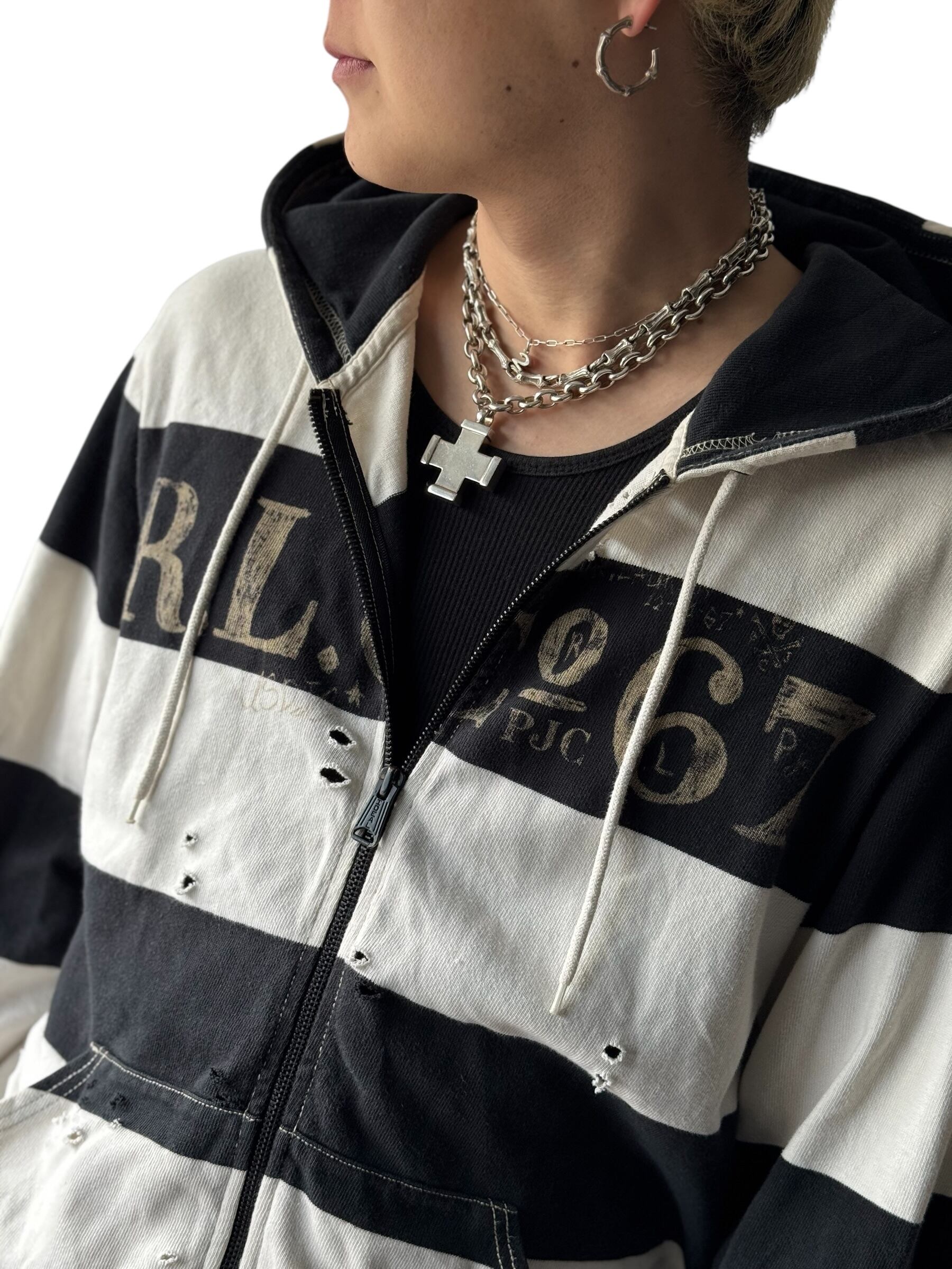 Destroyed border zip hoodie
