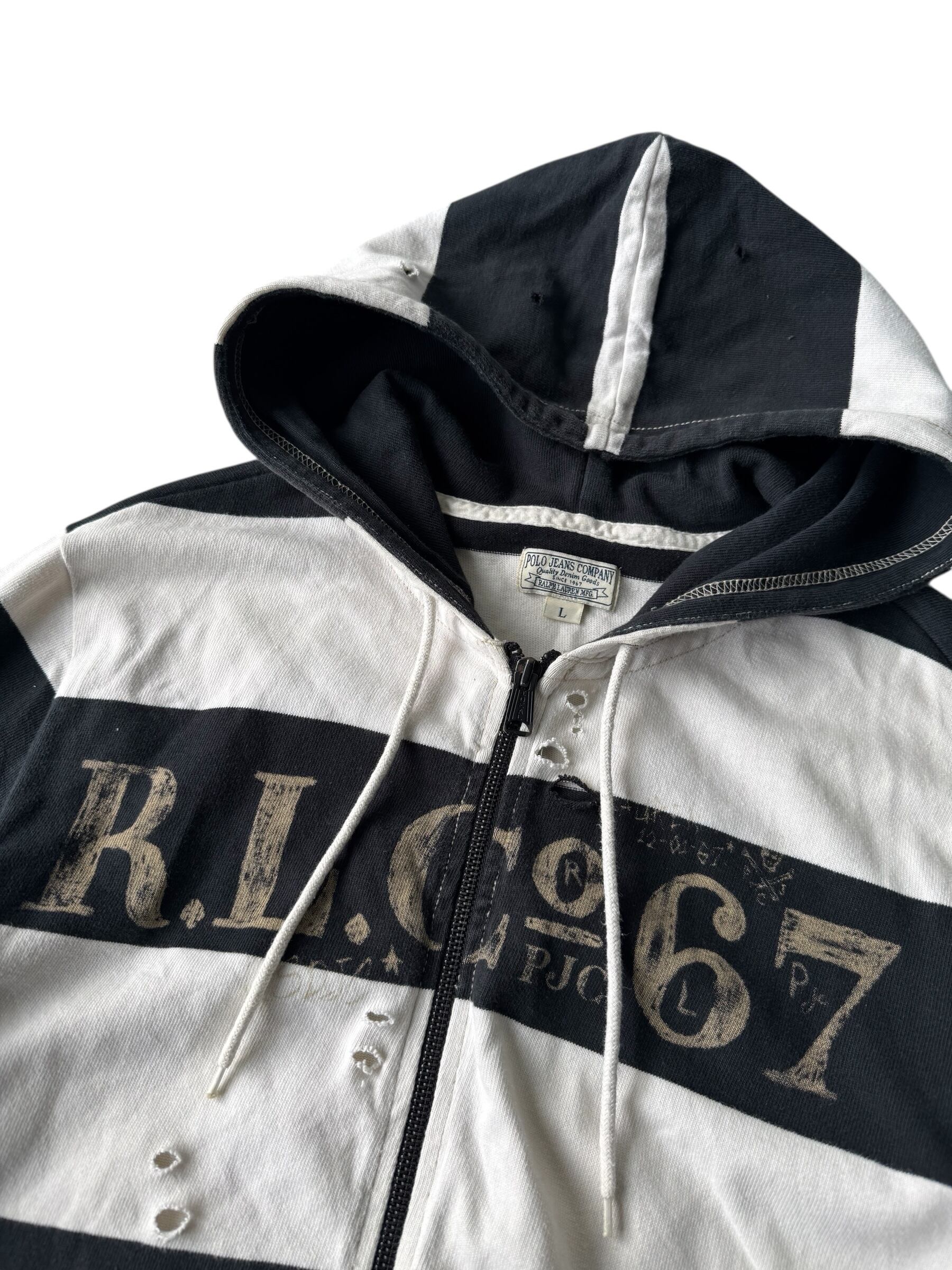 ♾POLO JEANS COMPANY♾ Destroyed border zip hoodie size L