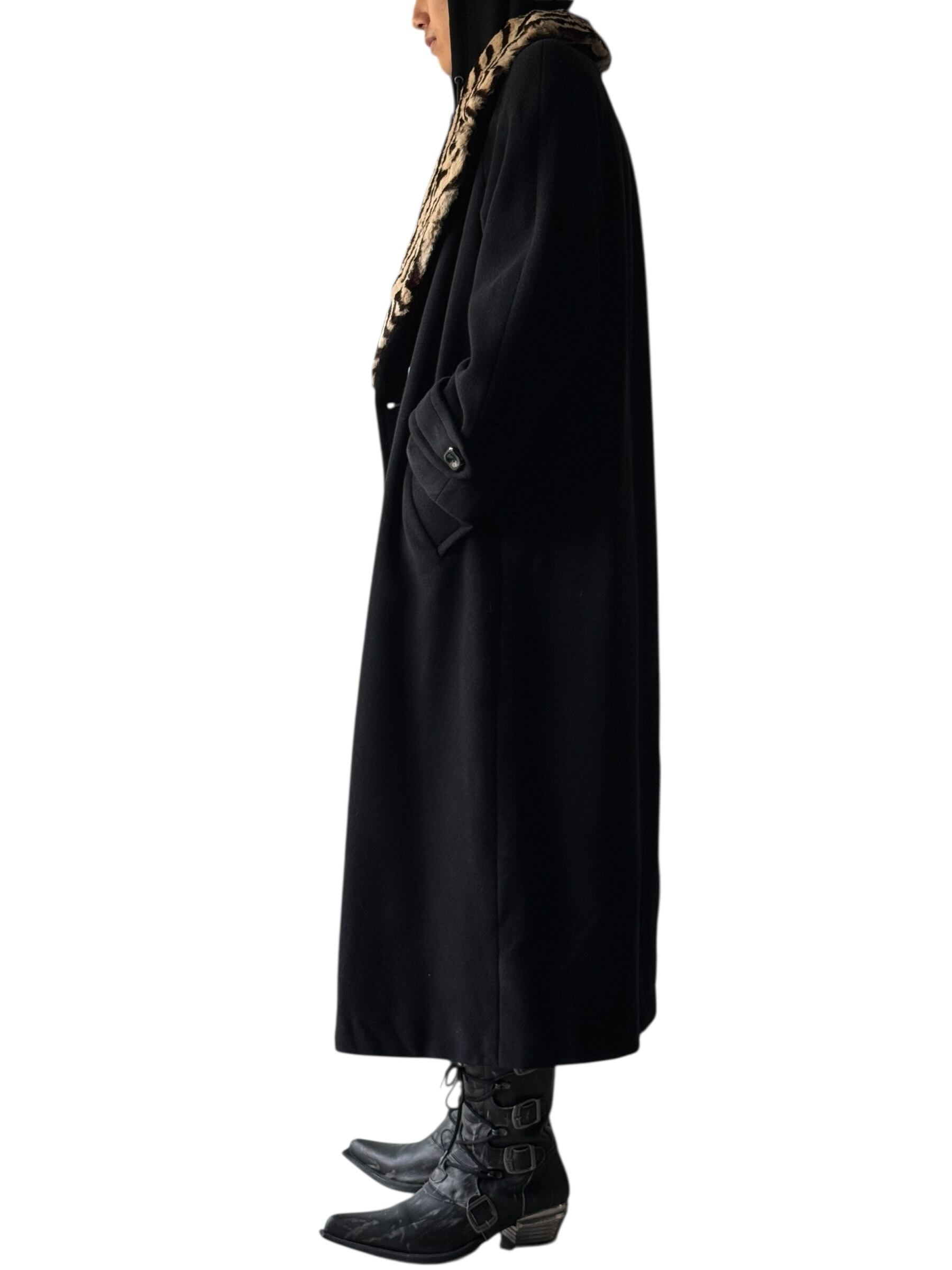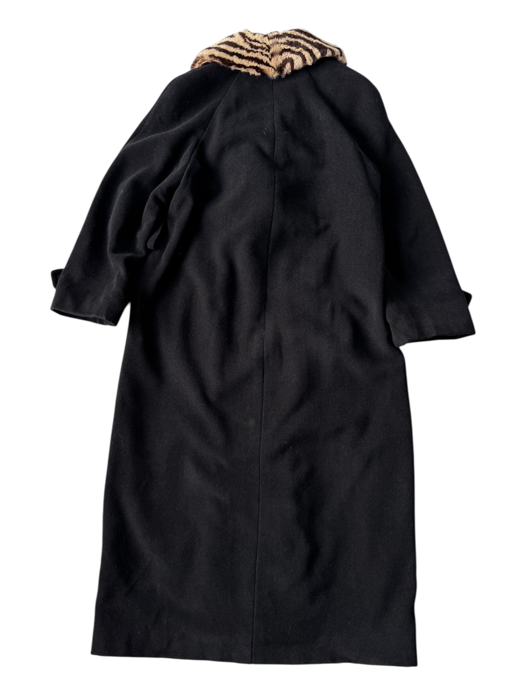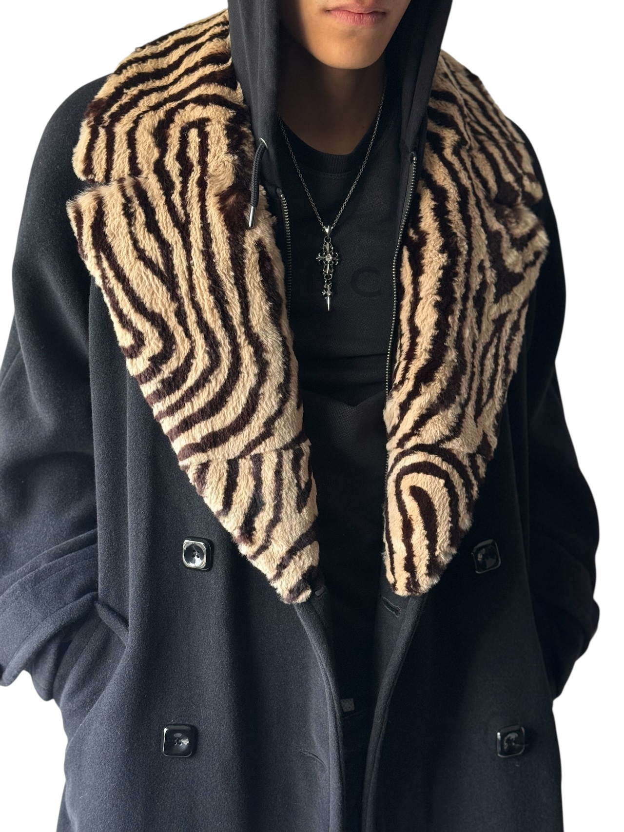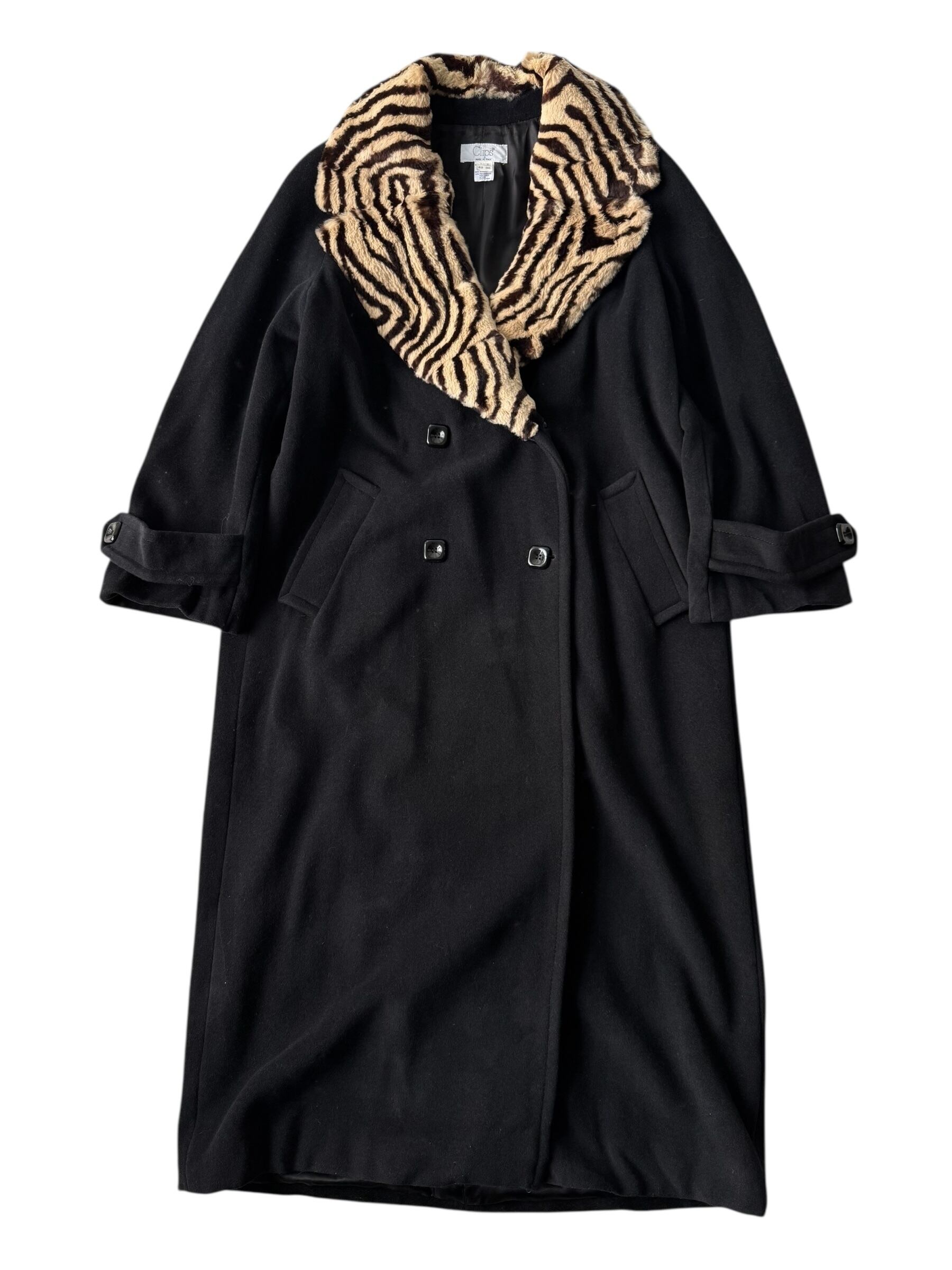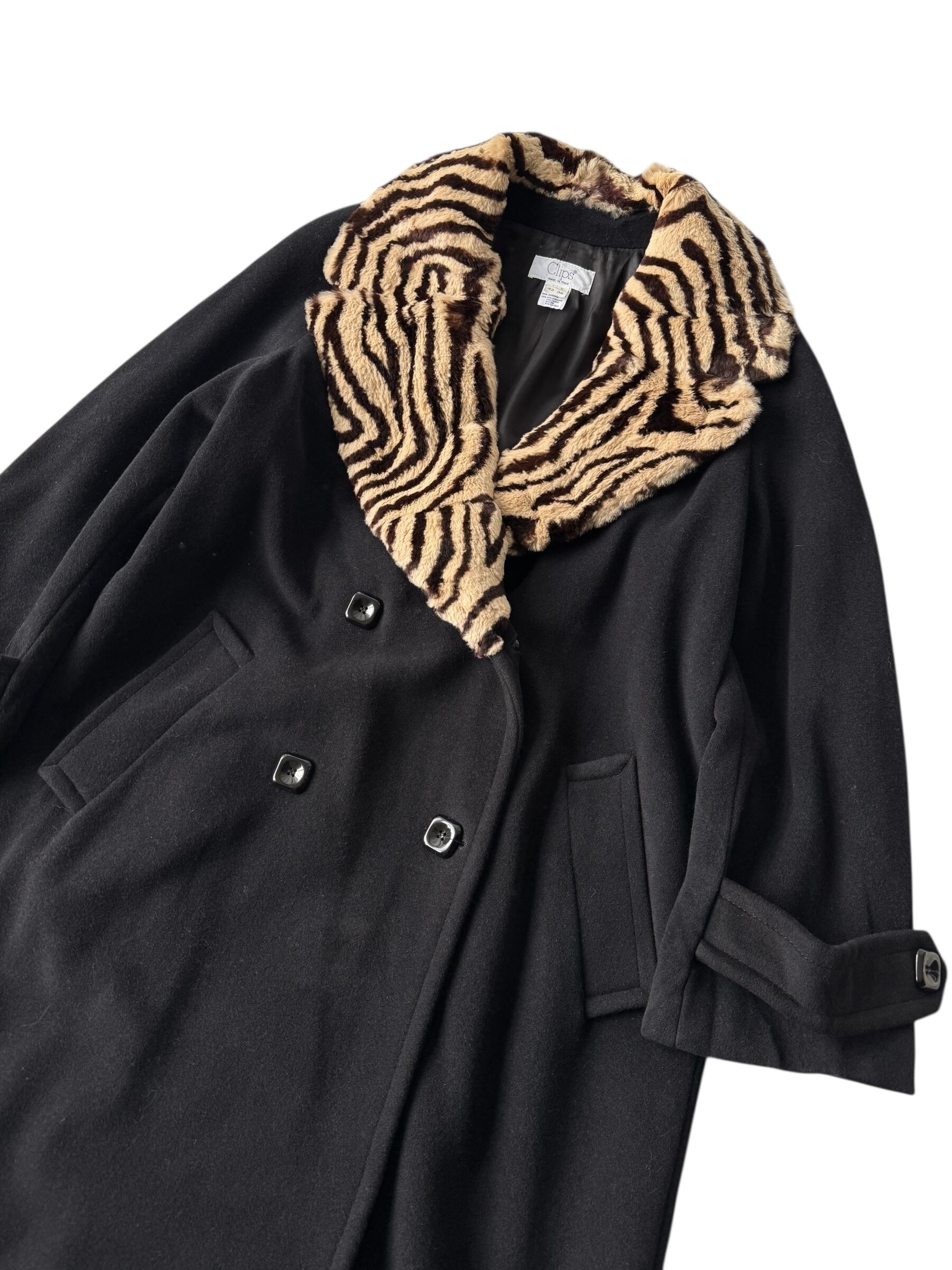 ♾Clips♾ Tiger print real fur collar long coat size 42 MADE IN ITALY