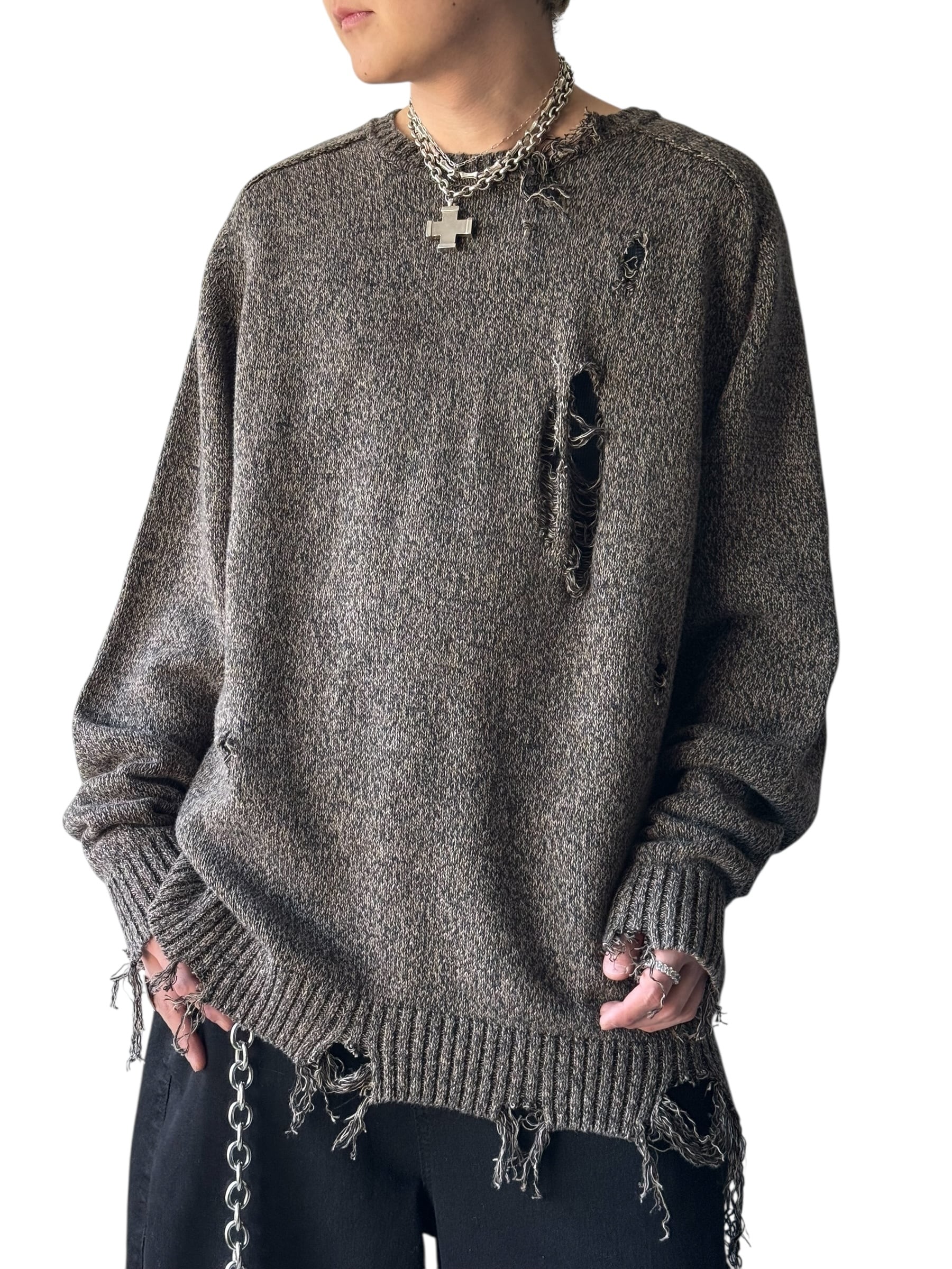 ダメージ加工がかなりされており、1枚だけでもバチバチにかっこよく決まるニット✨️✨️