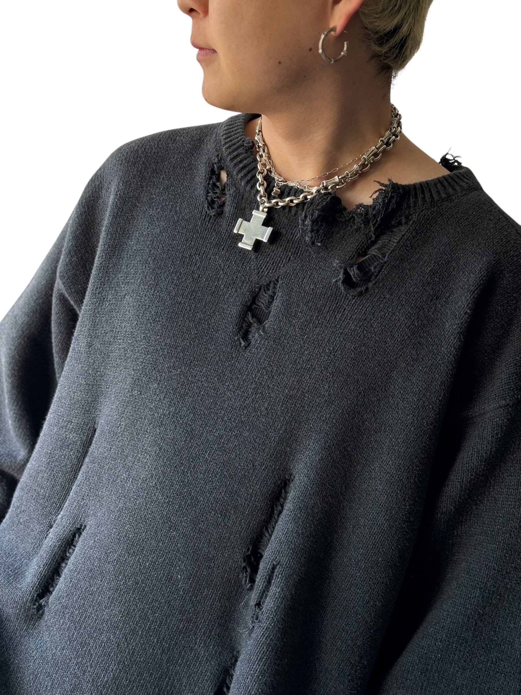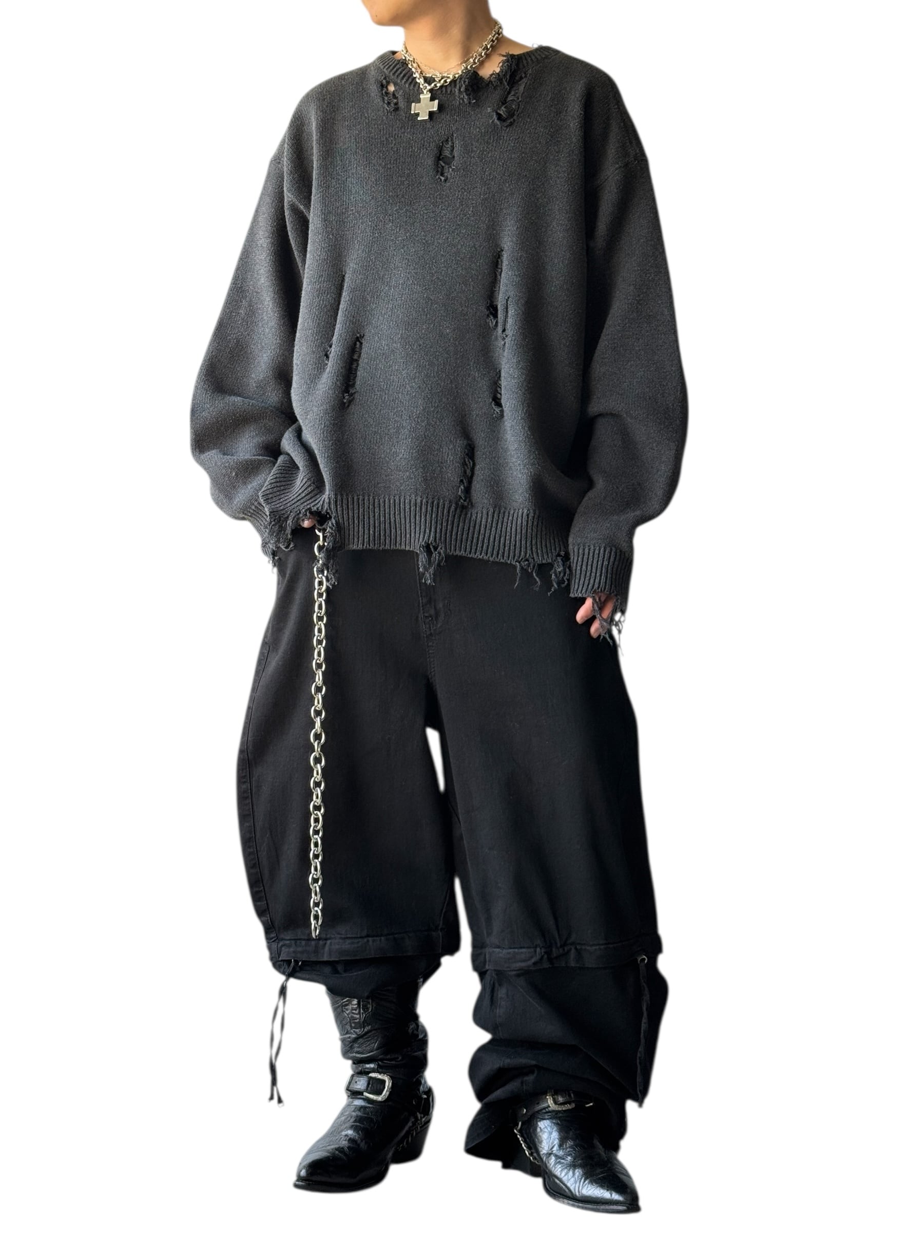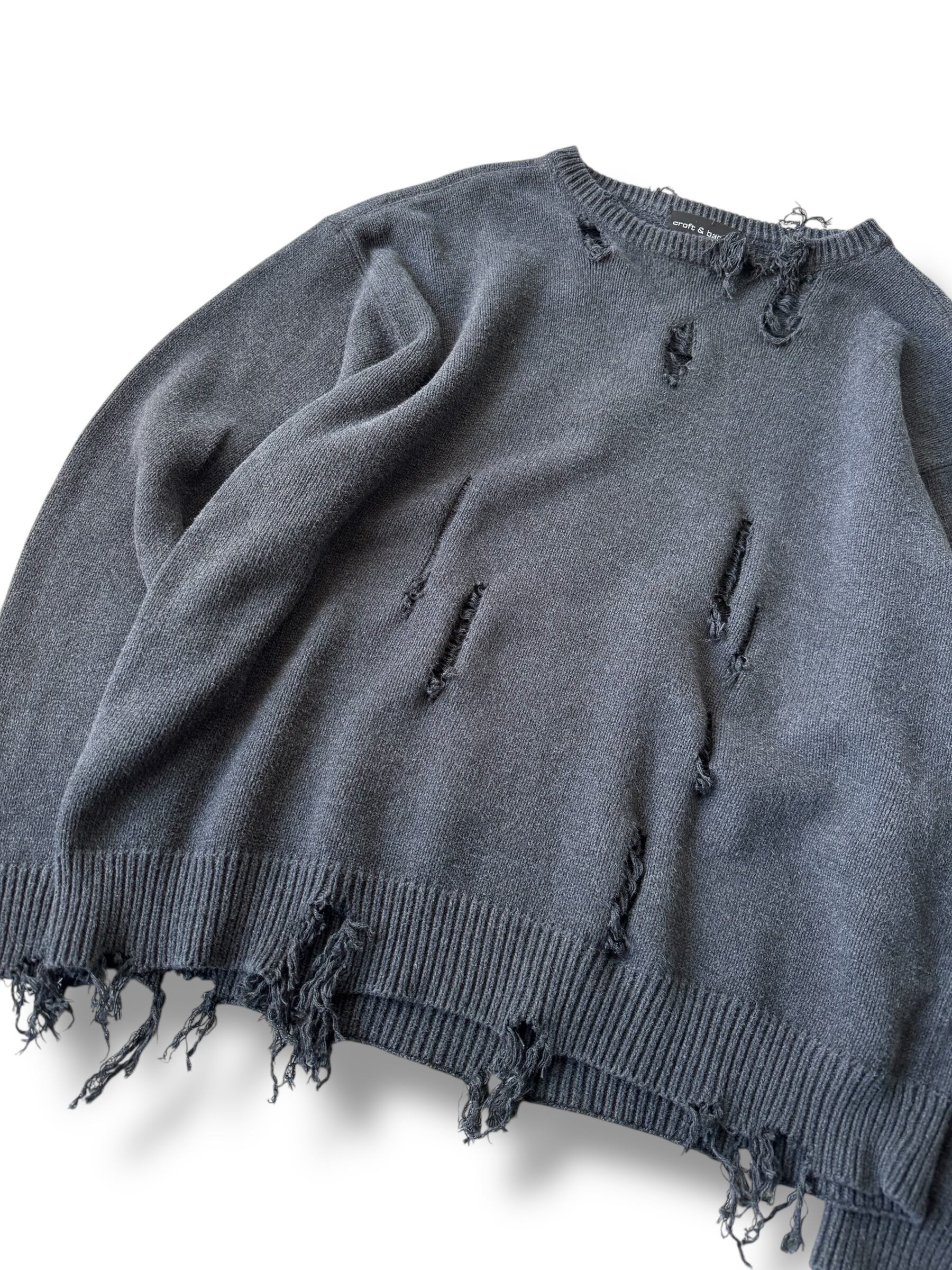 ダメージ加工がかなりされており、1枚だけでもバチバチにかっこよく決まるニット✨️✨️