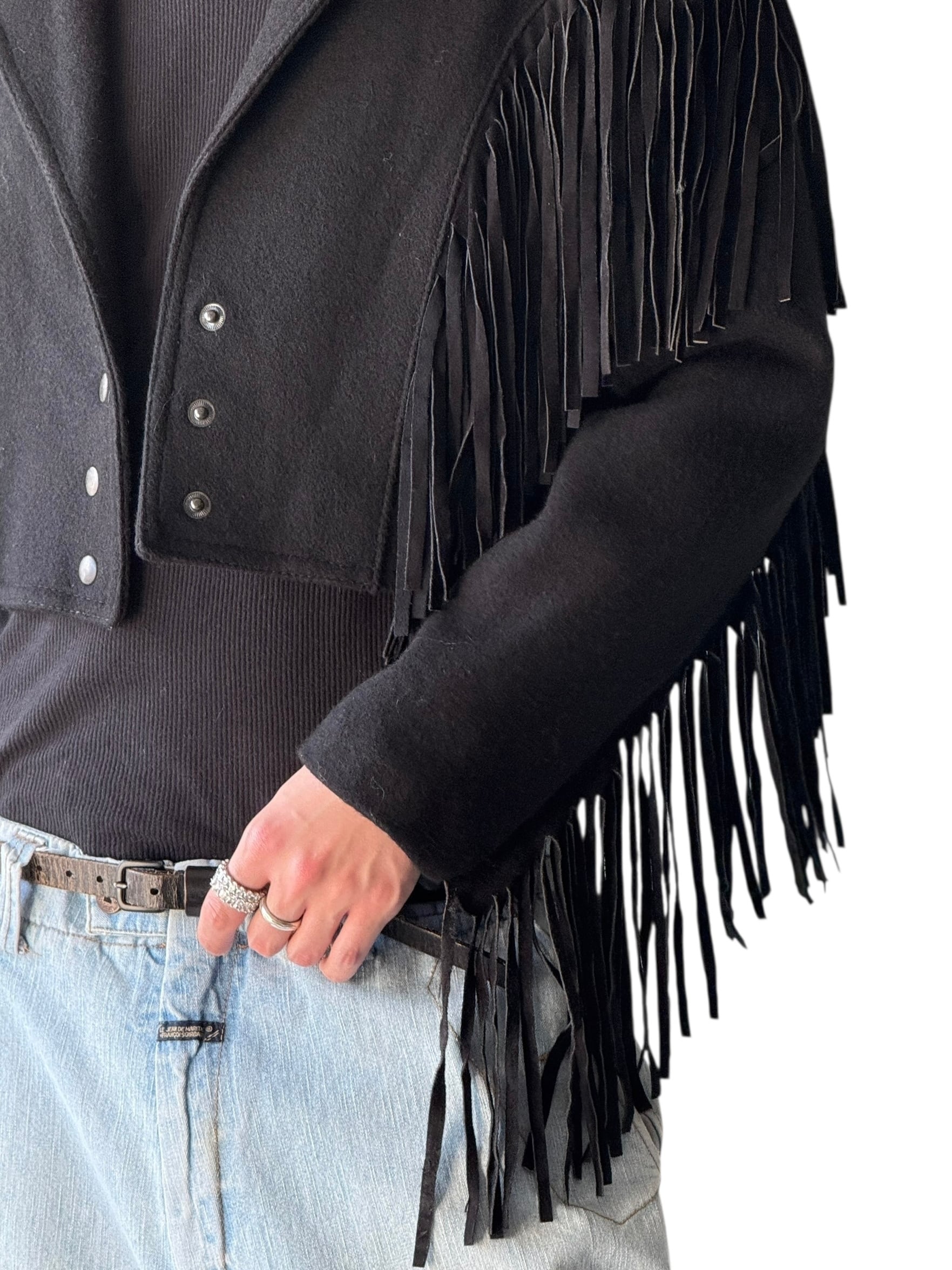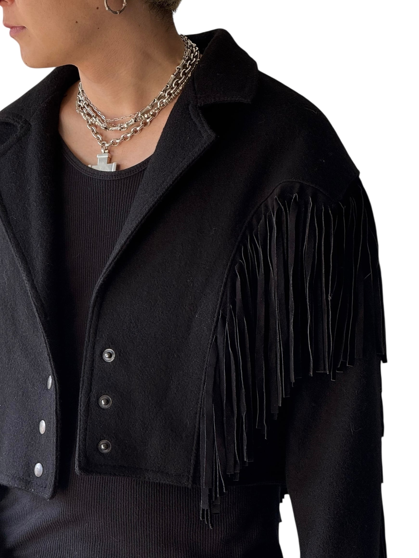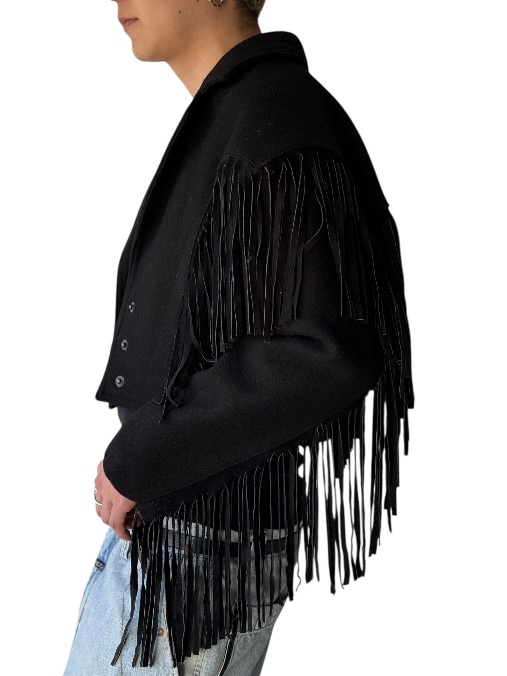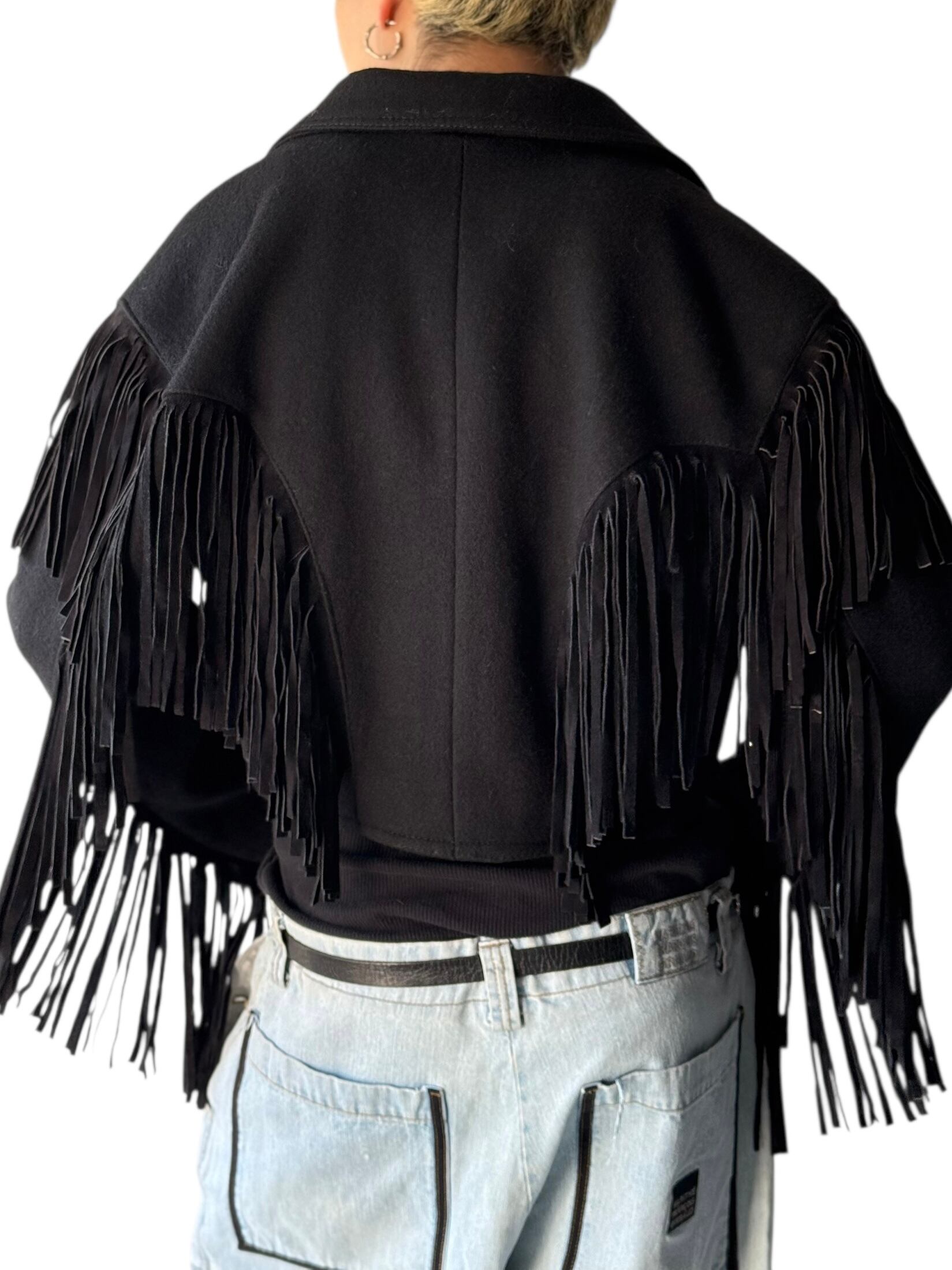 Leather fringe wool western short jacket