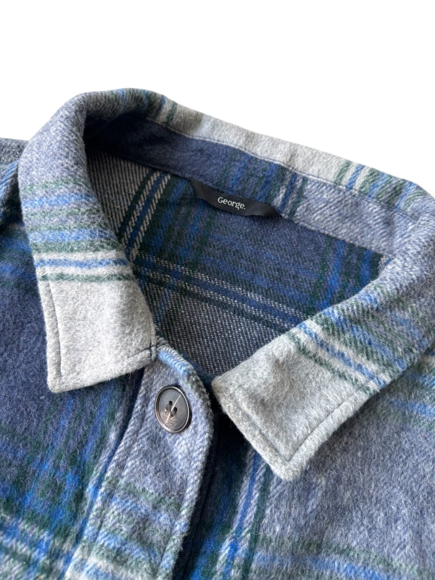 ♾George♾ wide big short length check patterned design L/S shirt size2XL