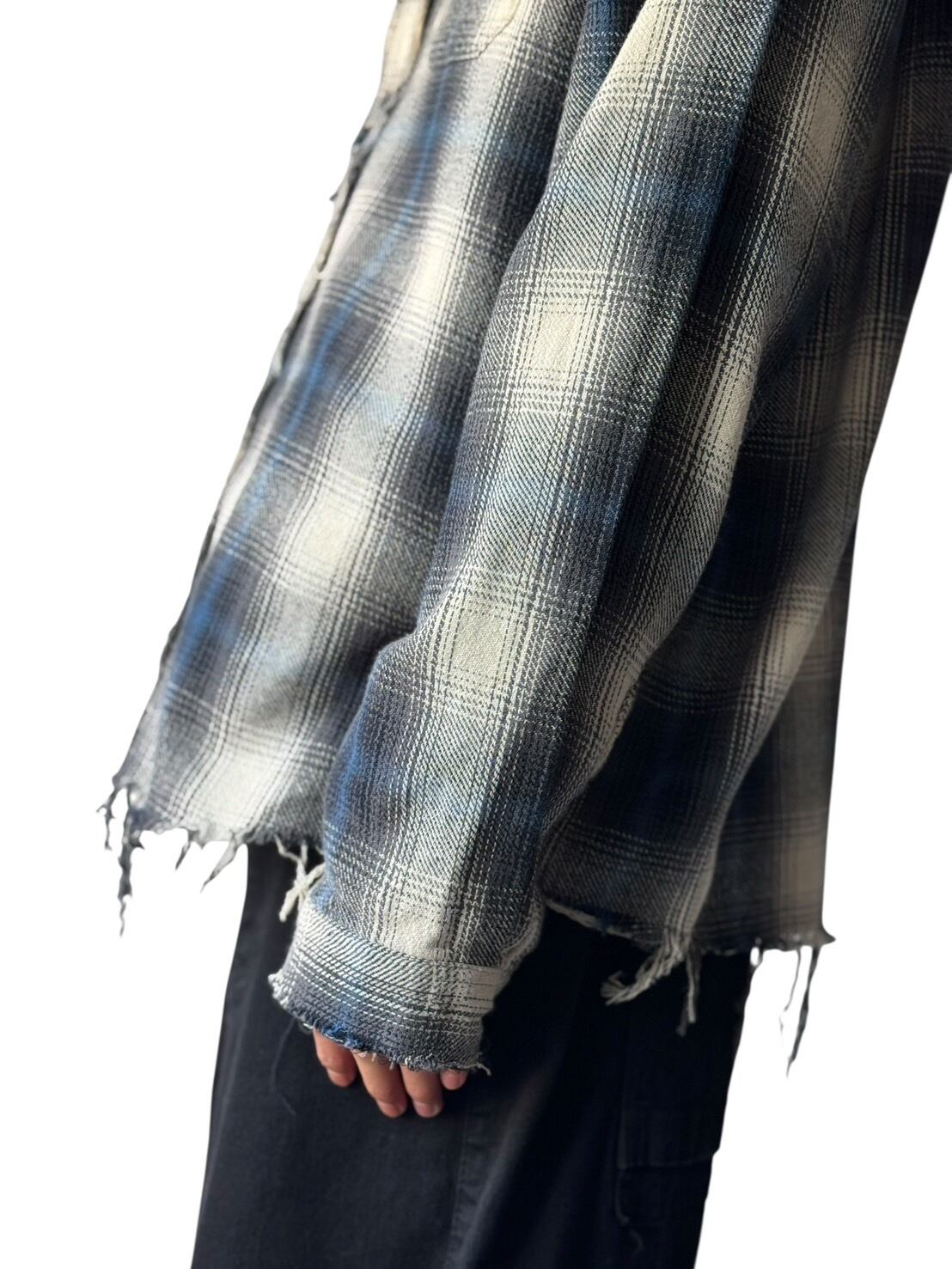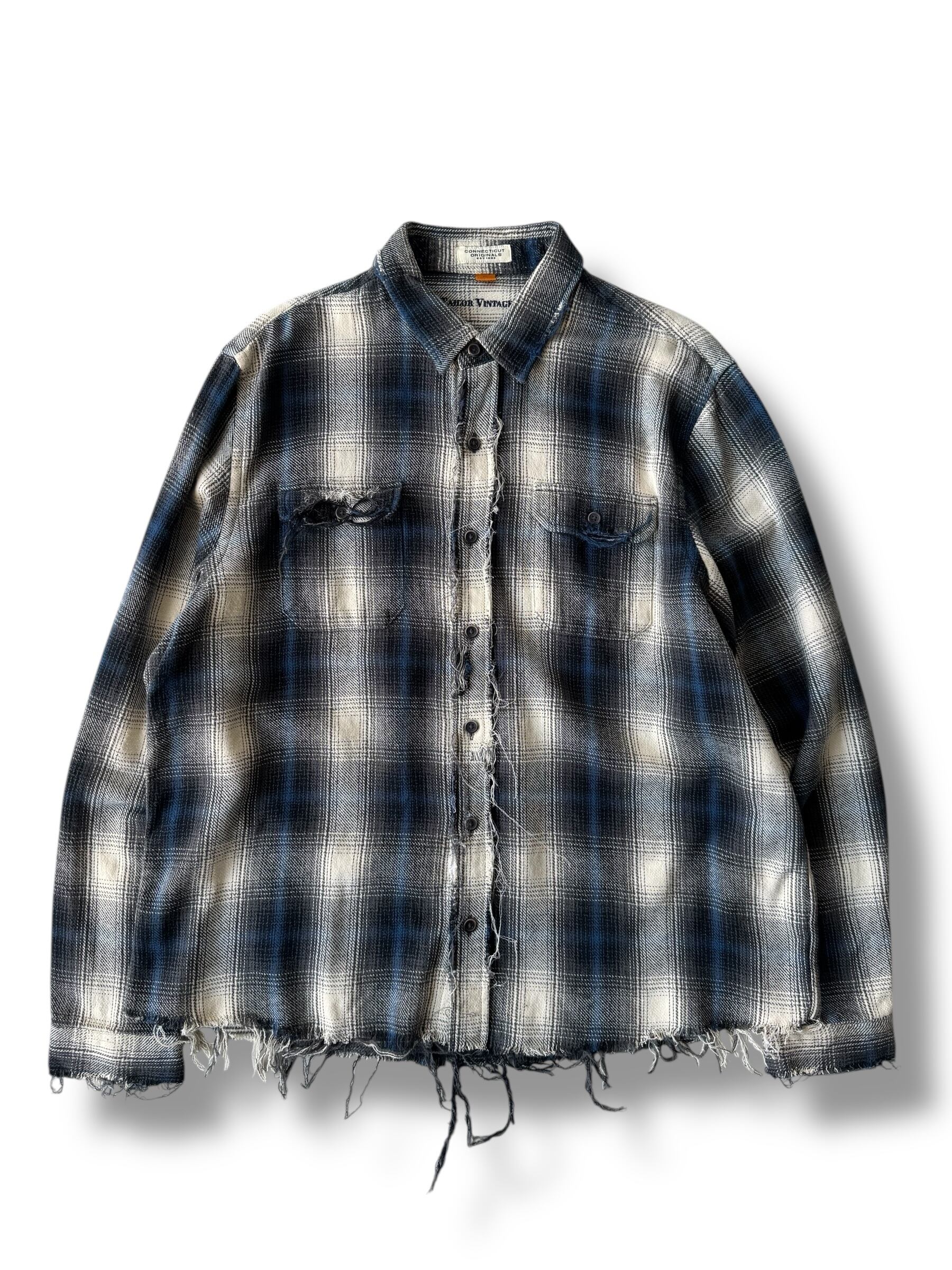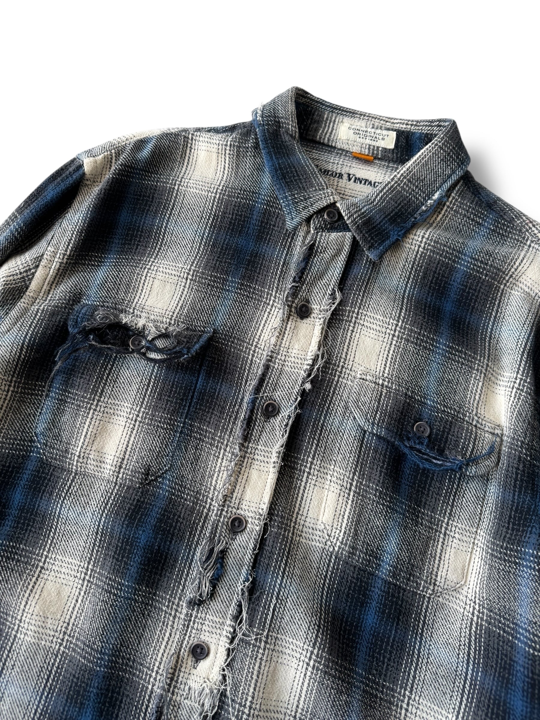 ♾TAILOR VINTAGE♾ design crushed heavy nel ombre check L/S shirt sizeXL