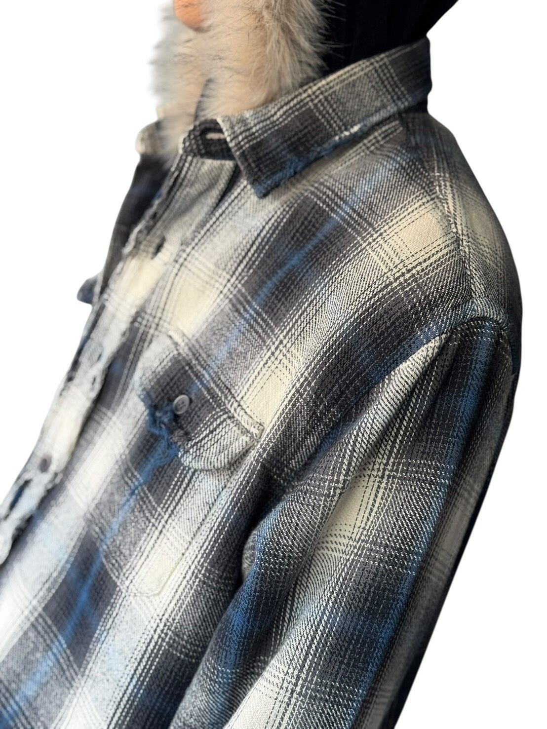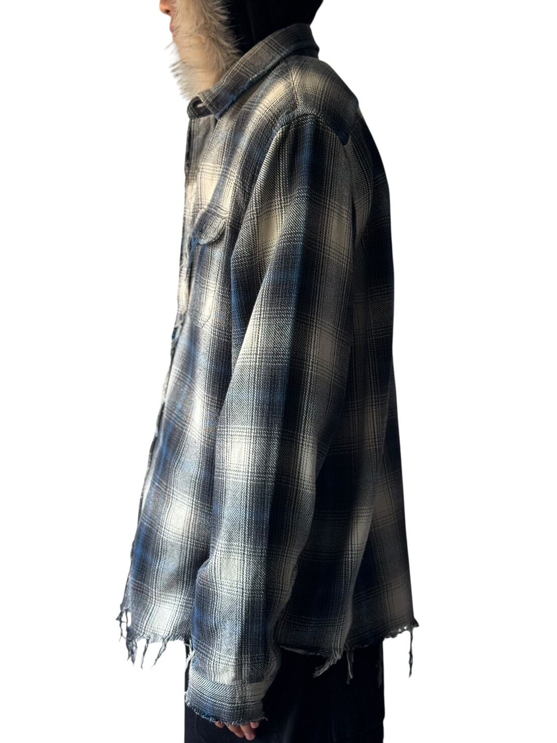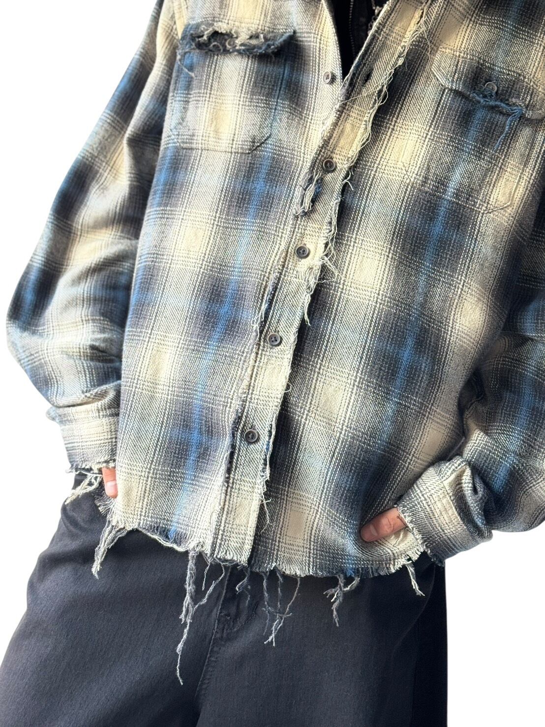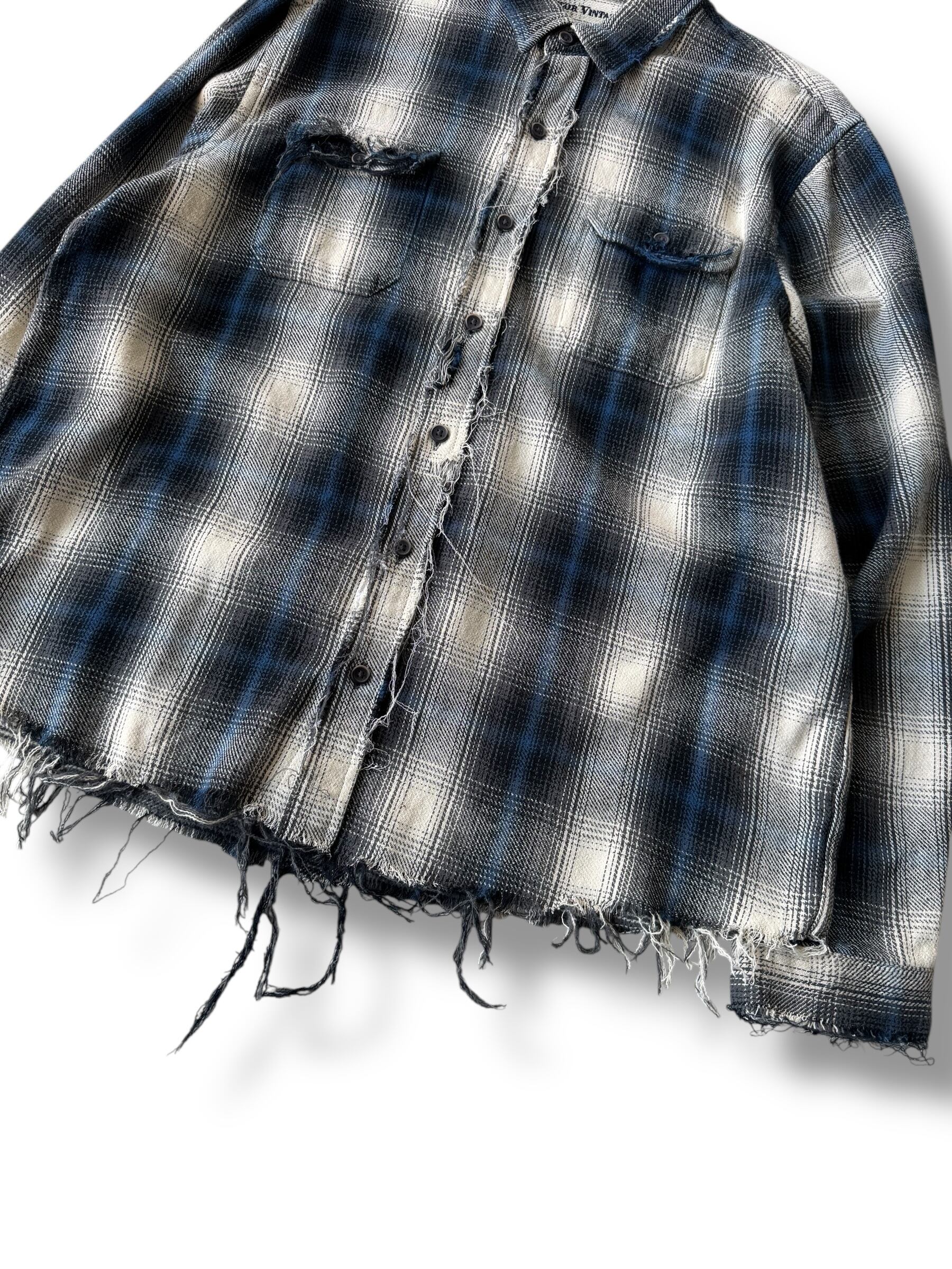 ♾TAILOR VINTAGE♾ design crushed heavy nel ombre check L/S shirt sizeXL