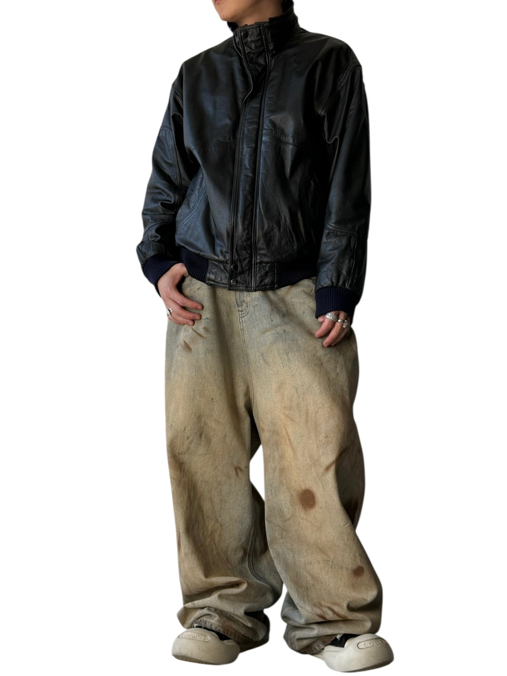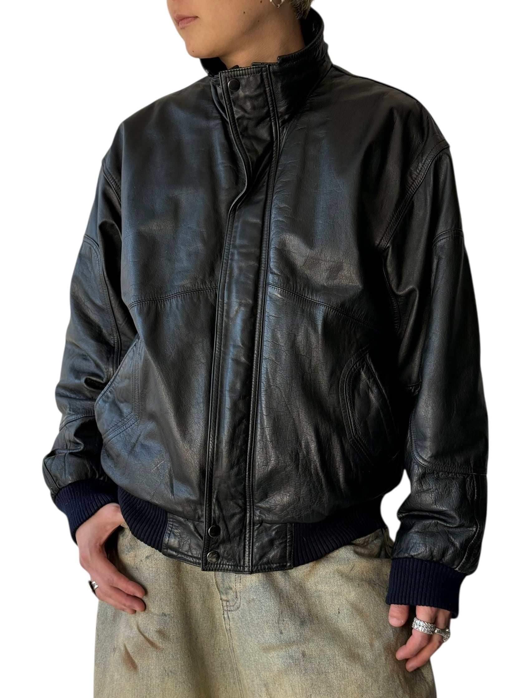 【ASH CREEK TRADING】 2-way front Stand Neck Leather Blouson