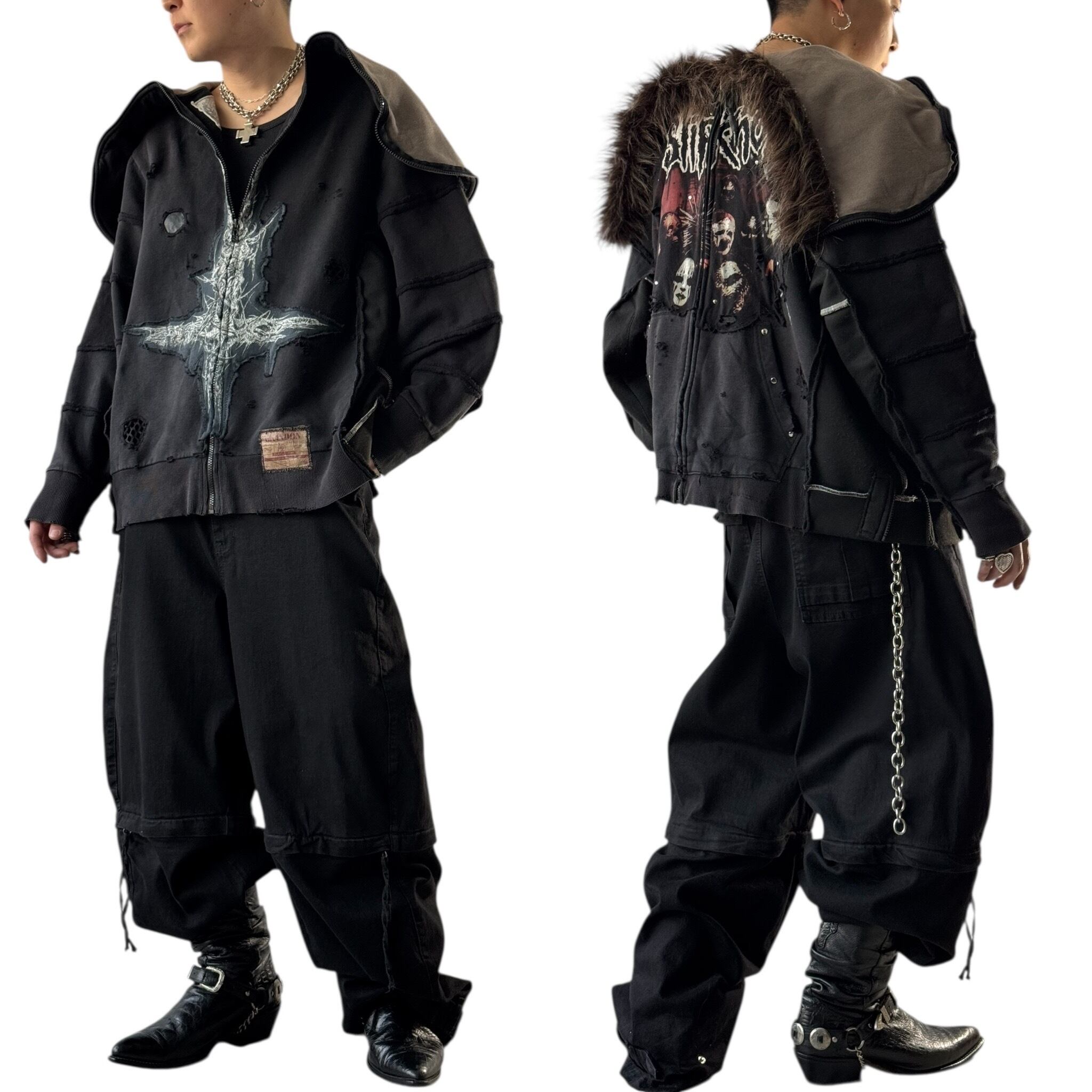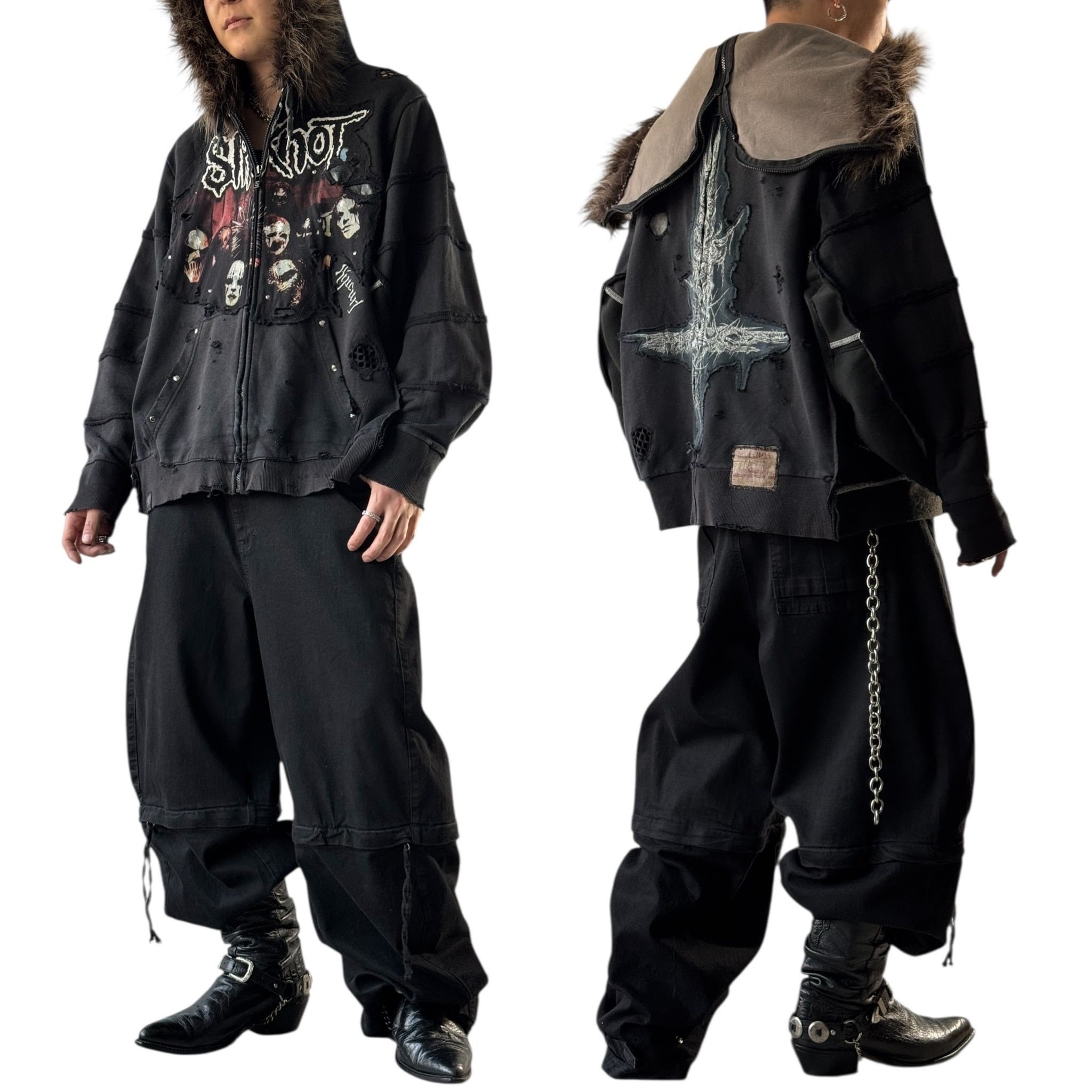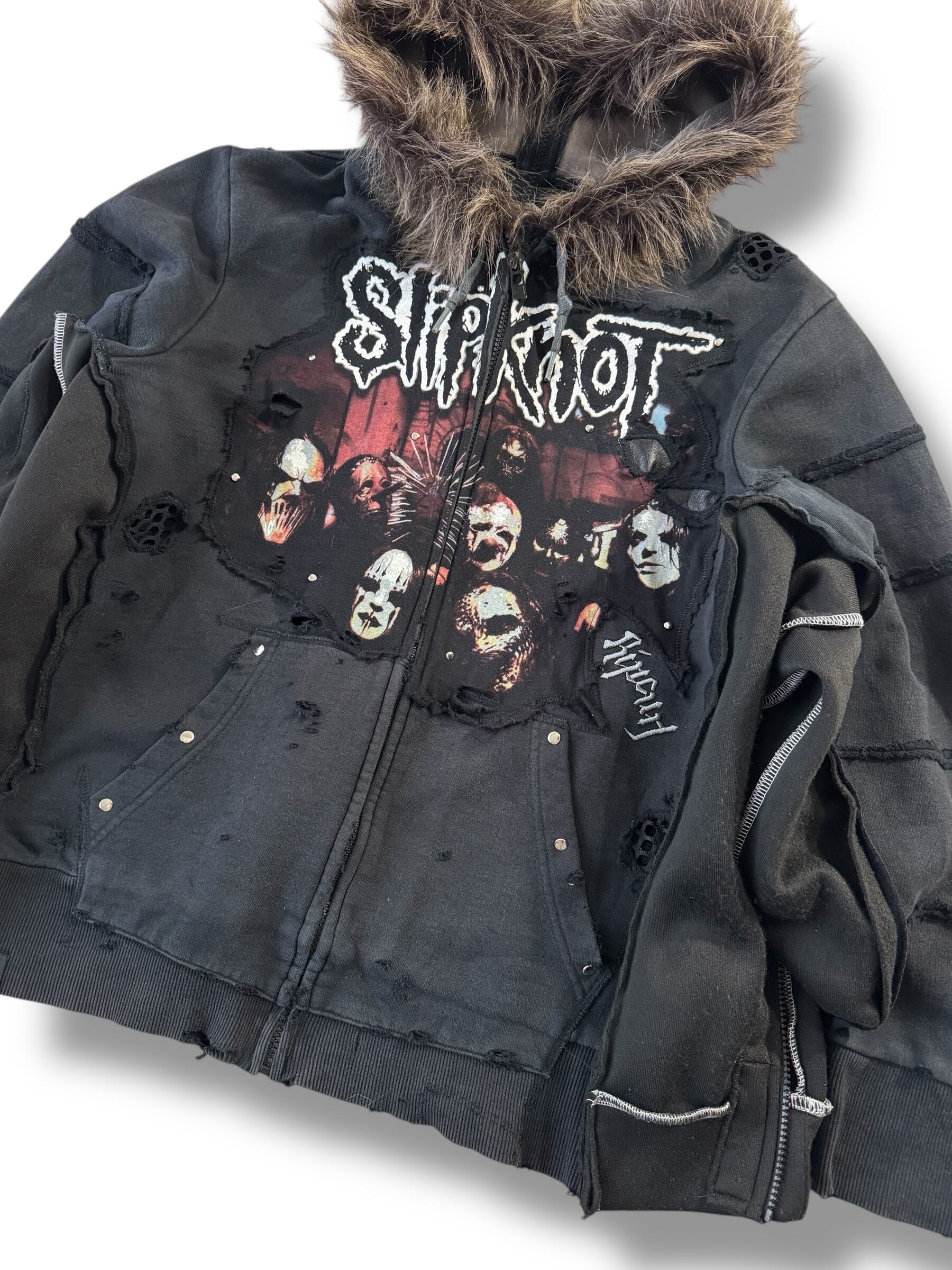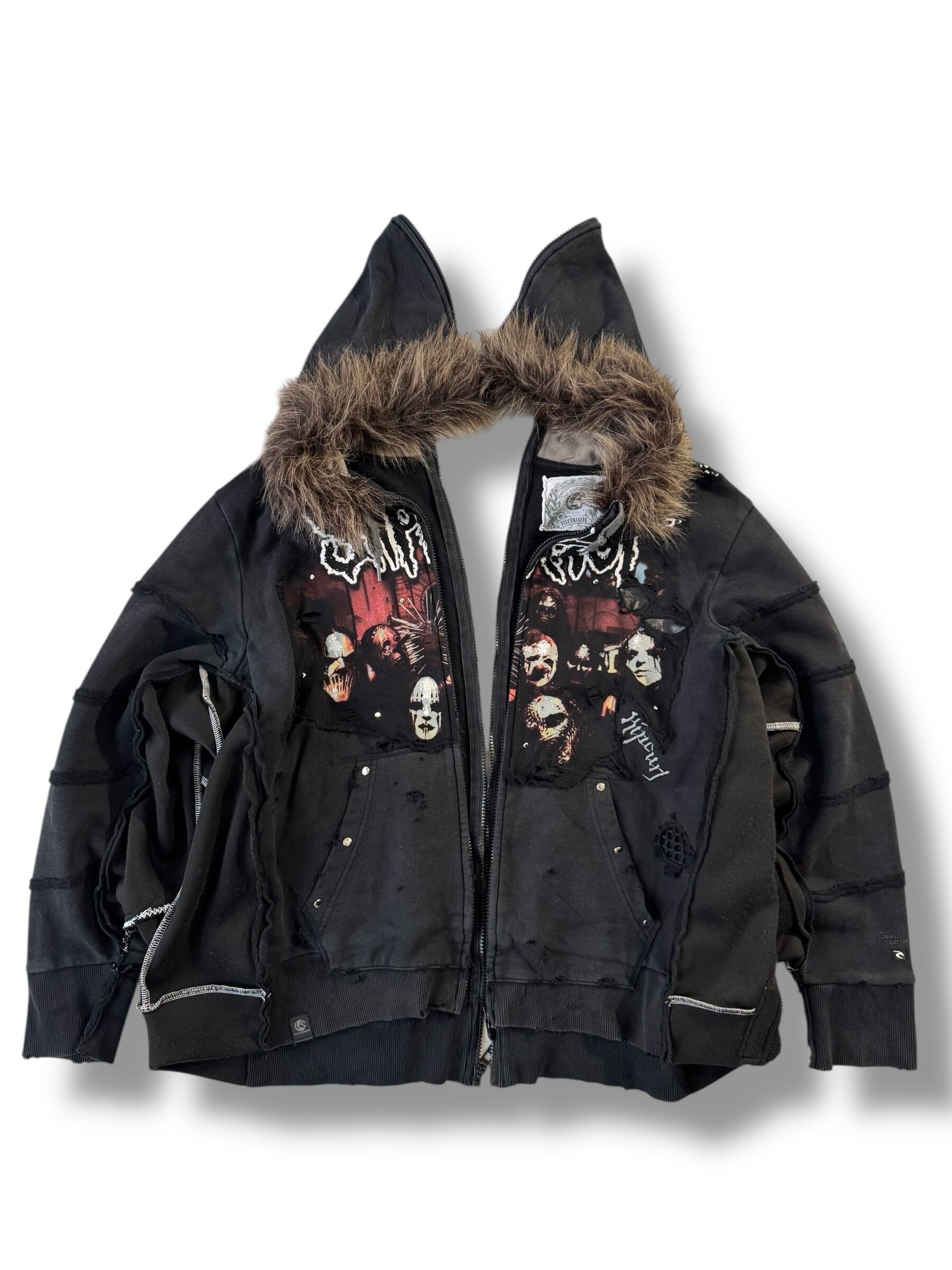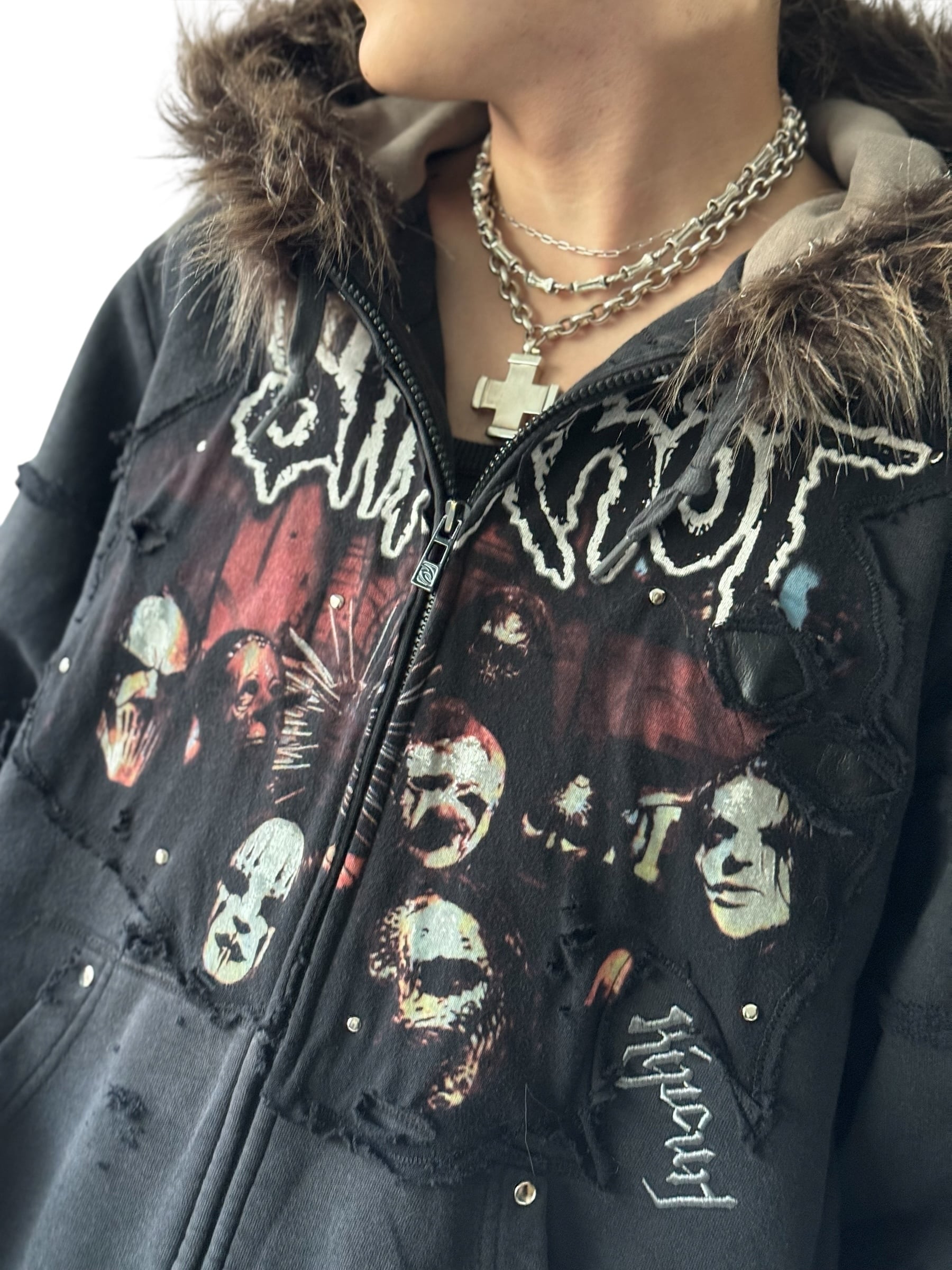 ♾REMADE COLLECTION♾ "SLIPKNOT" grunge custom design zip up ultra gimmick hoodie