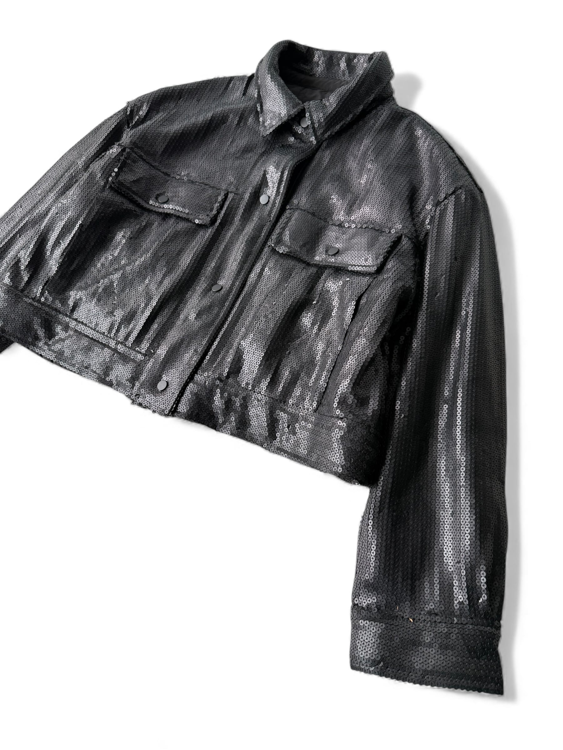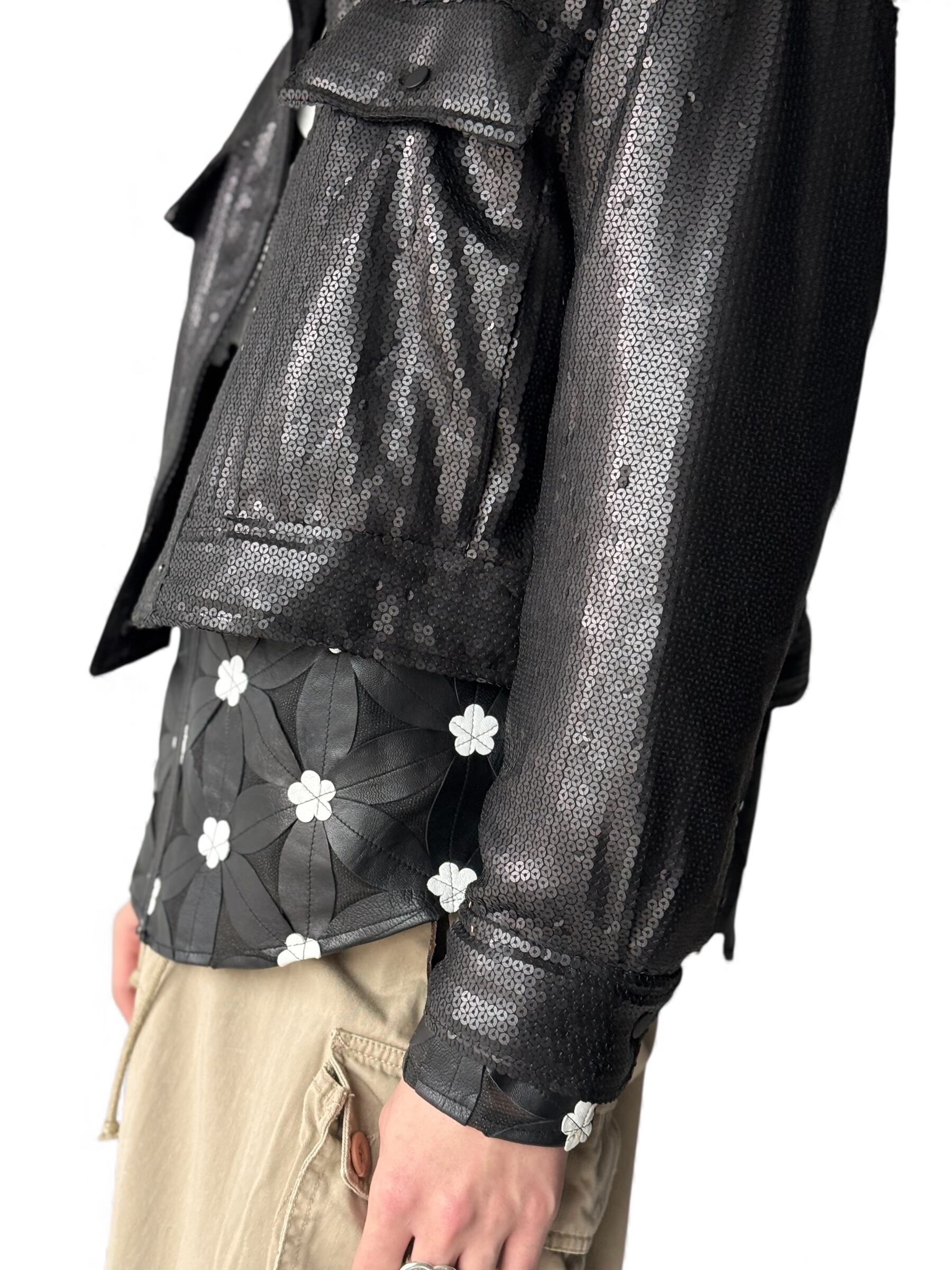 【design used】 Sequin design padded trucker jacket