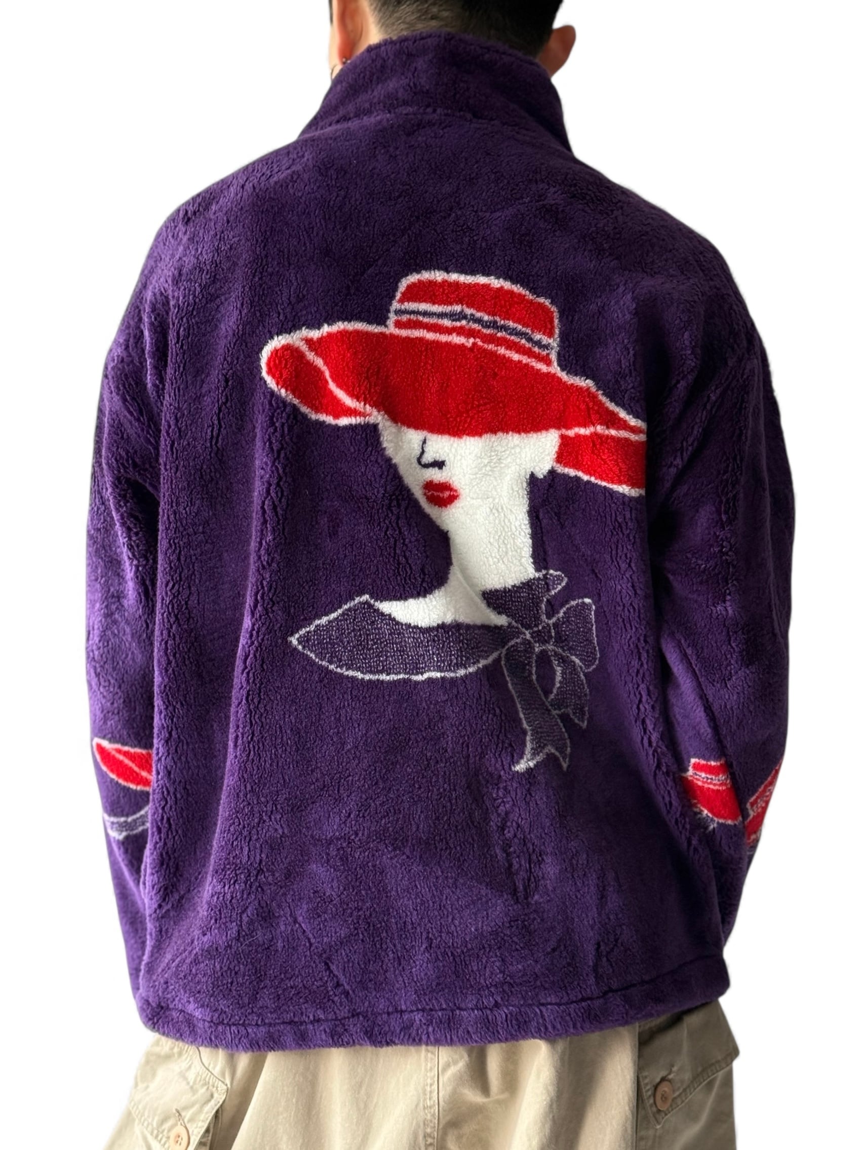 パープルに女優帽と貴婦人なマダムがアートにプリントされたパターンがめっちゃお洒落✨