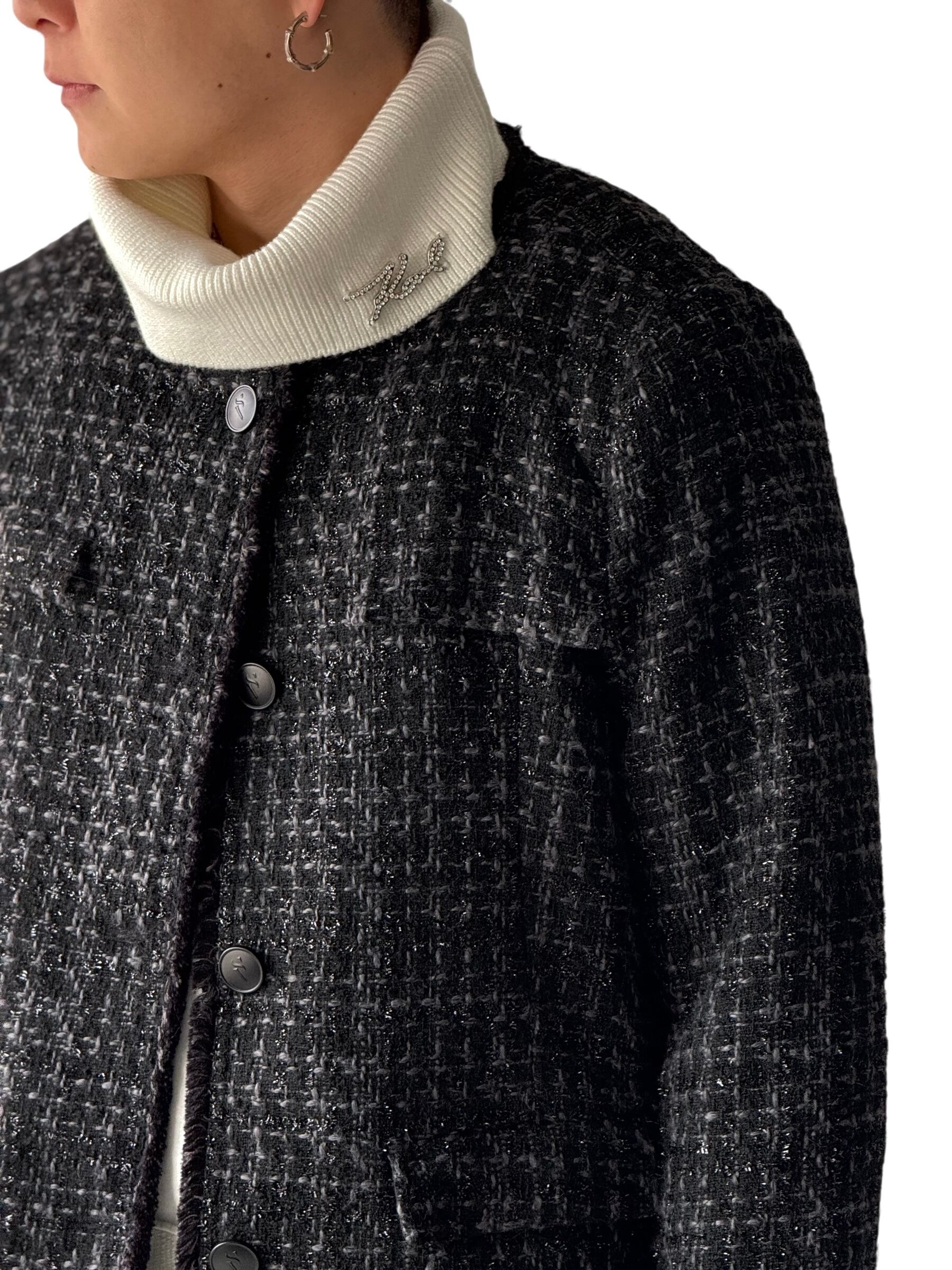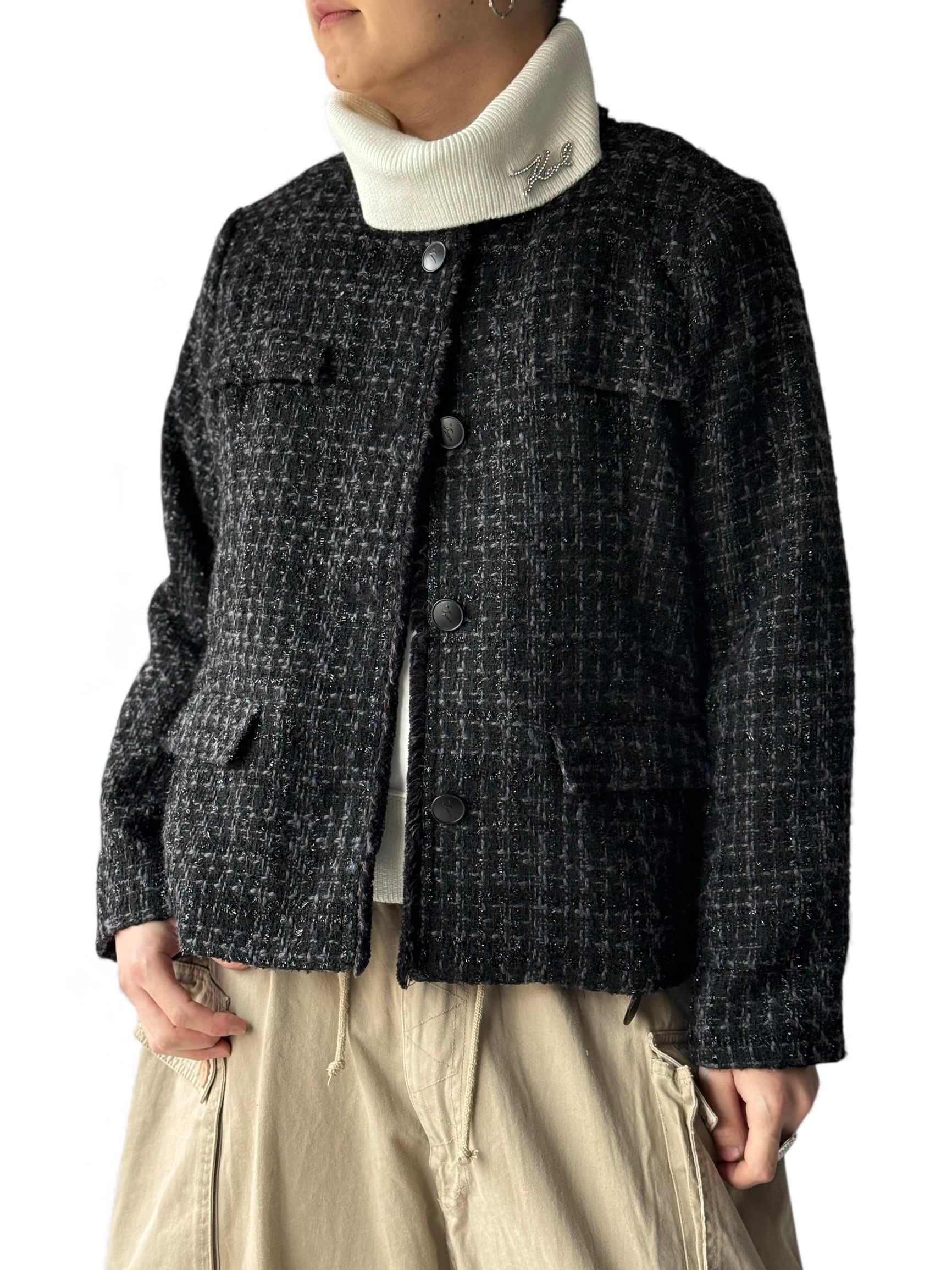 【SIMPLY VERA VERAWANG】Lame-blend collarless tweed jacket