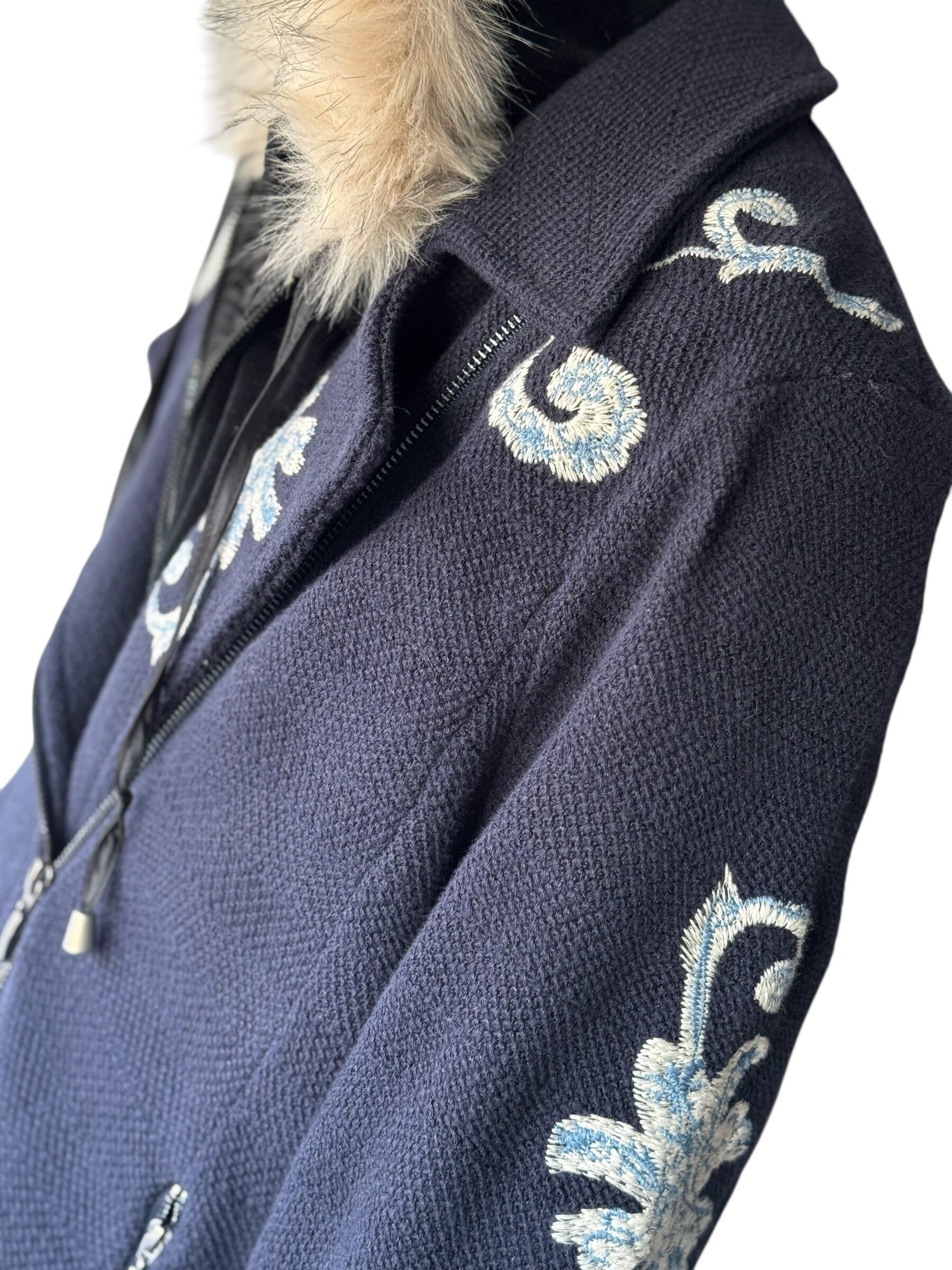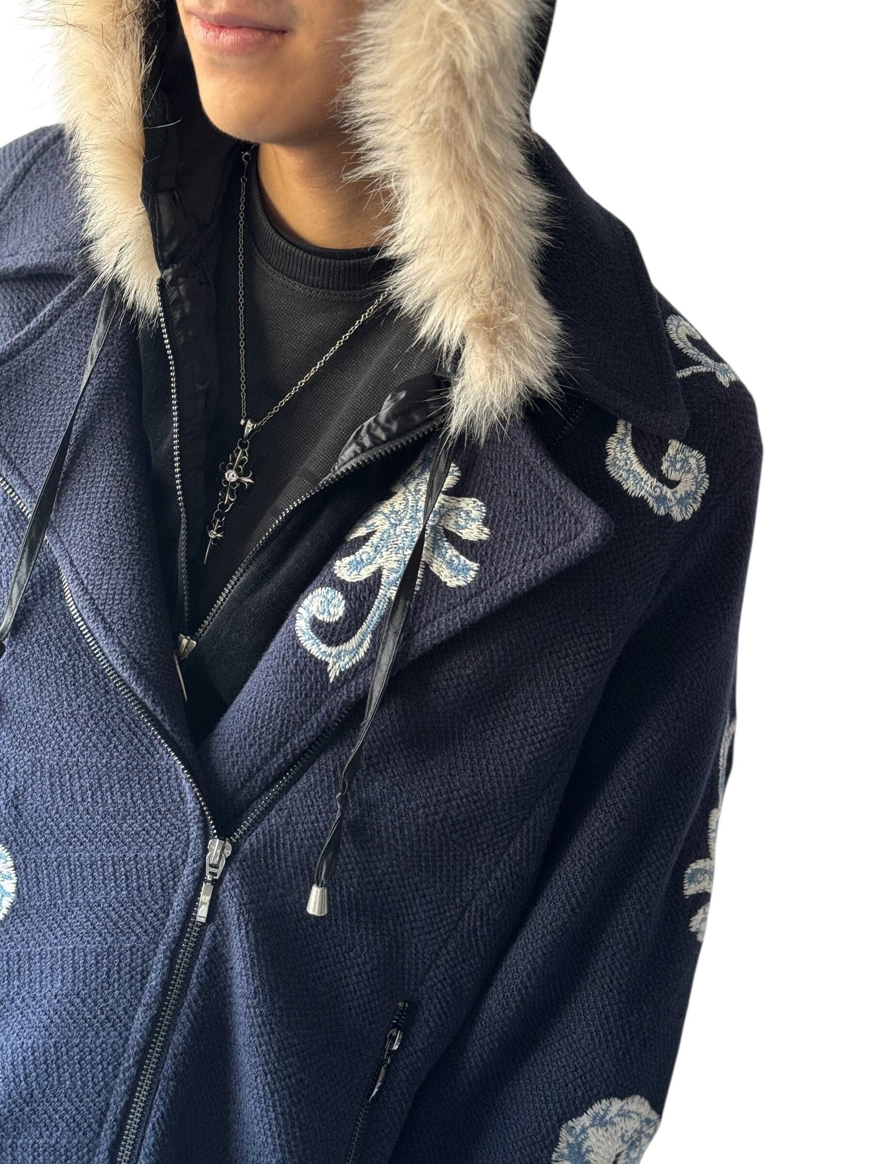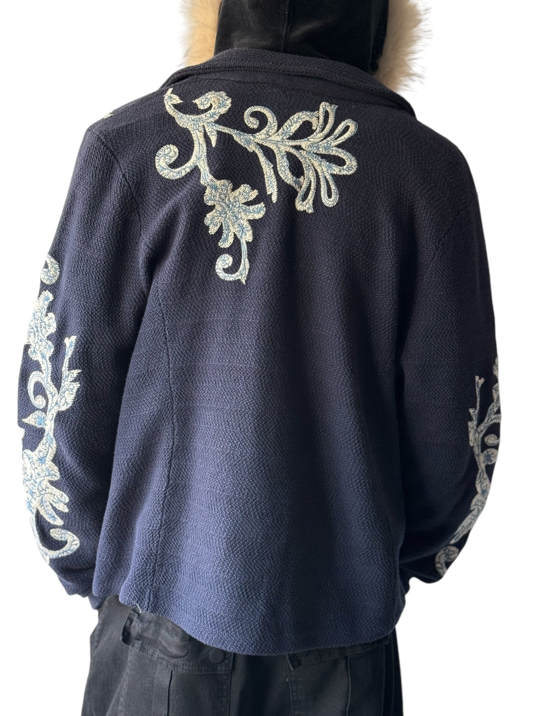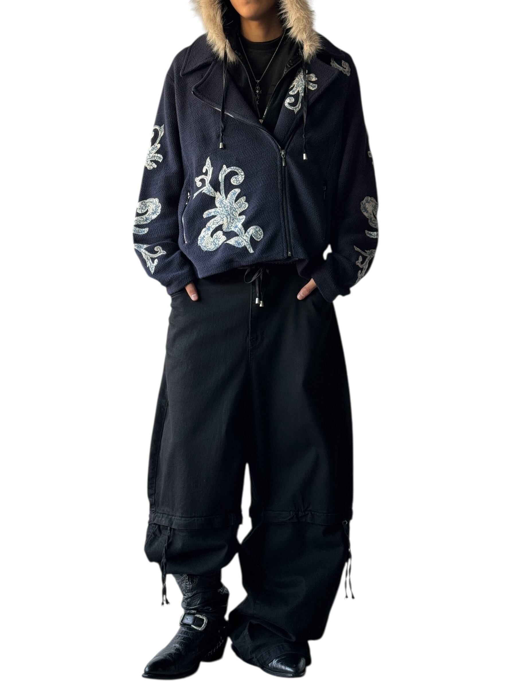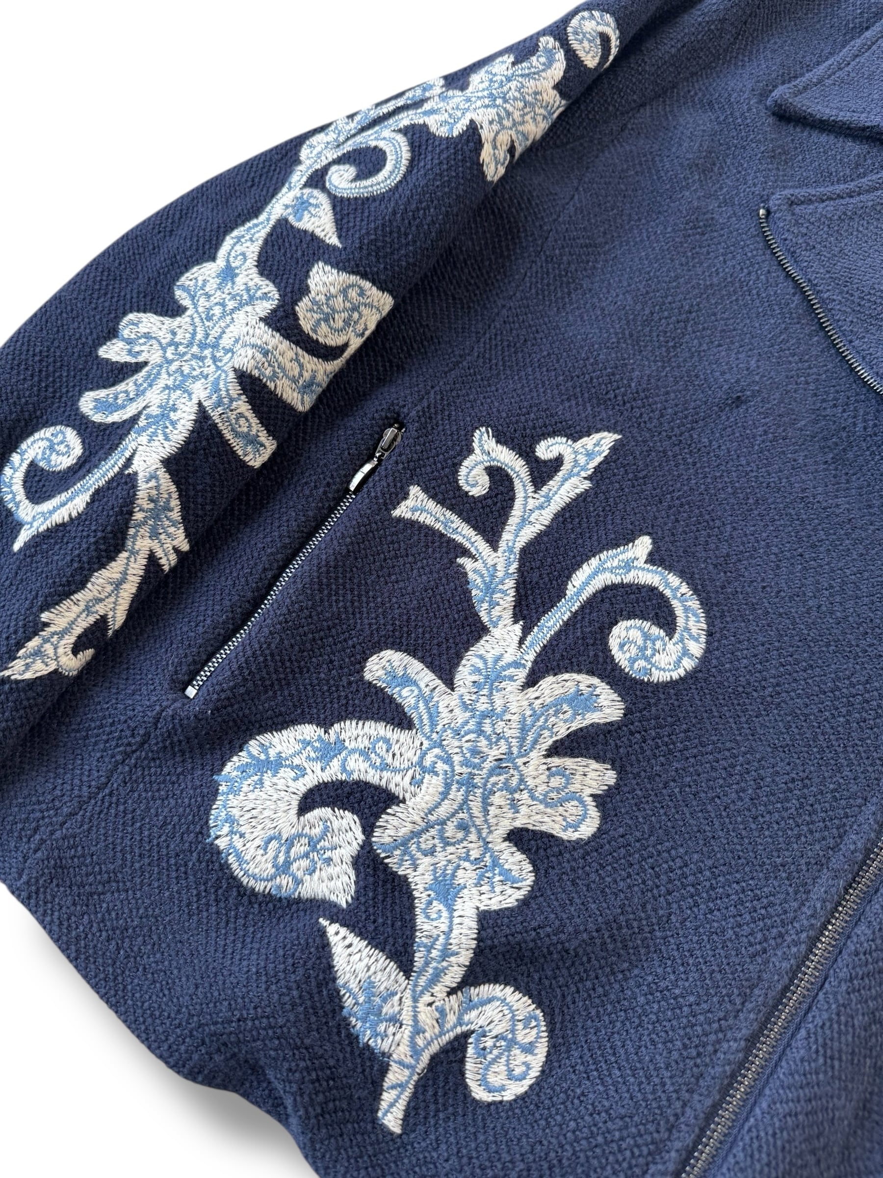 渋めのネイビーのフローラルモチーフの刺繍の総柄のライダース型ジャケット‼️