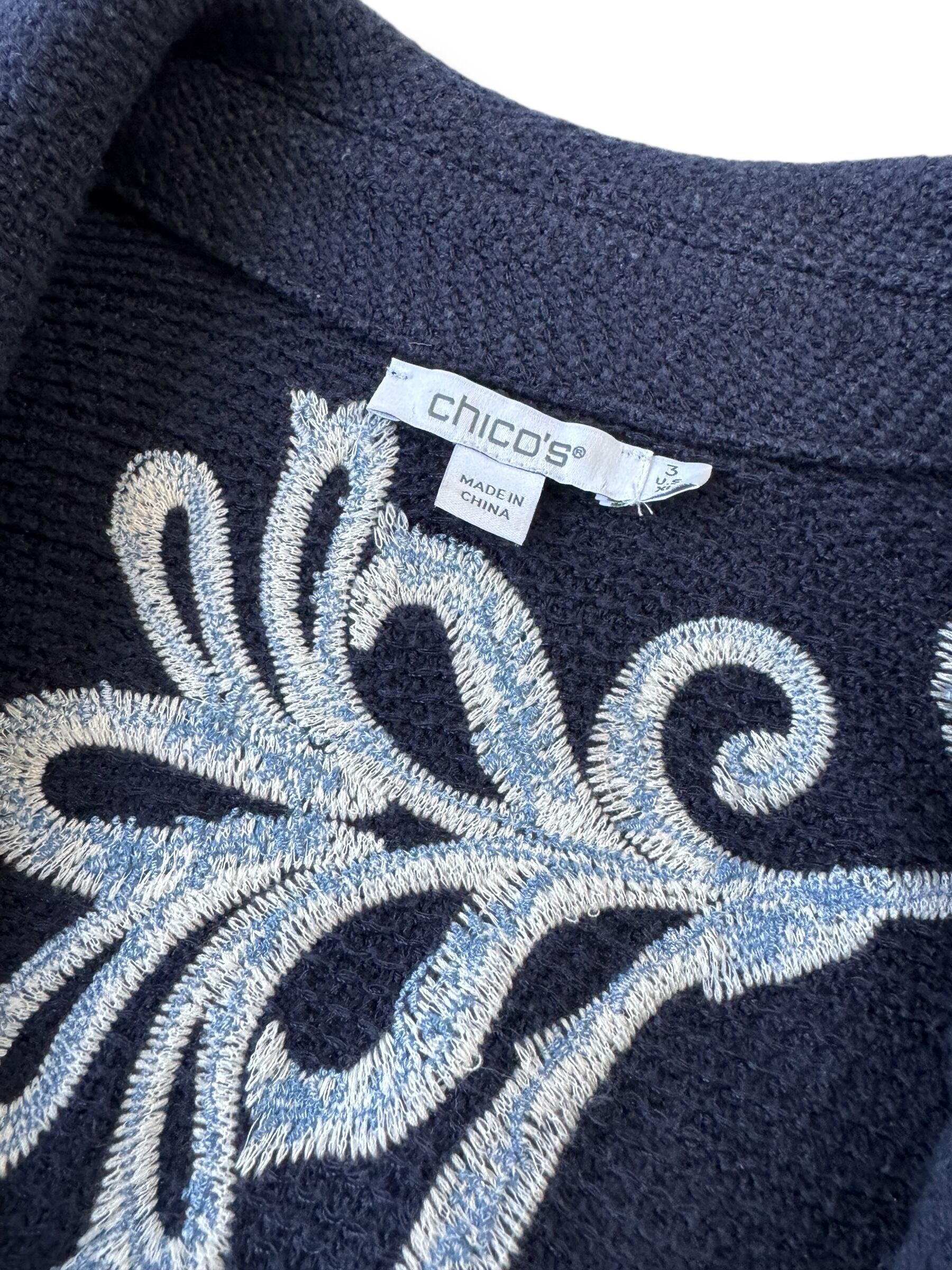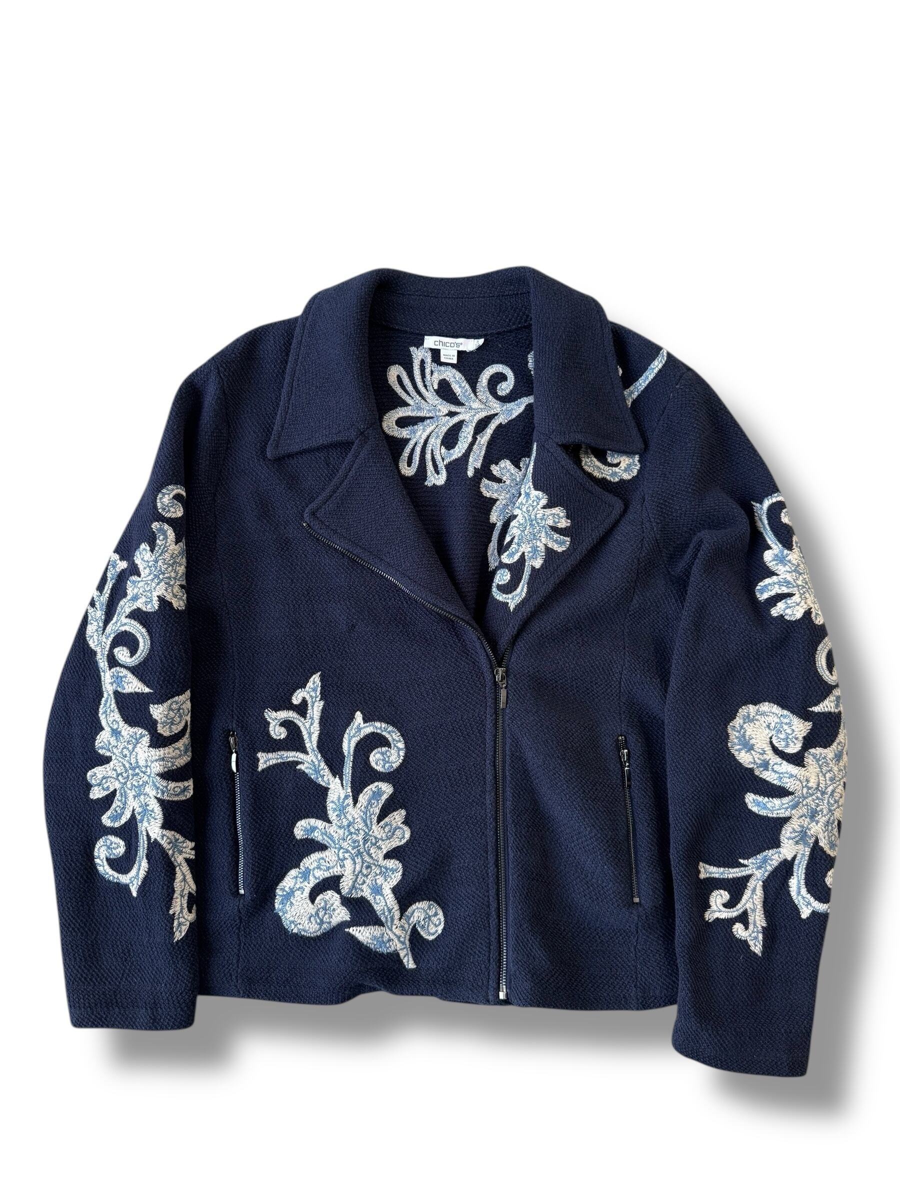 ♾️chico's♾️ Floral motif embroidered jacquard double rider jacket size XL
