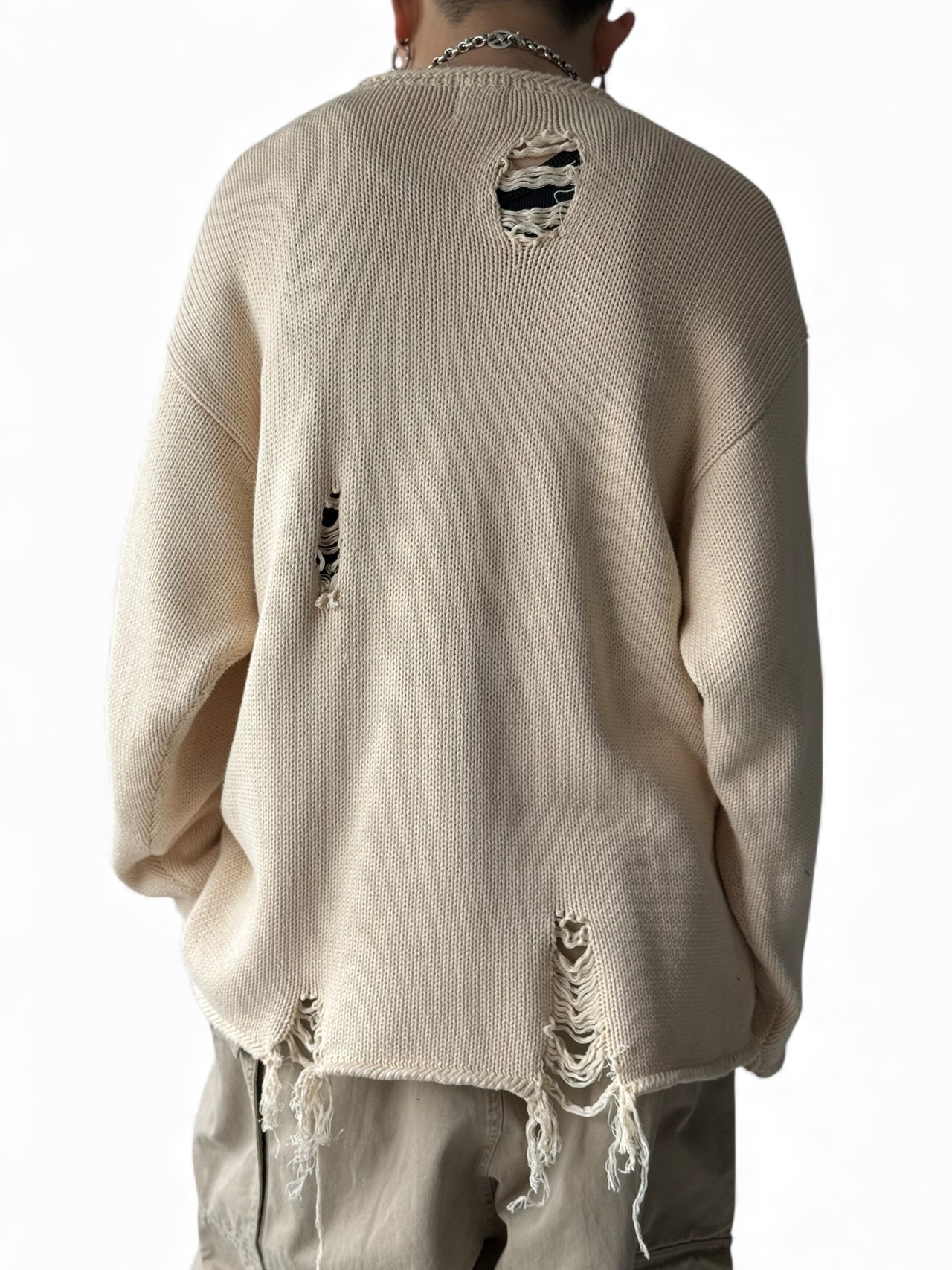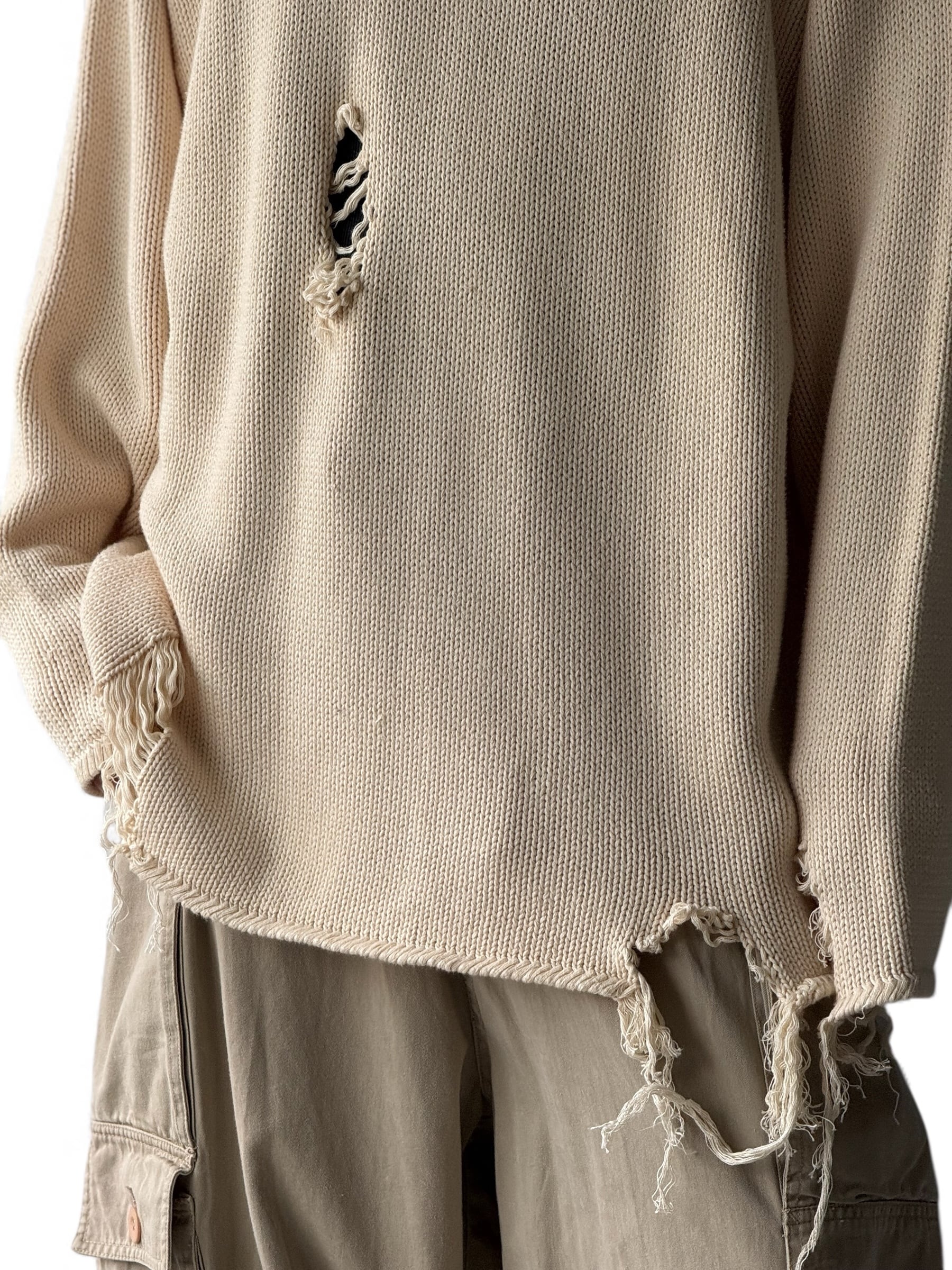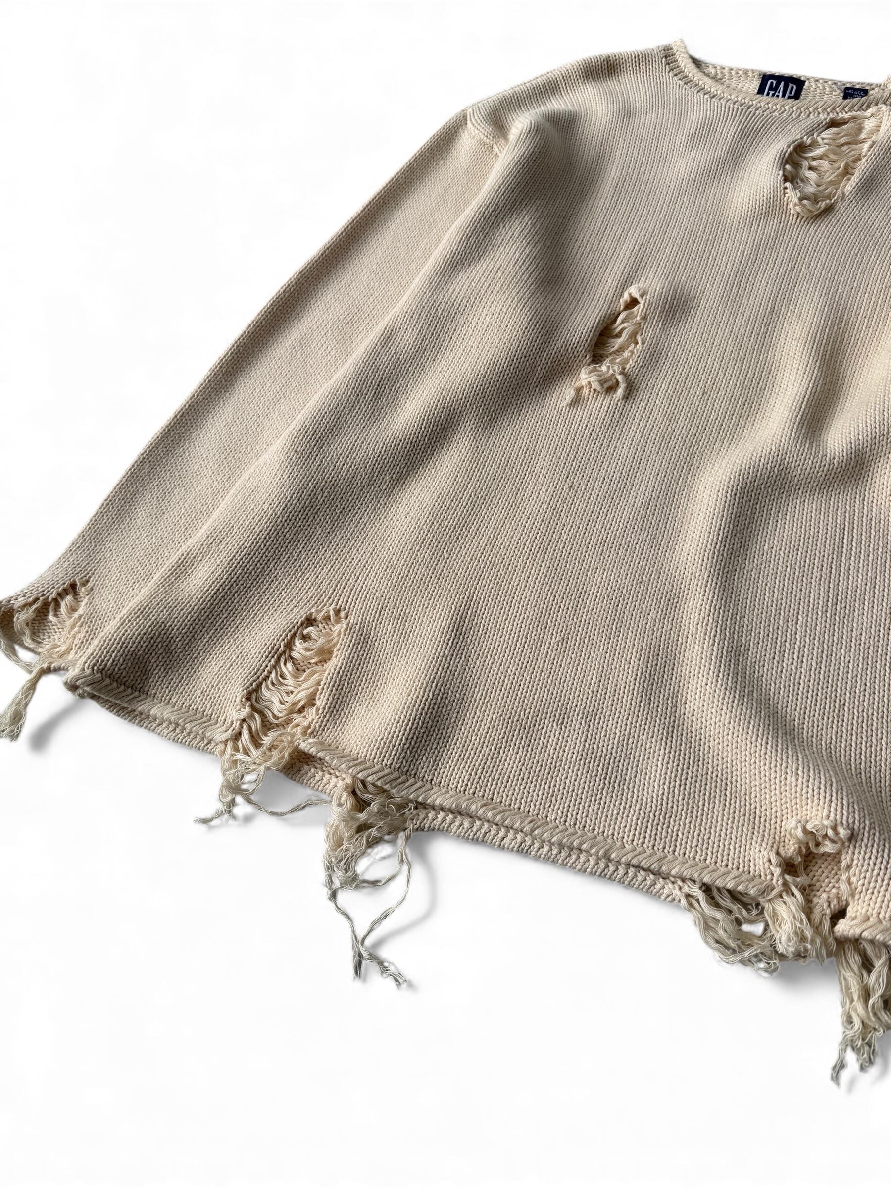 【OLD GAP】 Cut and sew details Cotton Distressed Knit Sweater