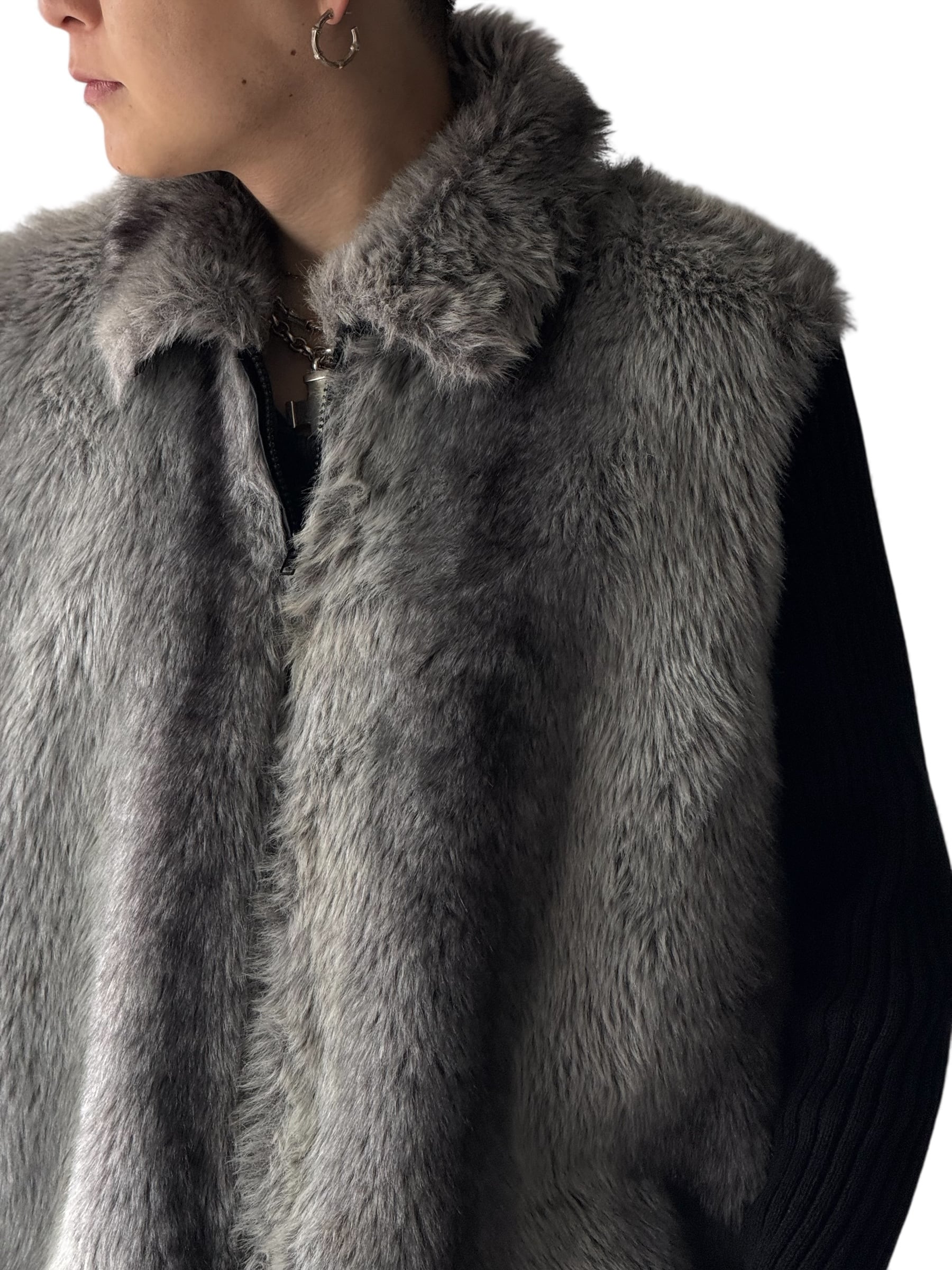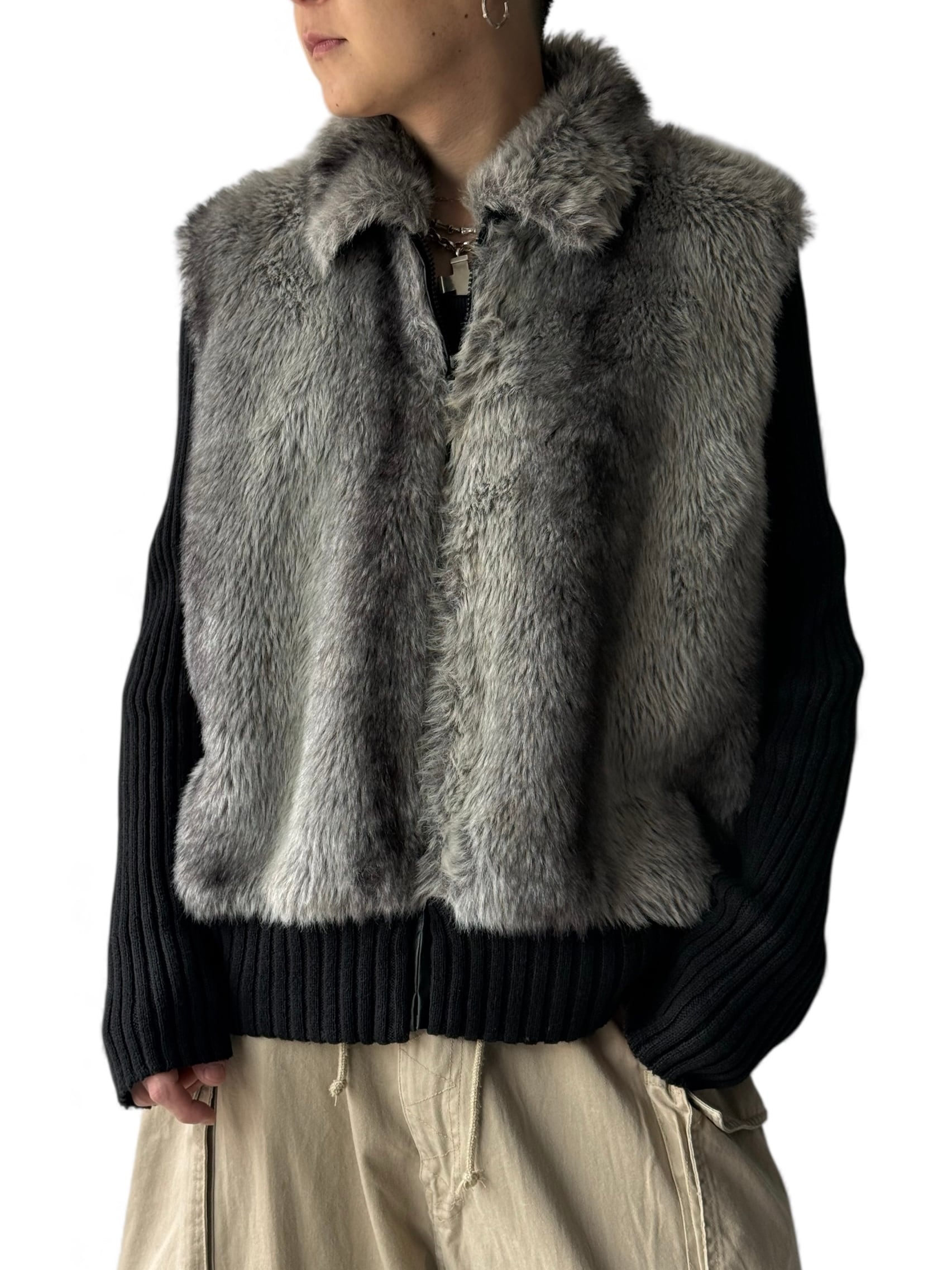 【Vintage Fashion Bug】Front Fur Swiching Zipup KNIT