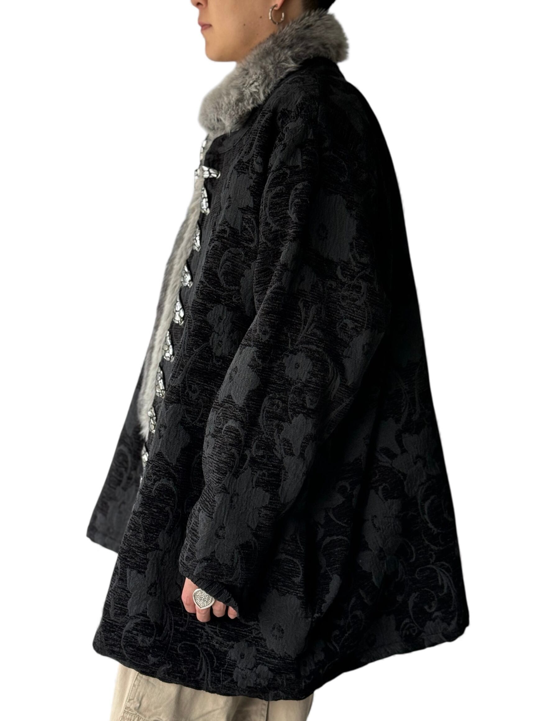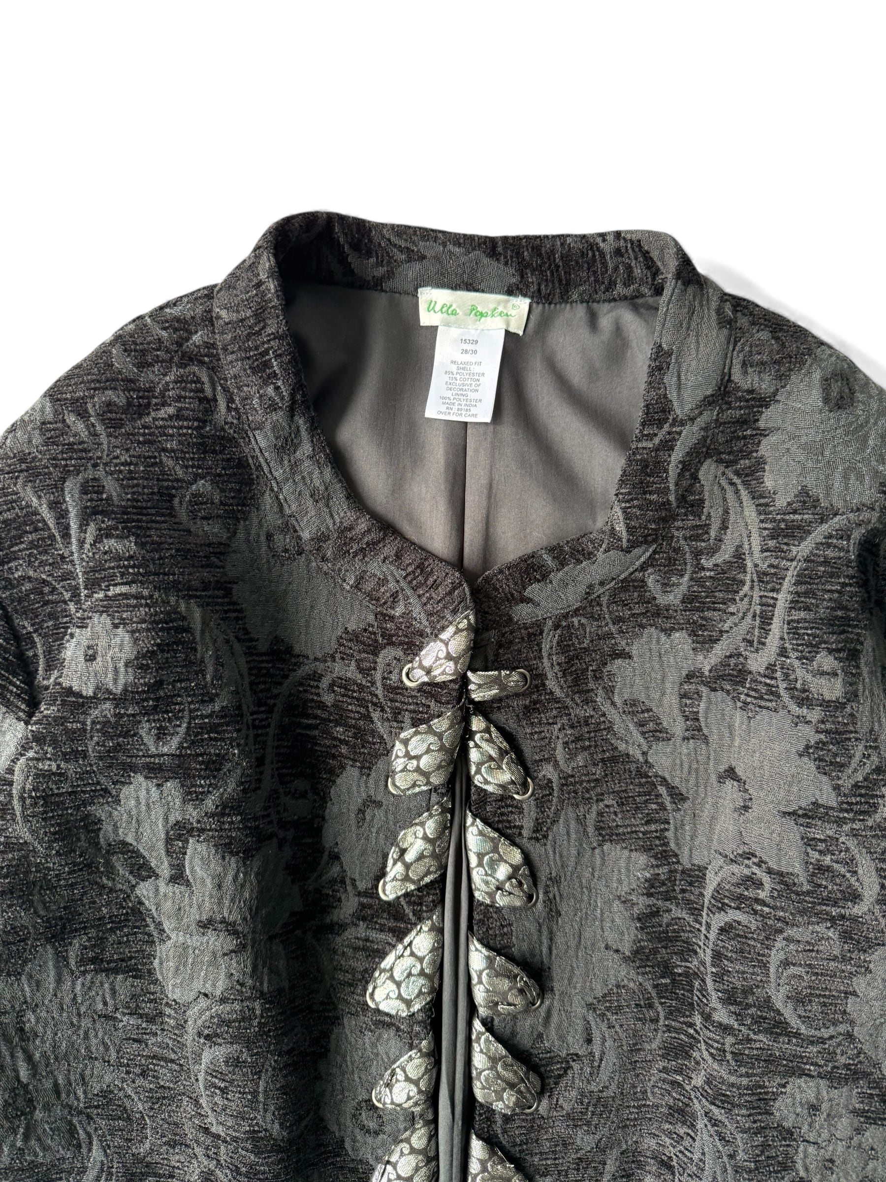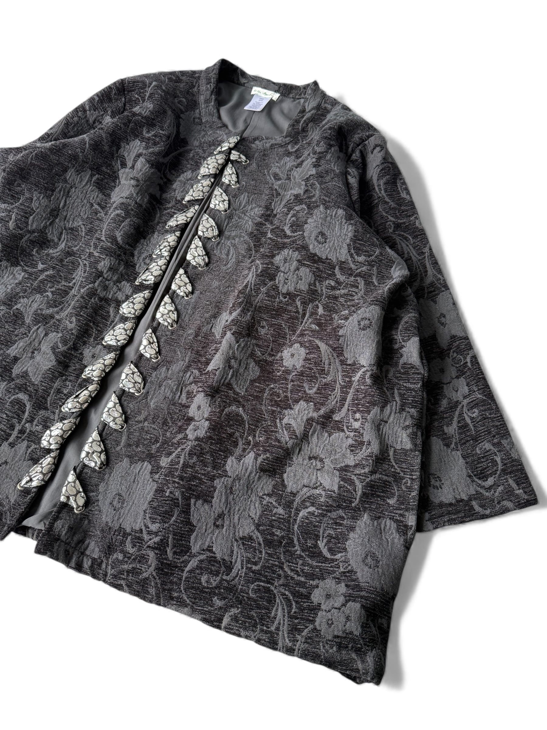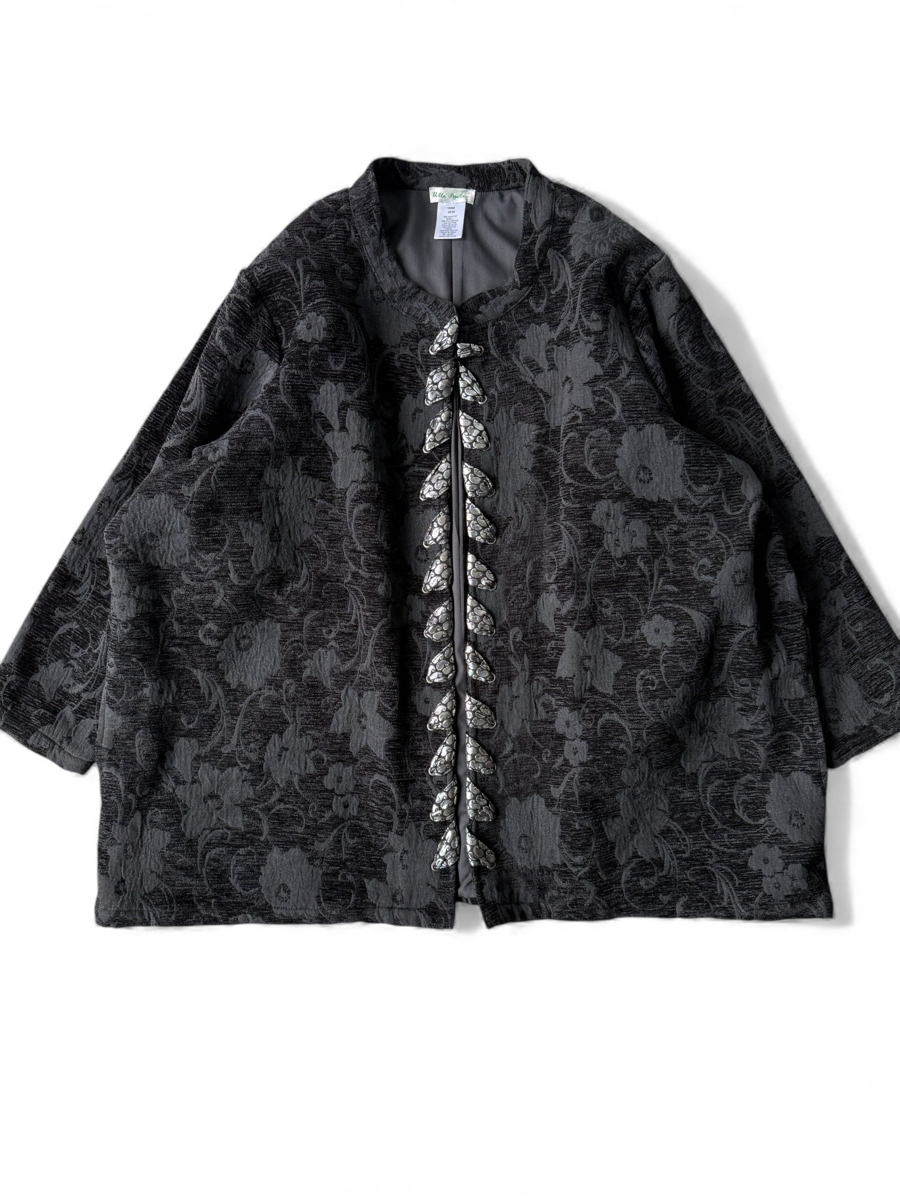 【ULLA POPKEN】 Gobelin Fabric Floral Design No collar Long jacket