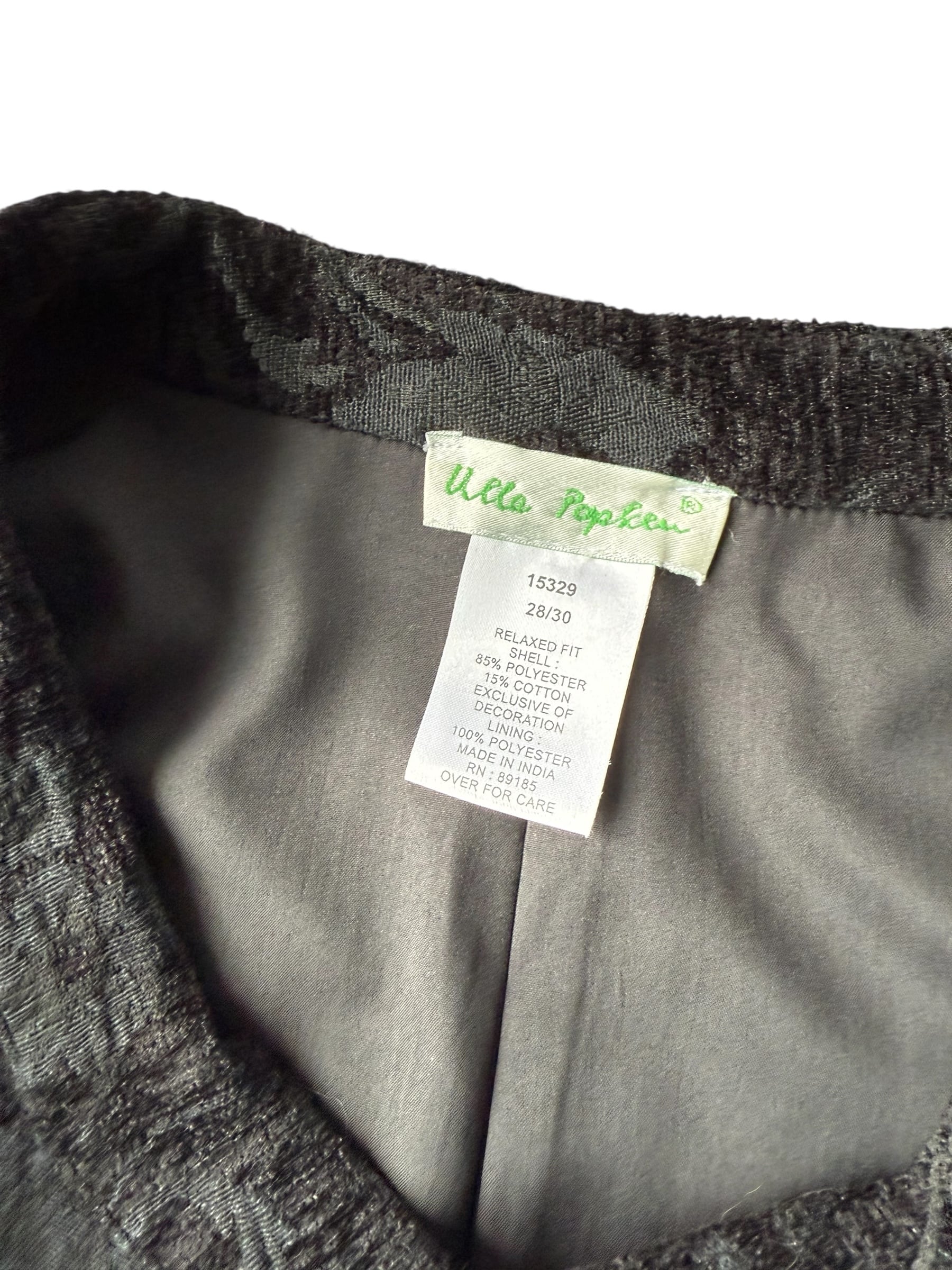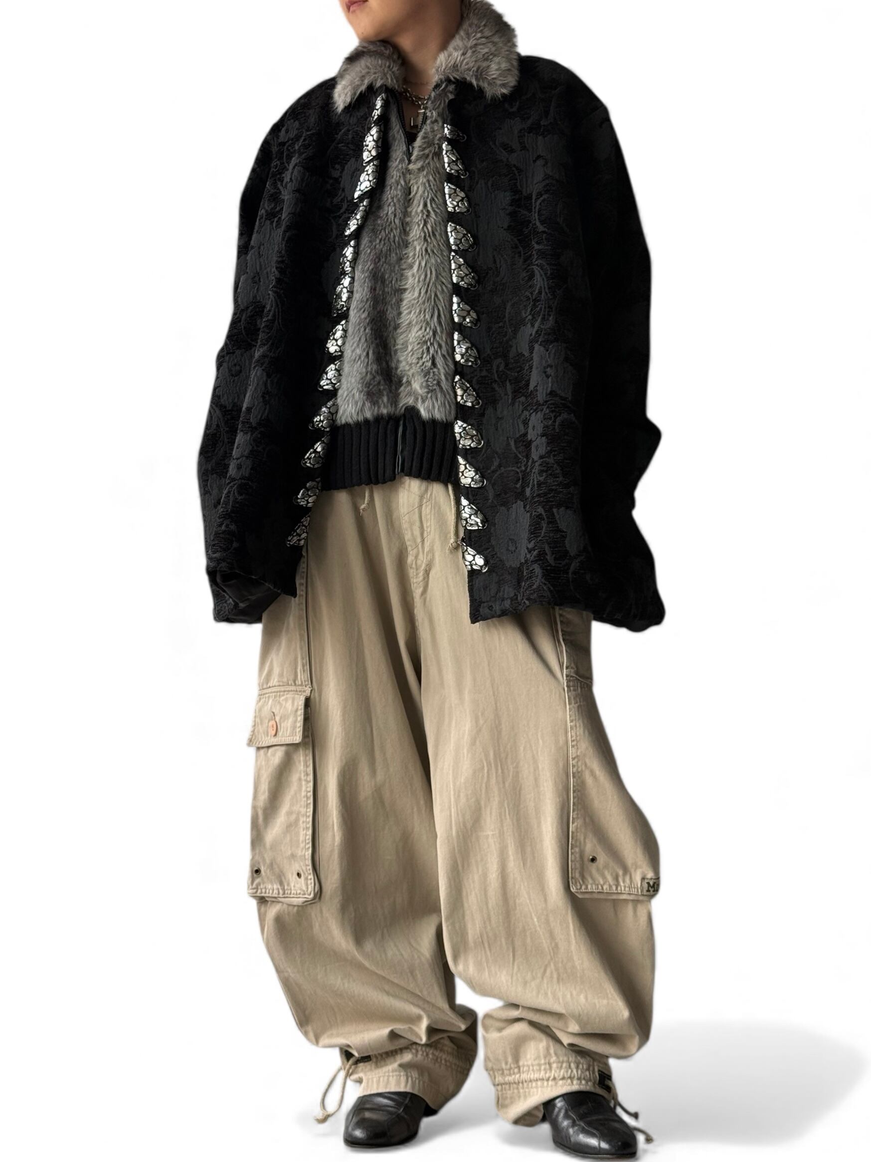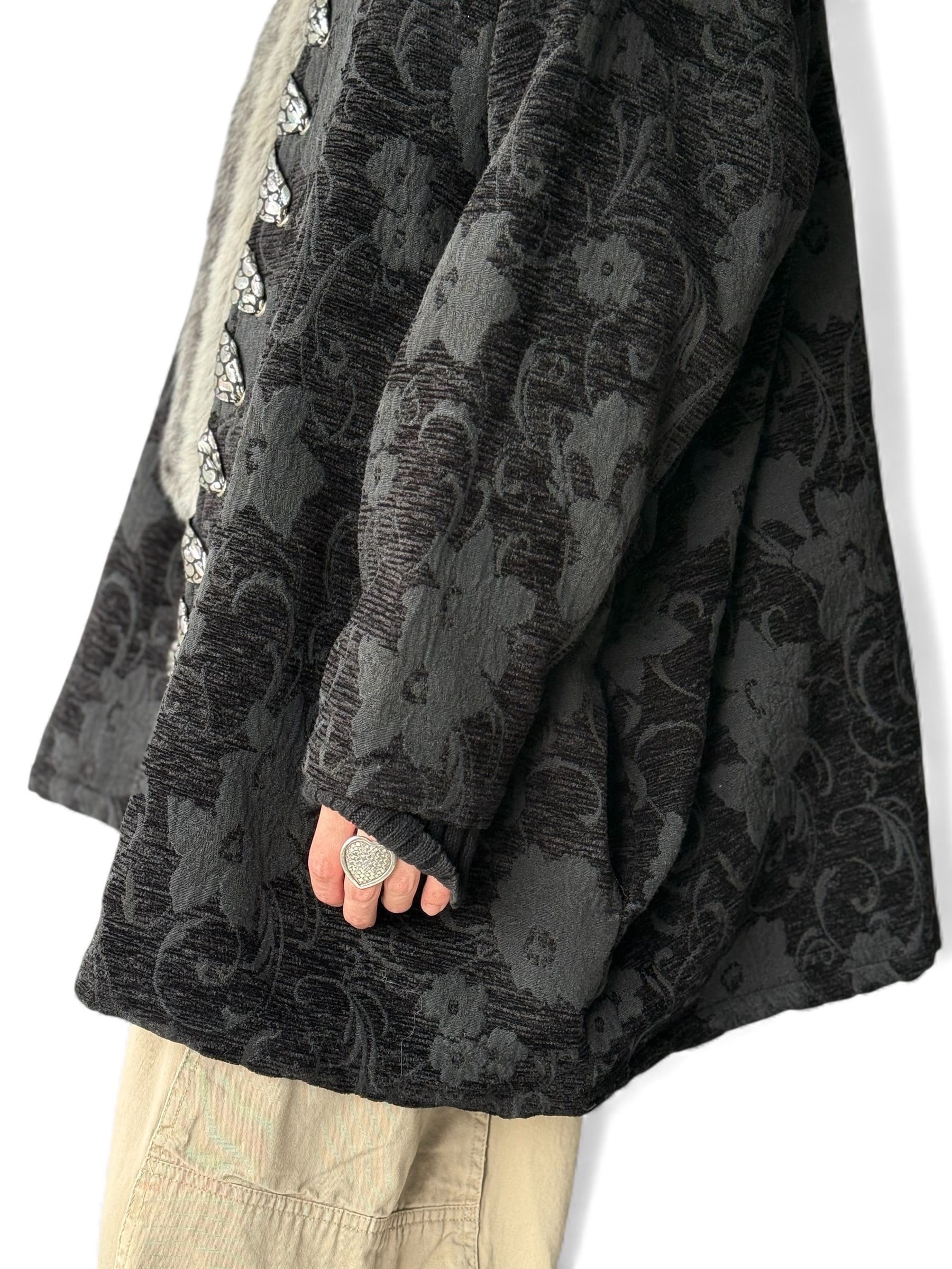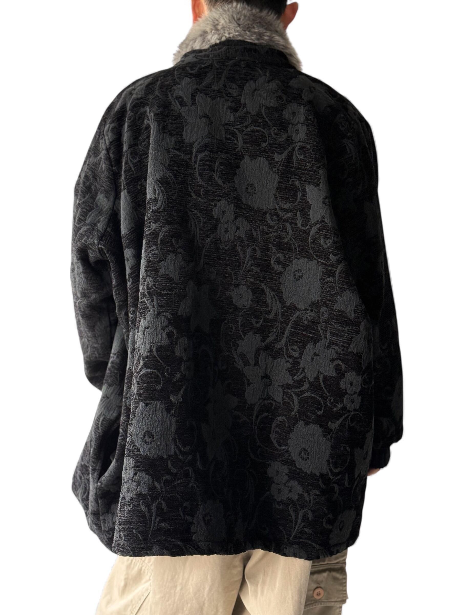 【ULLA POPKEN】 Gobelin Fabric Floral Design No collar Long jacket