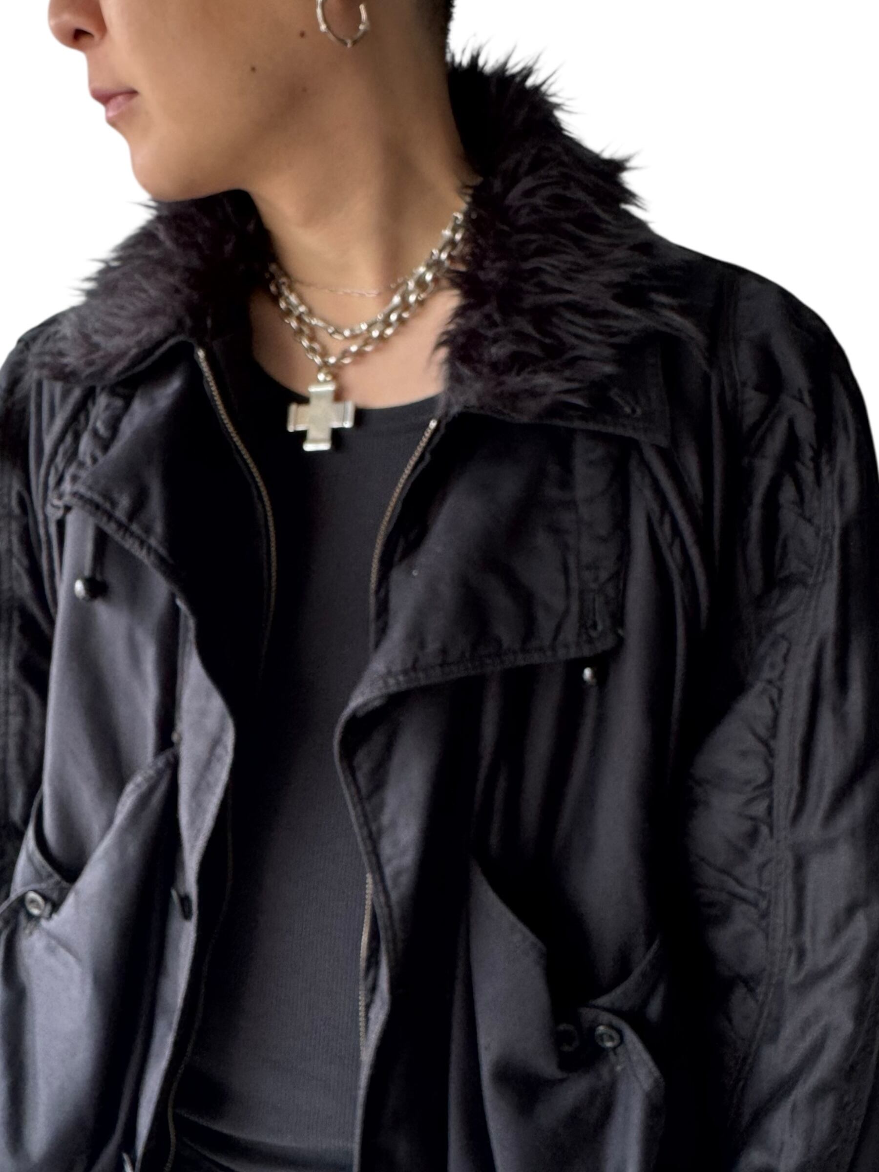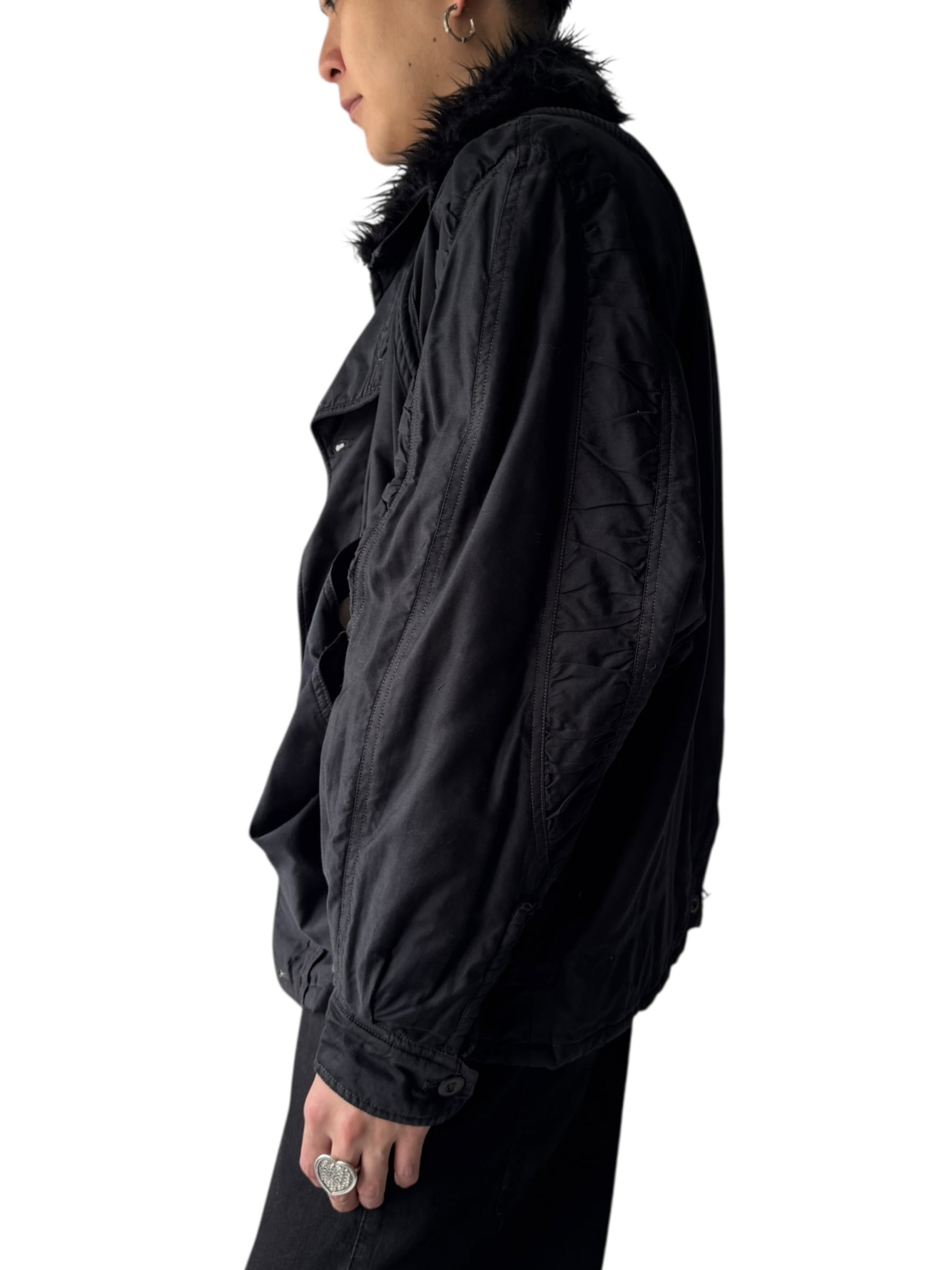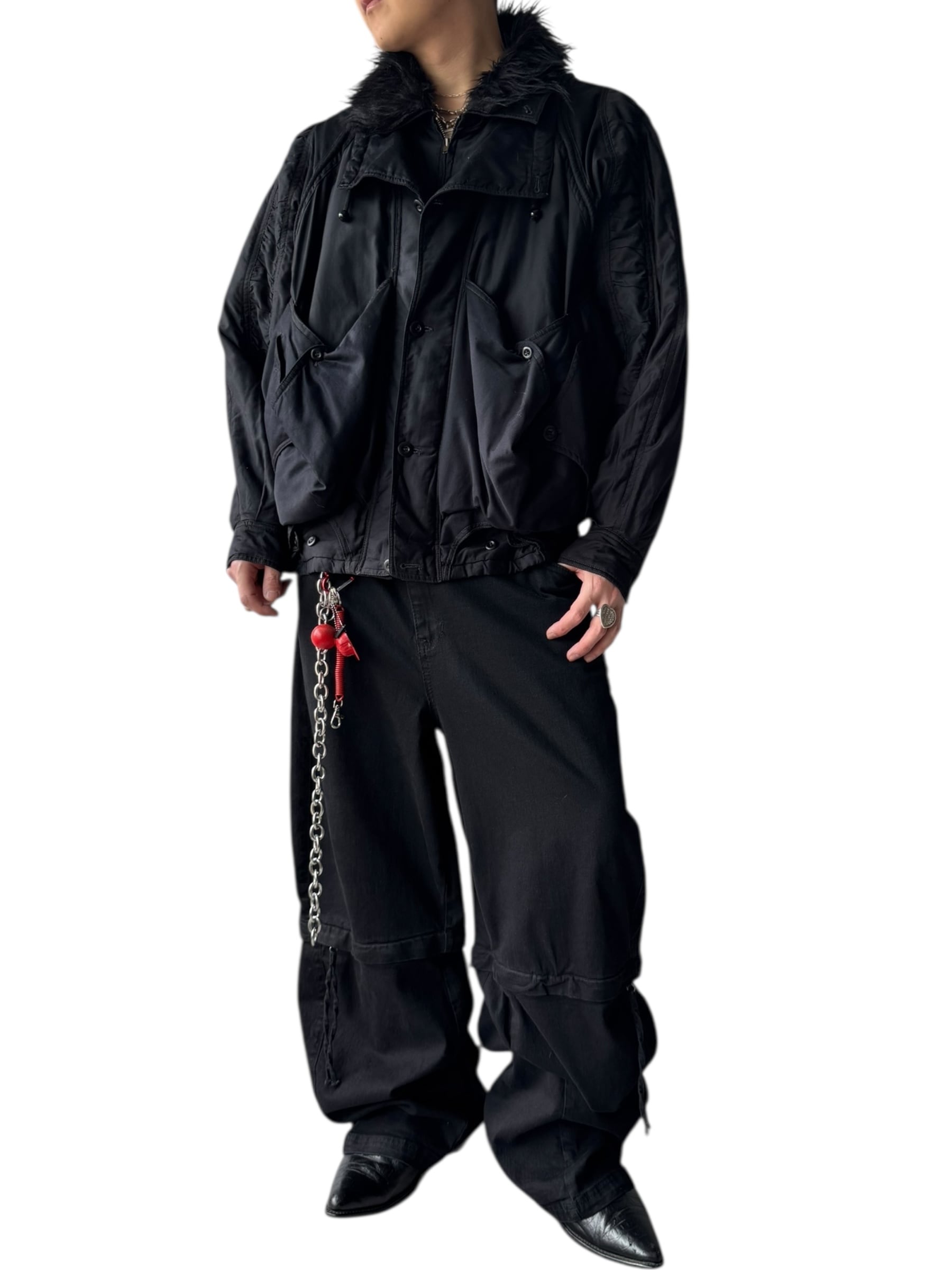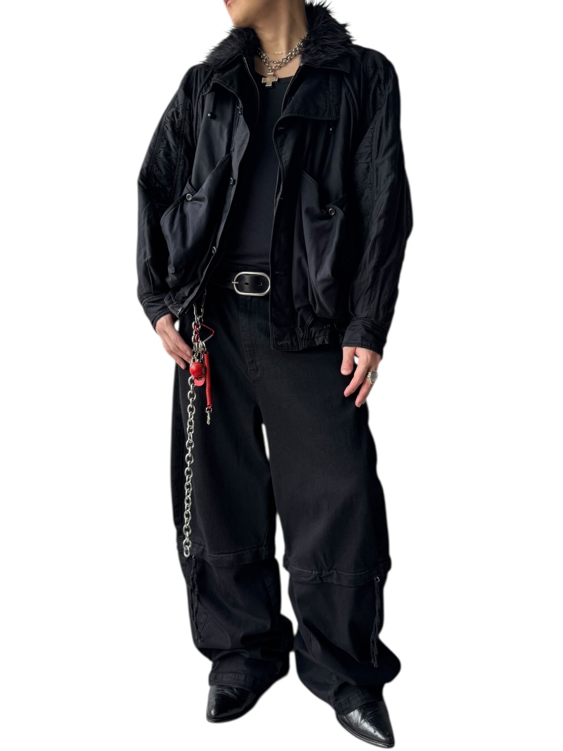 ♾ MIND HOOKANGEL♾ gimmick design fur collar bomber jacket size L ・
