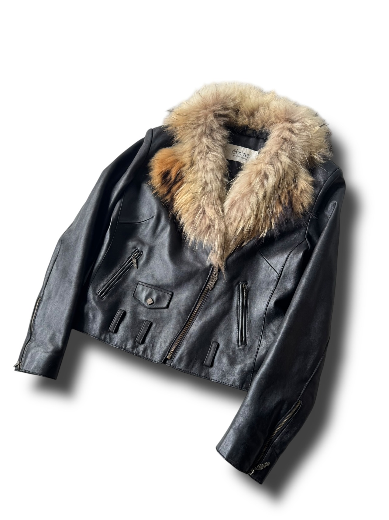 ♾ebene by Patrick Assuline♾ "euro vintage" real fur double riders jacket size 2