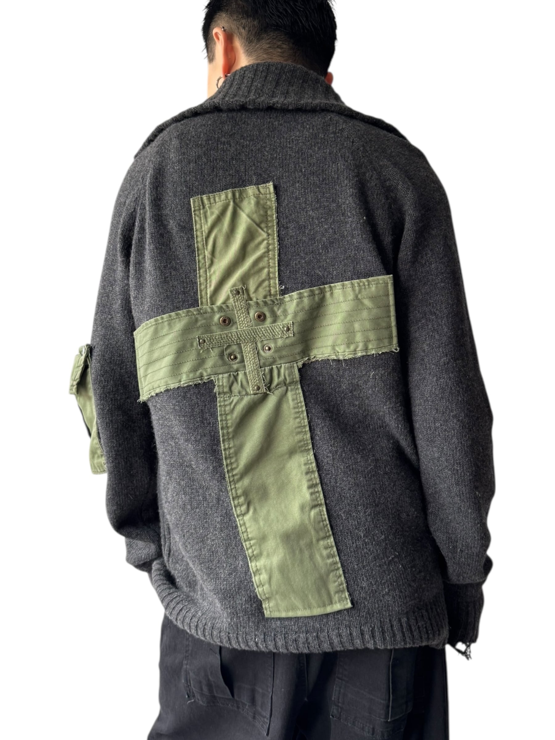 ♾DIESEL♾ -military cross- design crushed remake customize drivers knit sizeL