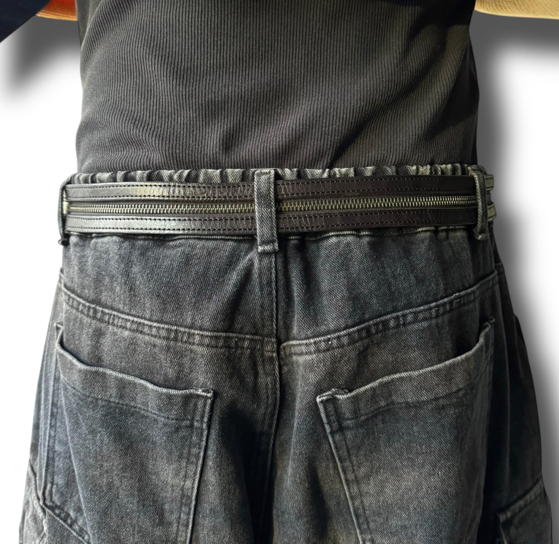 センターにジップを搭載し開閉可能なデザイン。全長が長さが異なるデザインで単調なスタイリングに変化を与えてくれてモードなノリがめちゃめちゃ映える1本‼️
