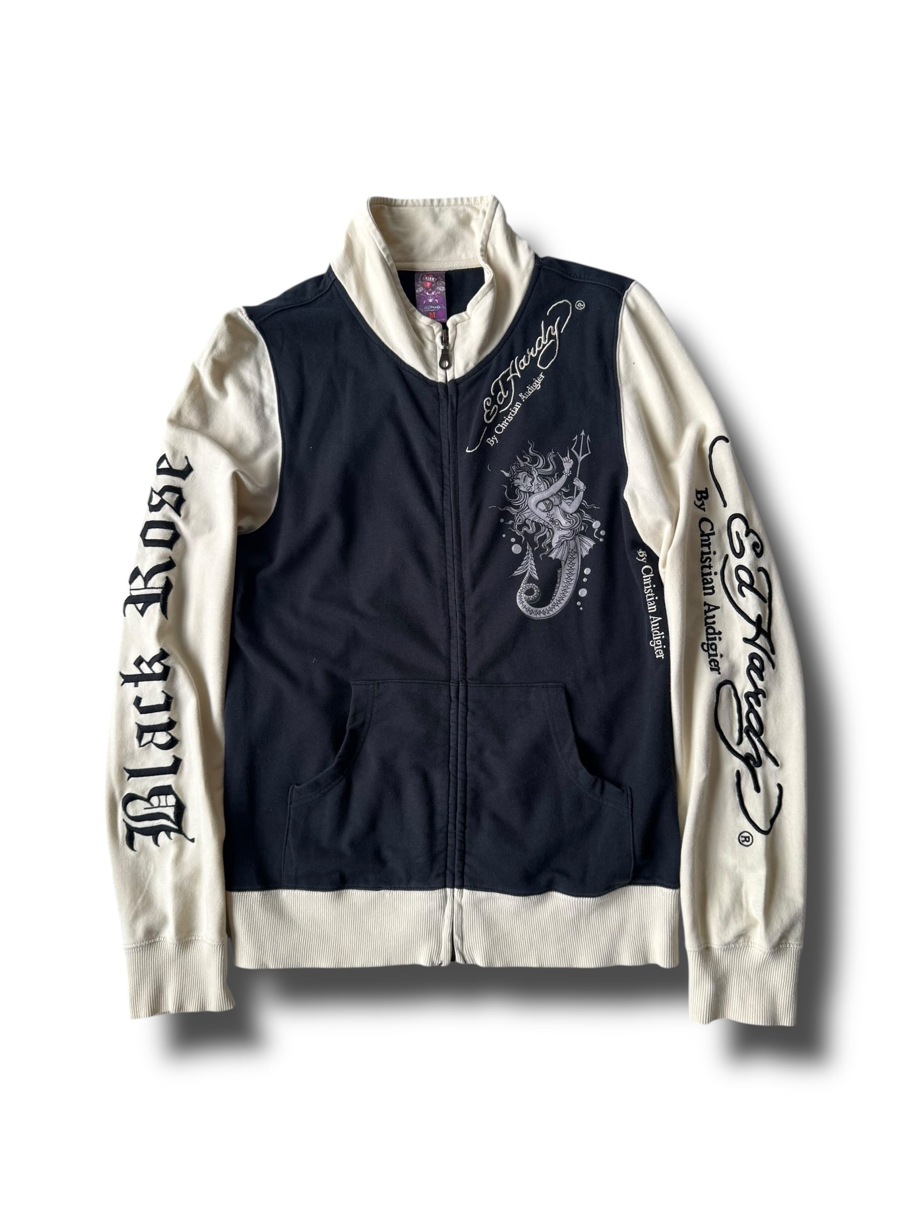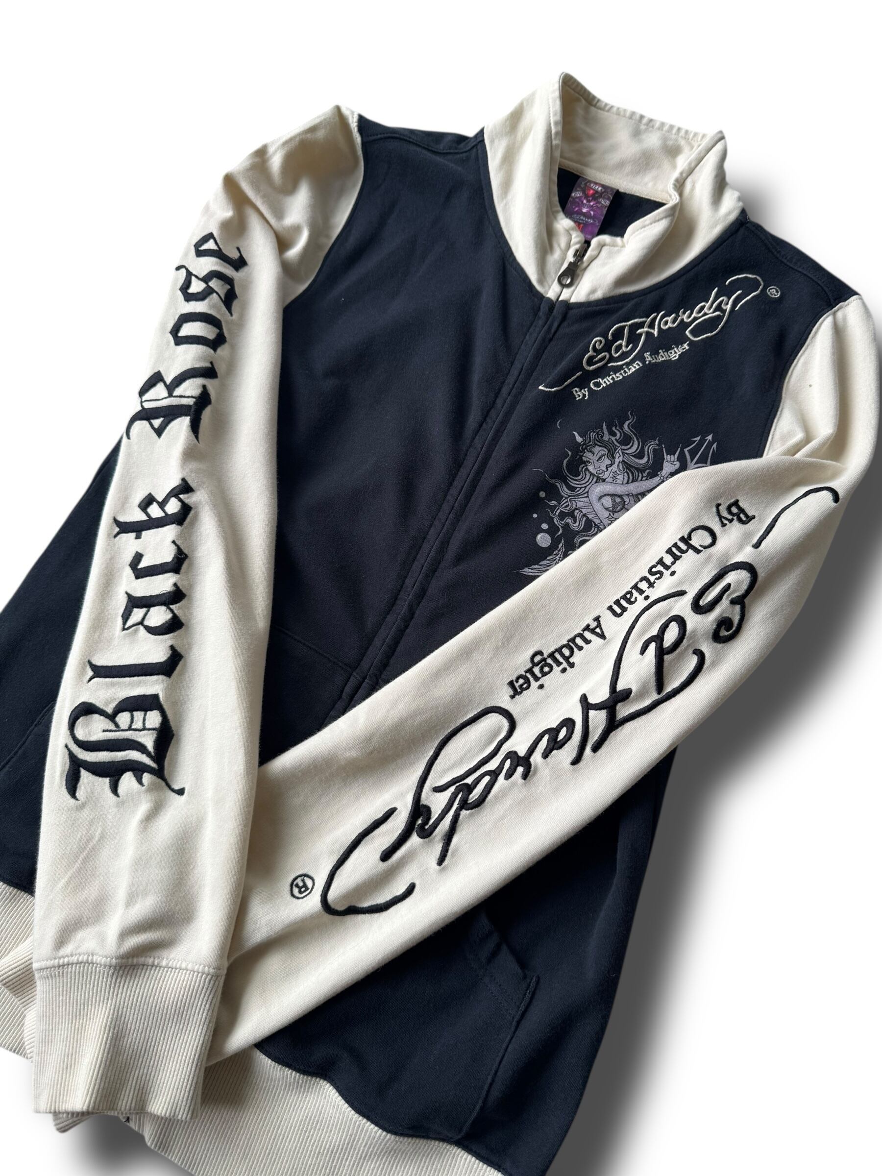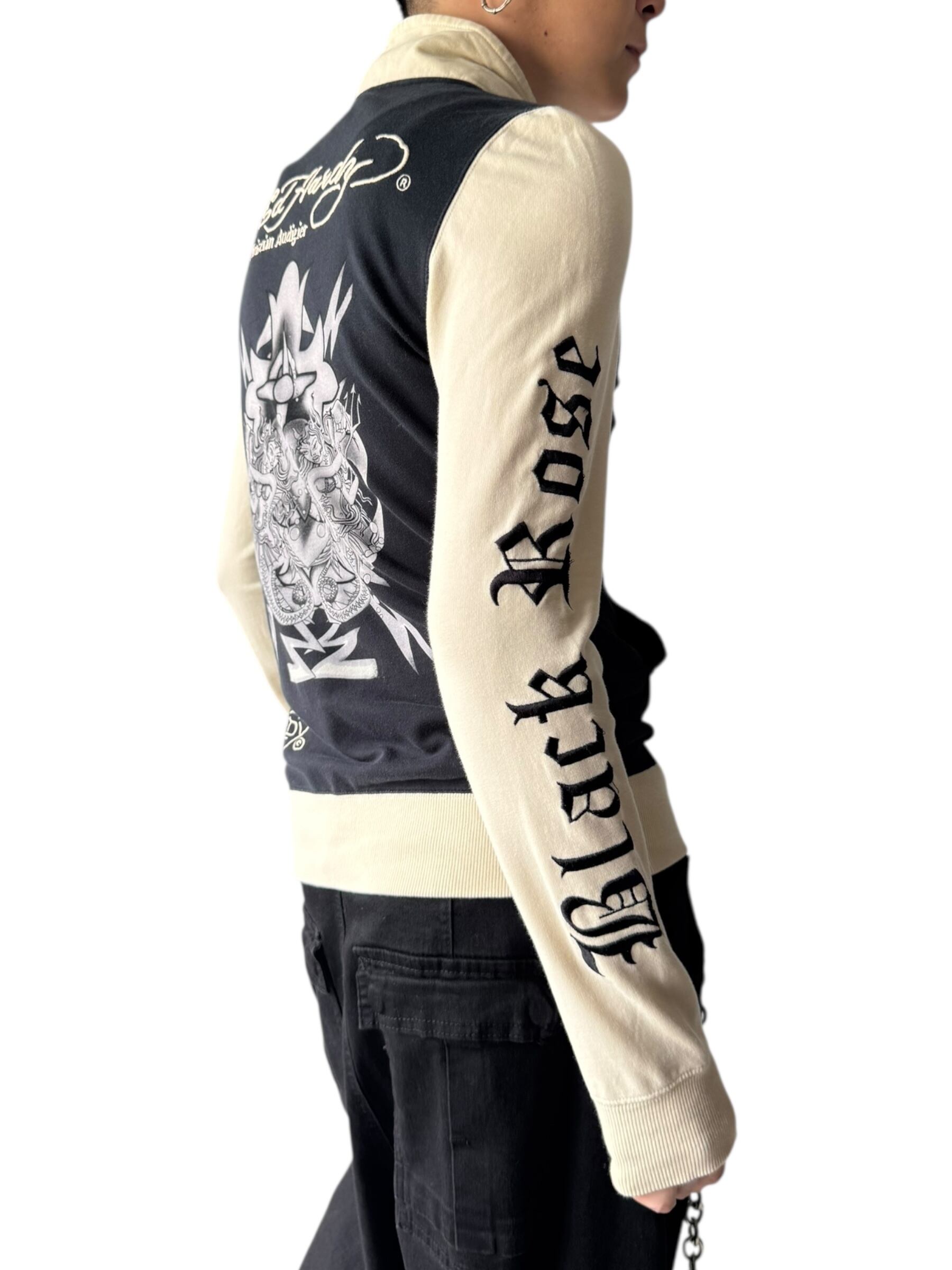 ♾Ed hardy♾ "Black Rose" tattoo design print truck jacket size M