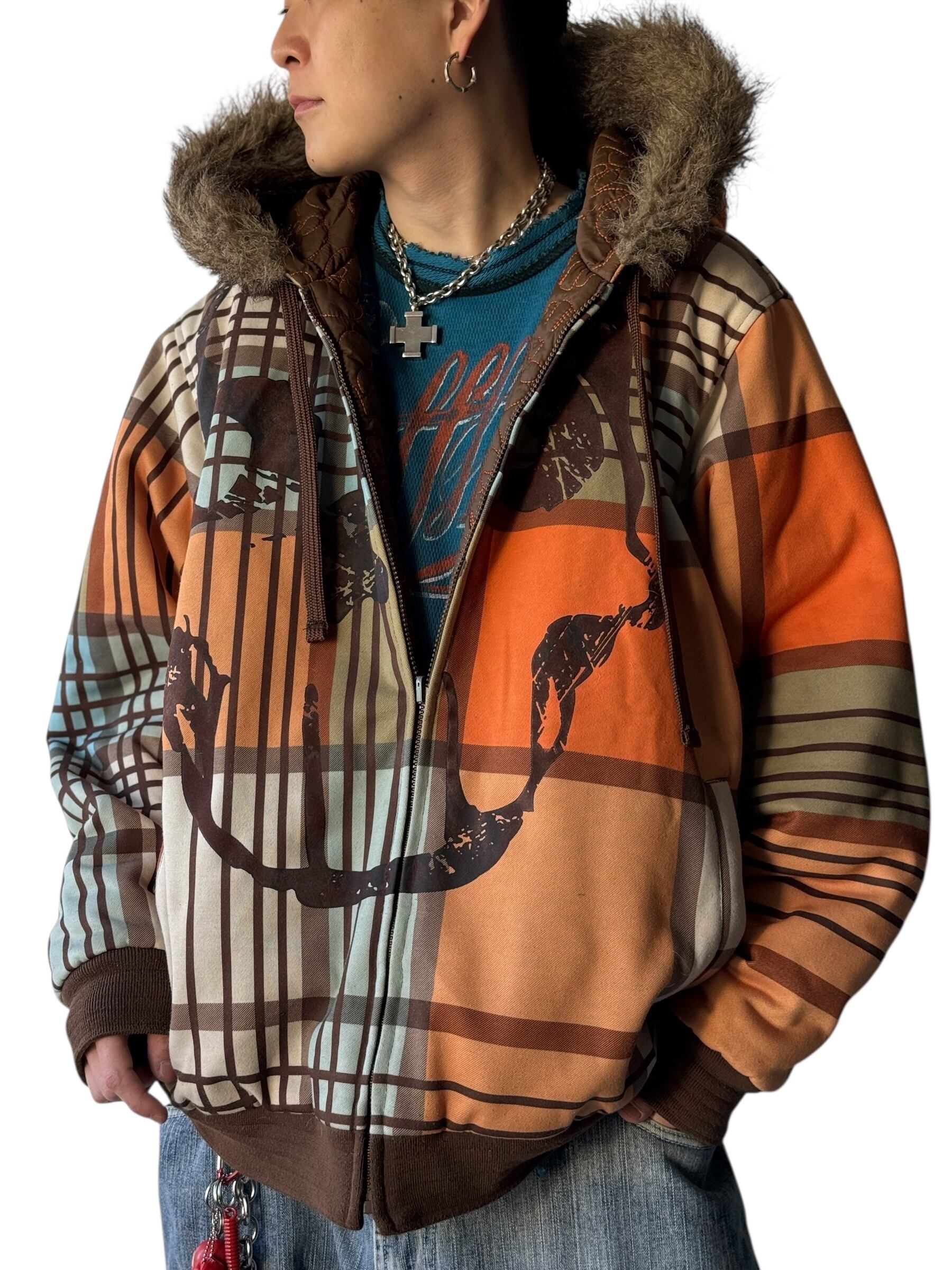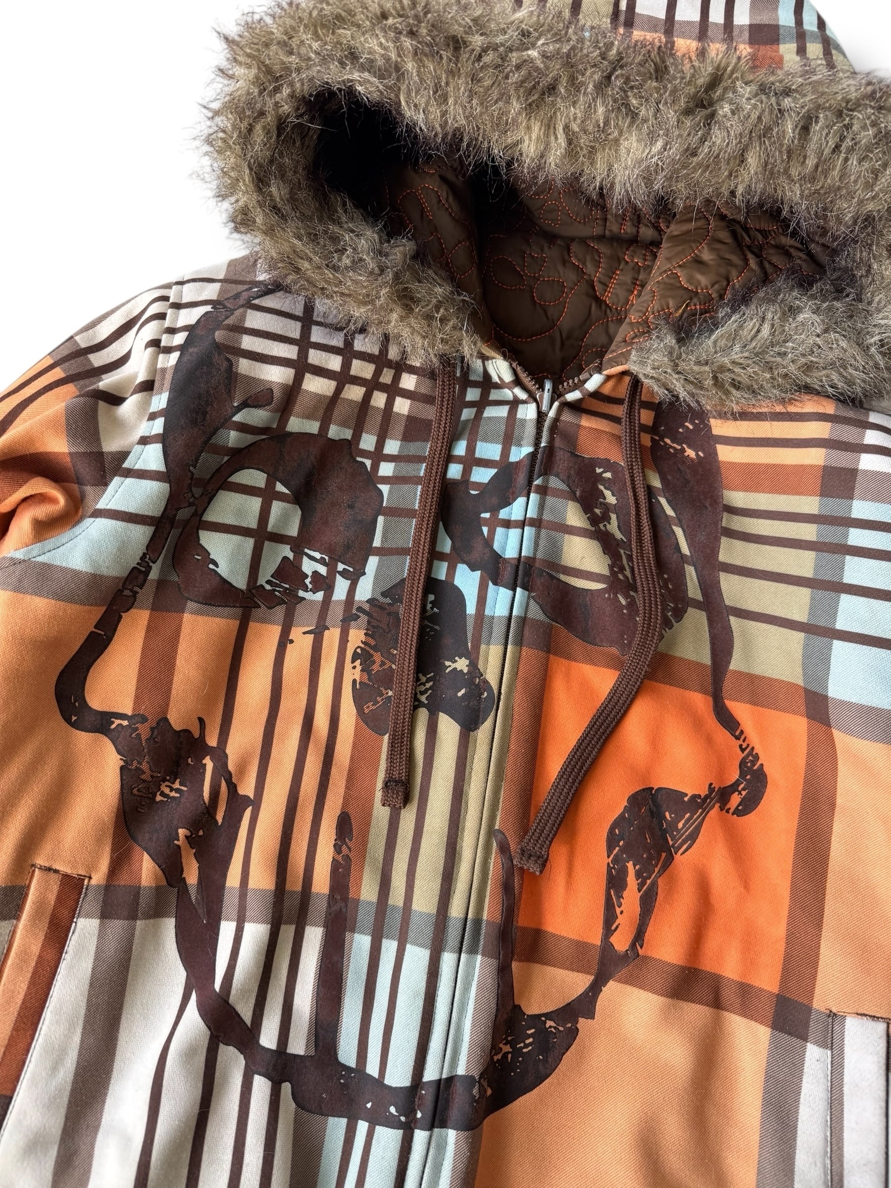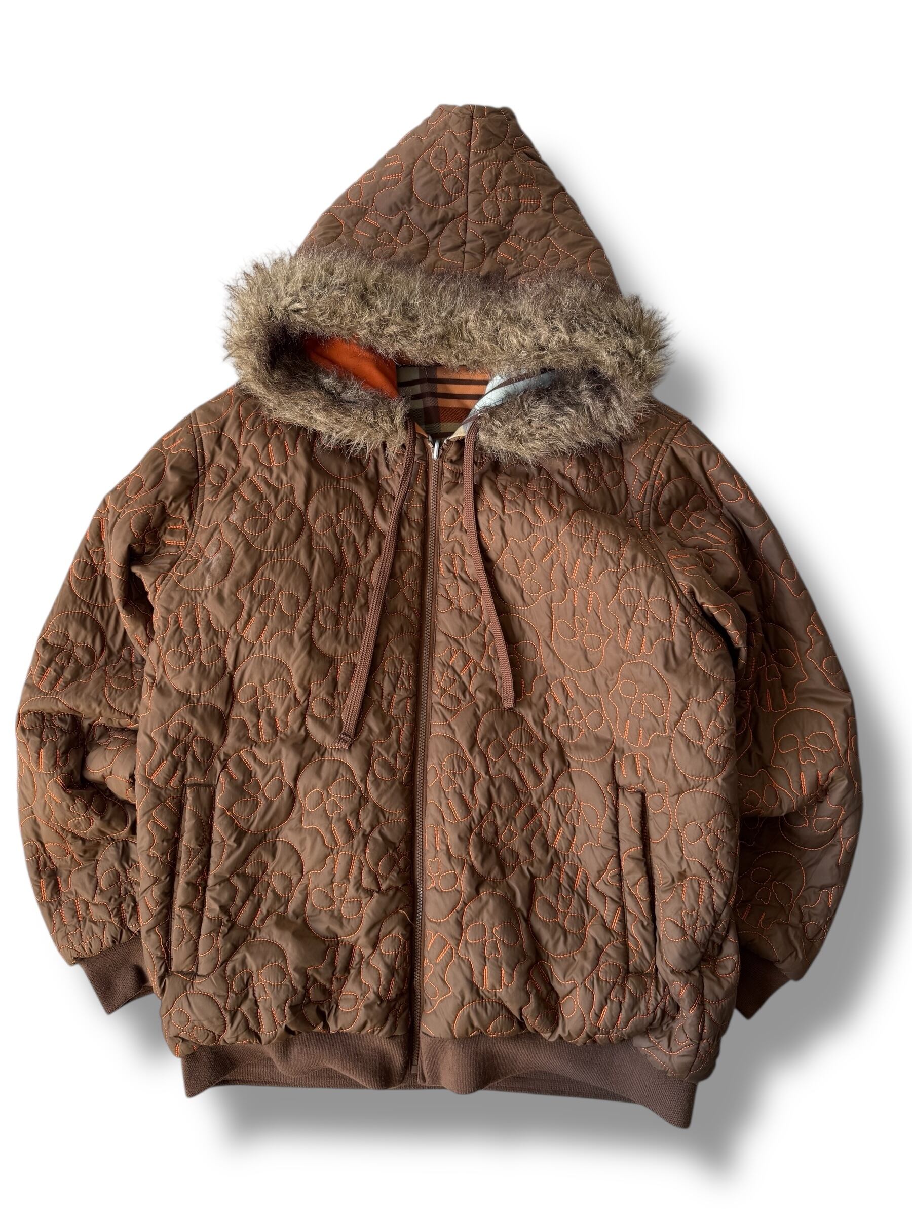 ♾ RAW BLUE ♾ embroidery skull graphic motif reversible fur hoodie blouson size L