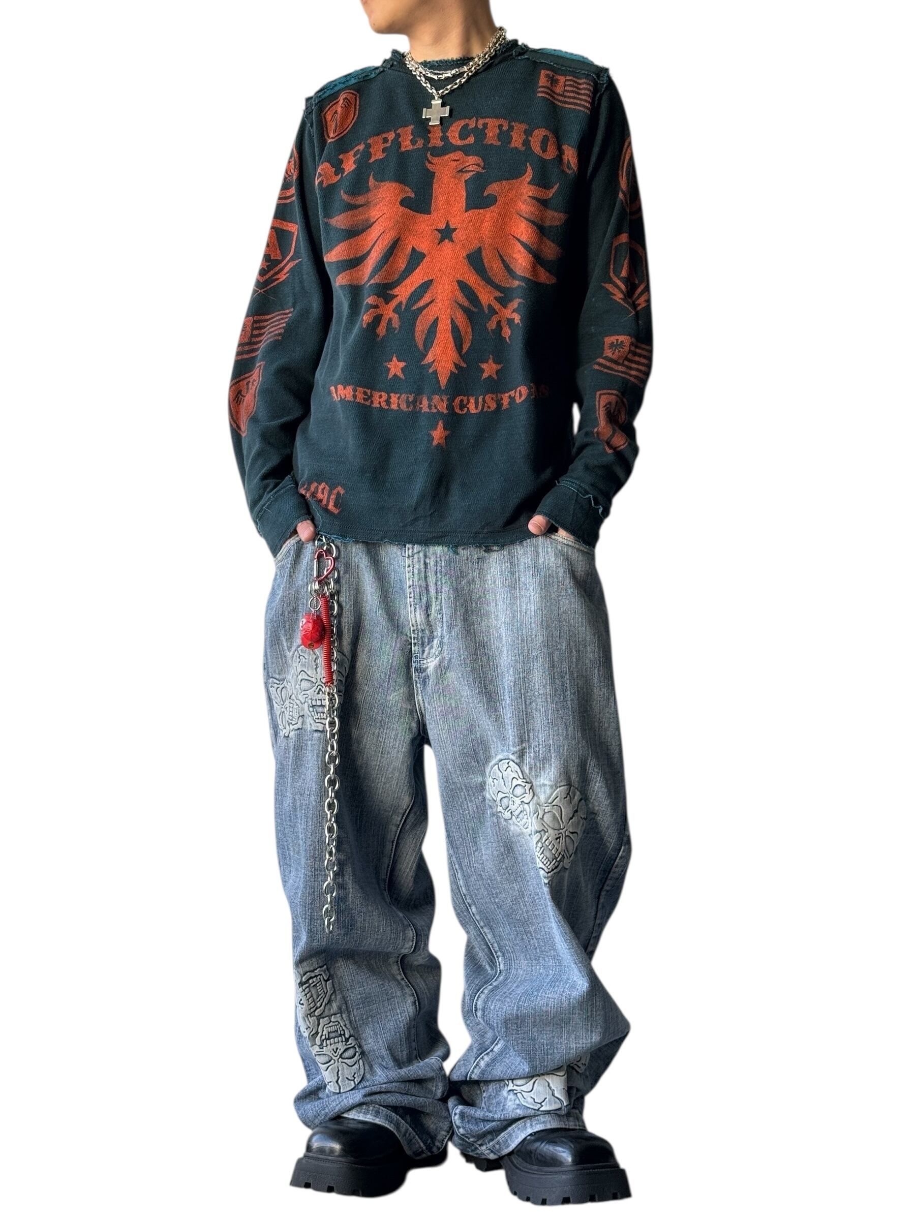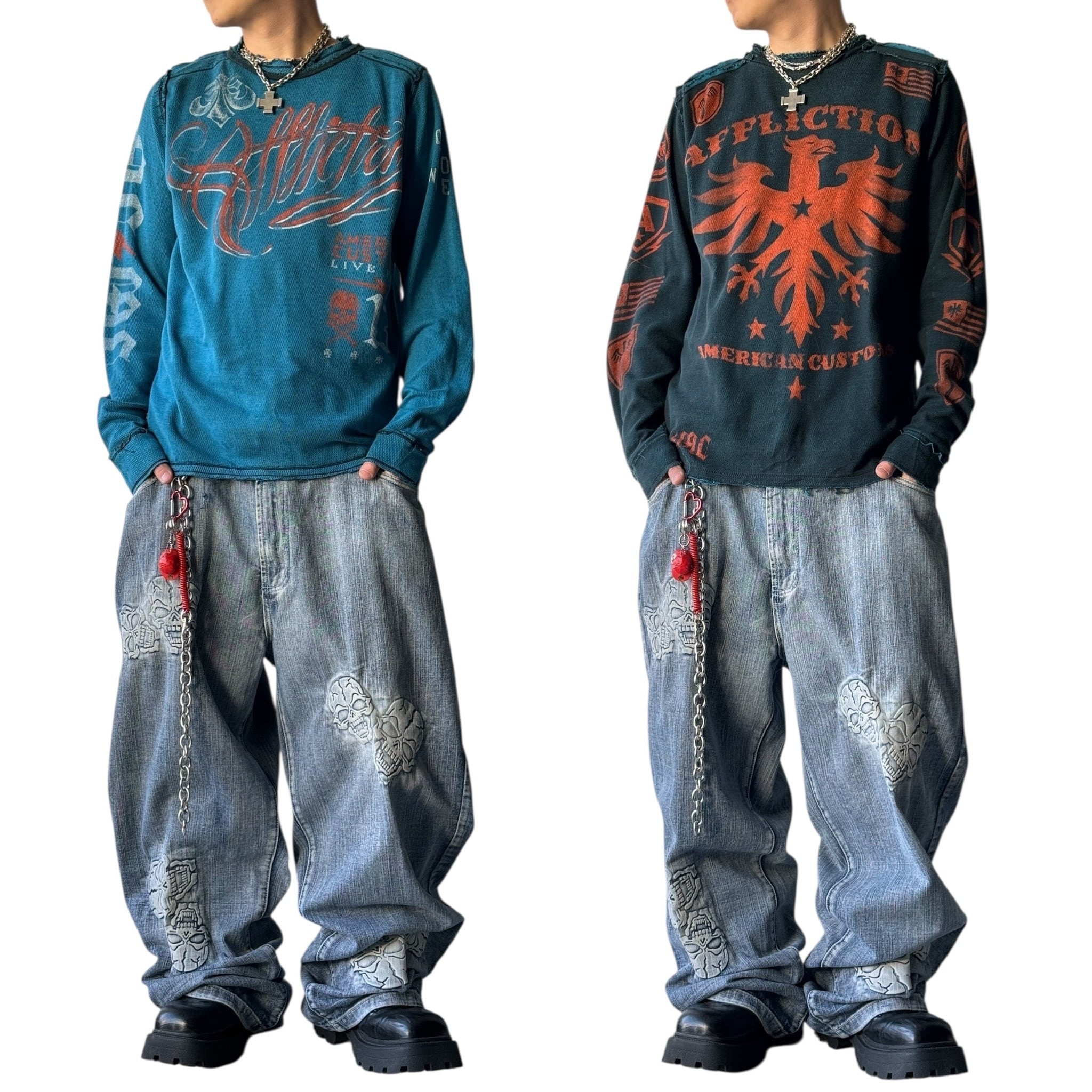 ♾Affliction♾ reversible y2k design flare print thermal size L