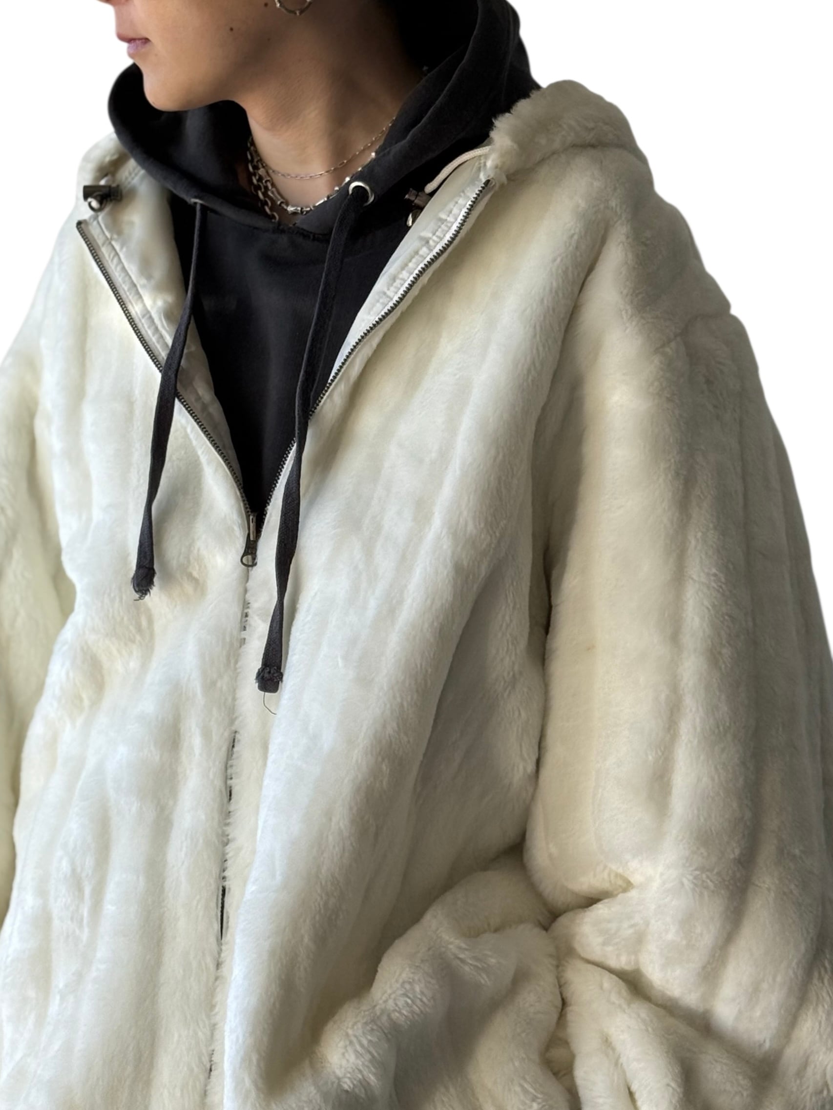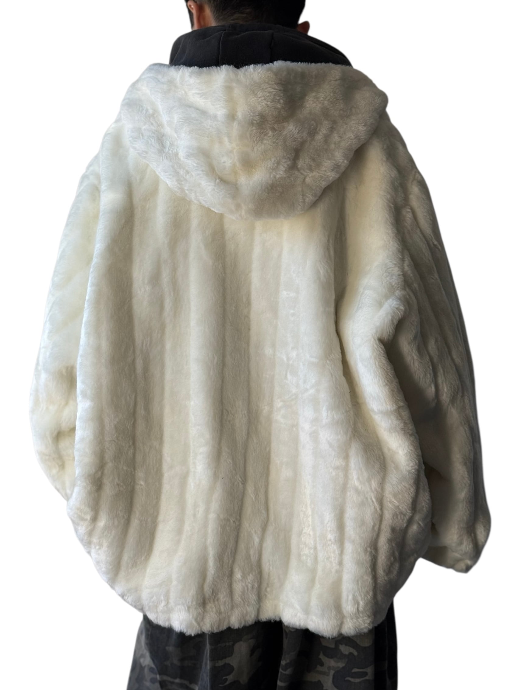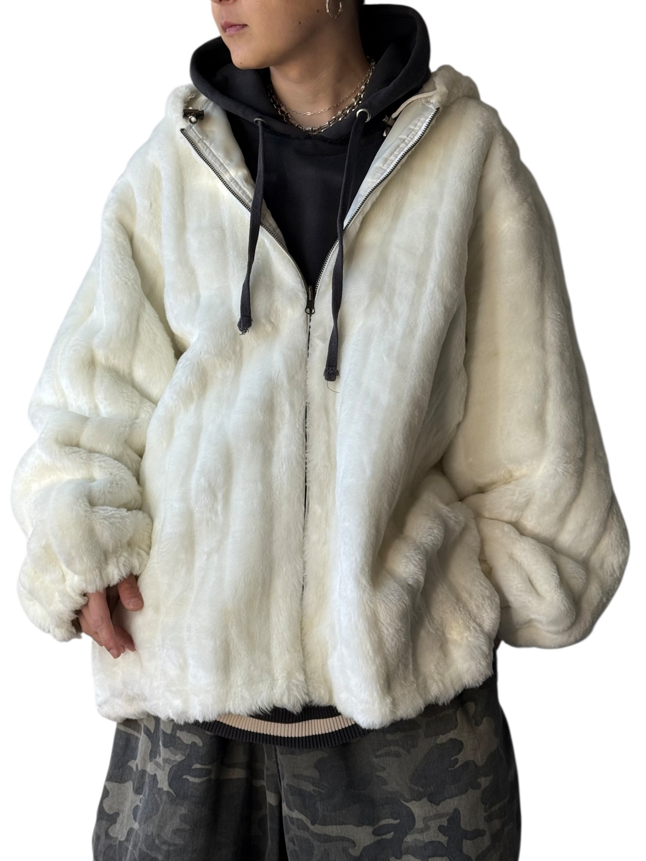 【CXT CLASSICS】Oversized Reversible pattern faux fur hooded jacket