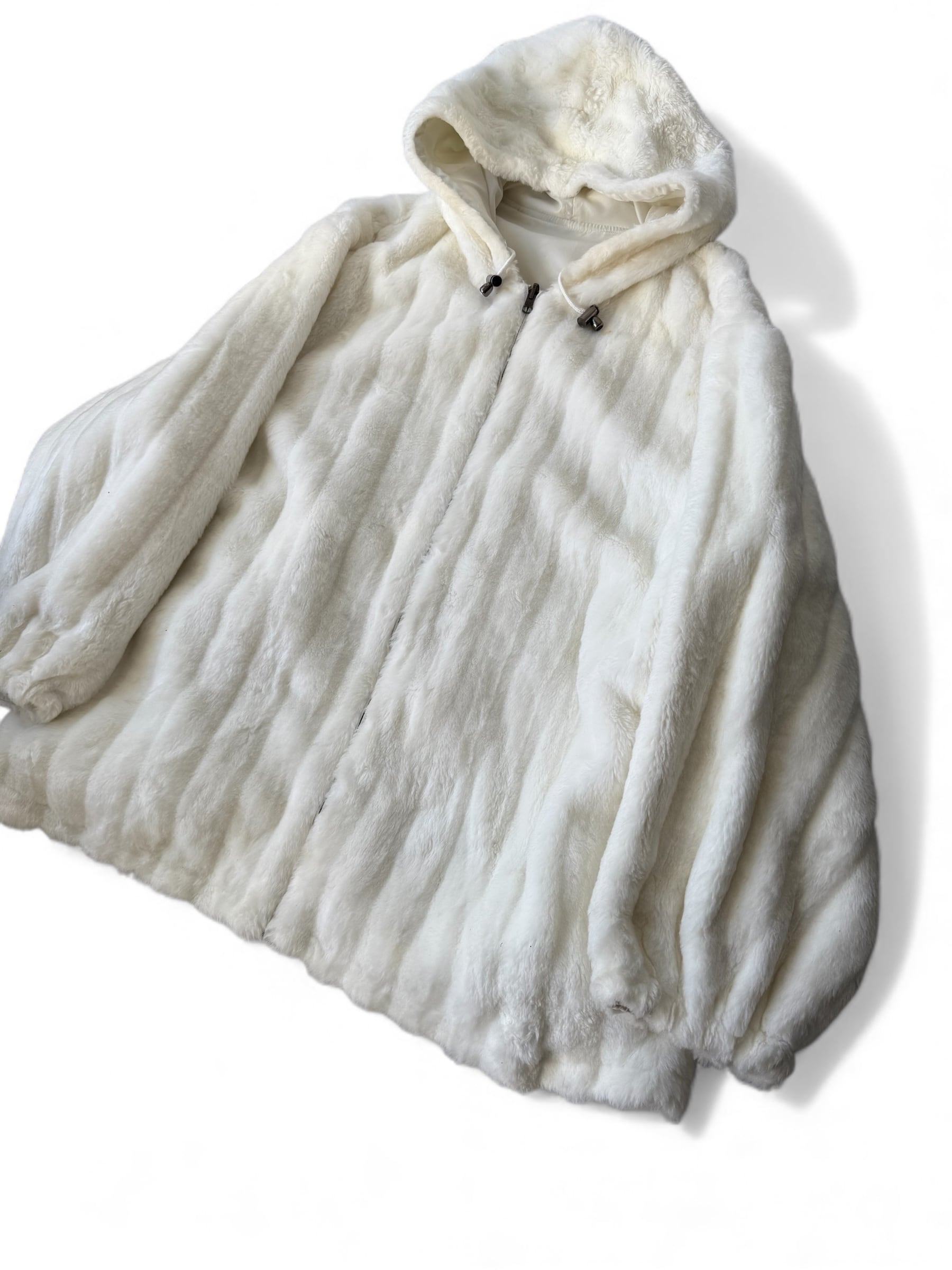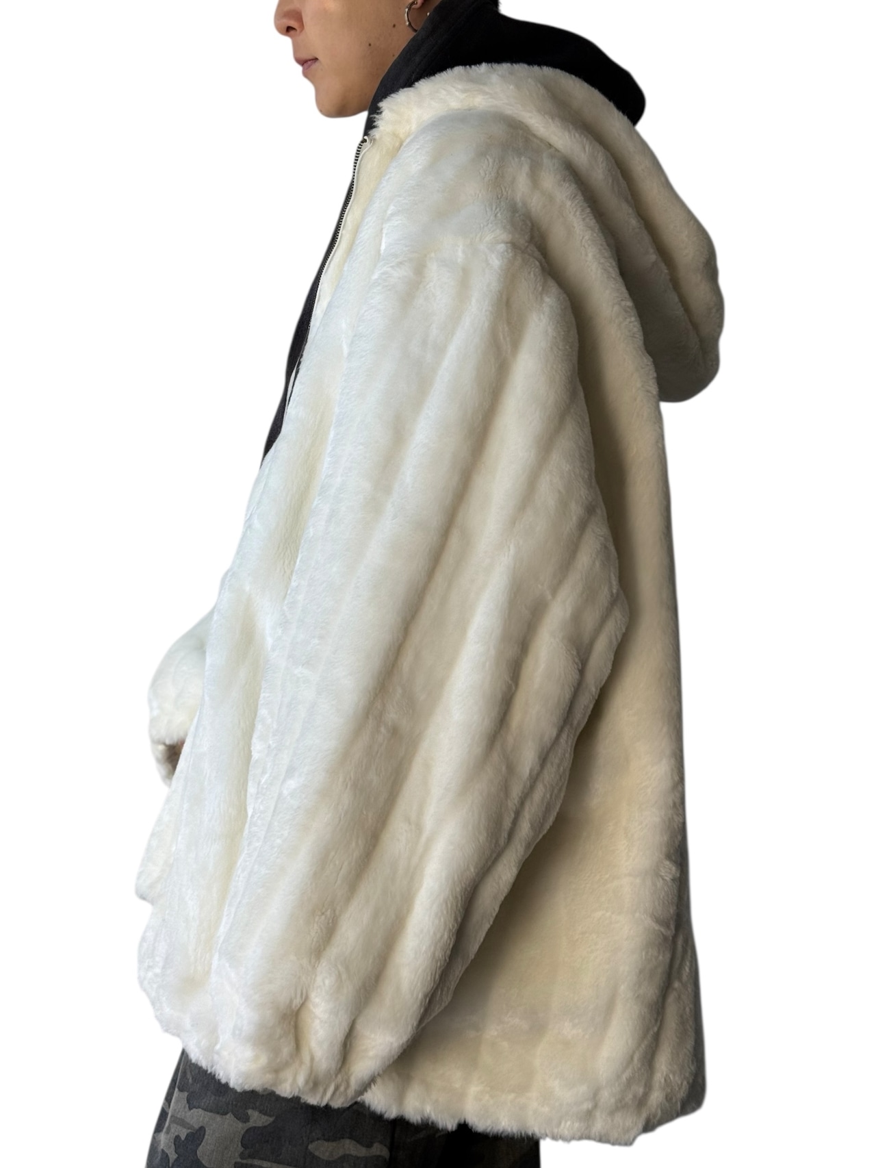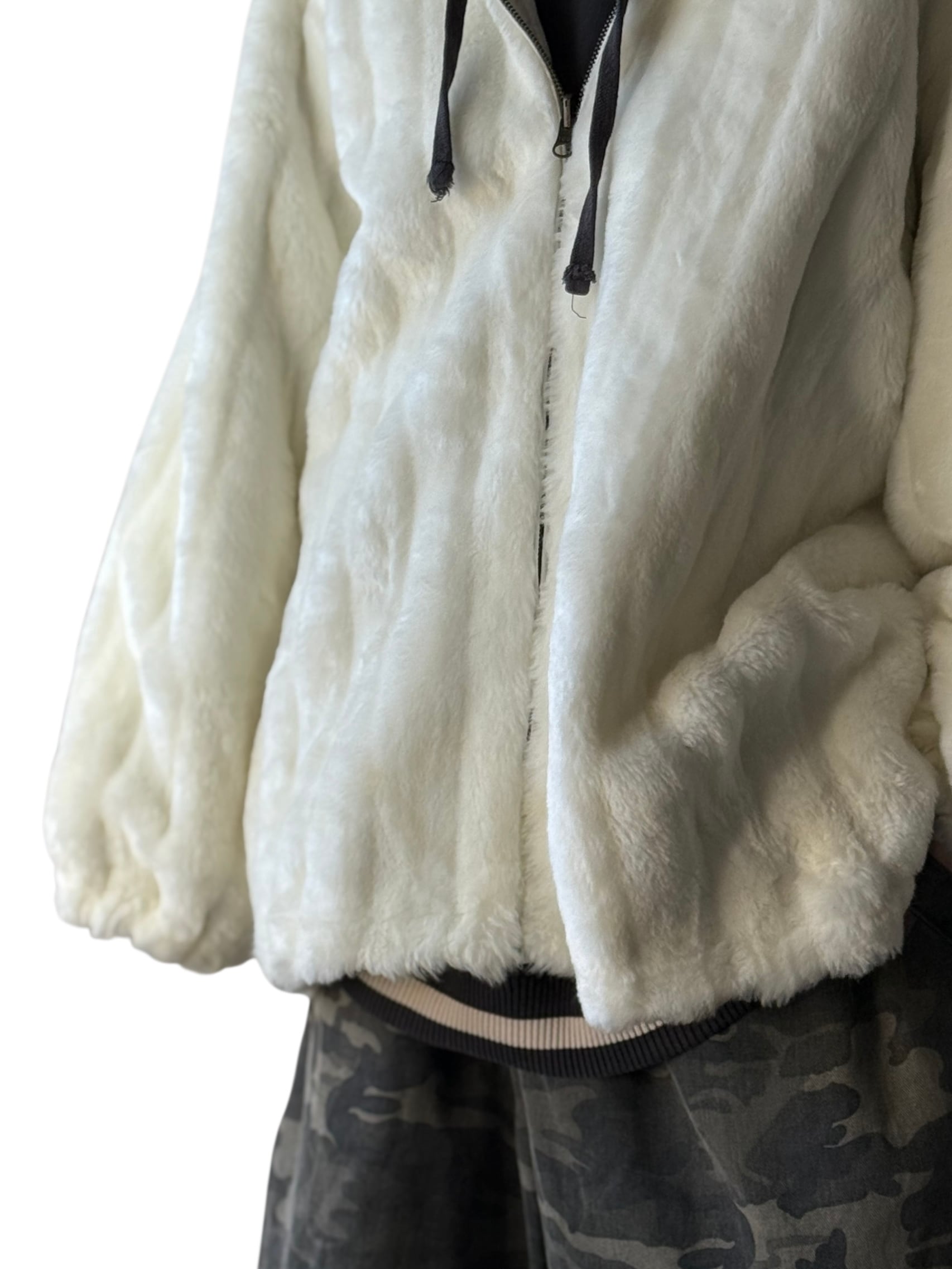 【CXT CLASSICS】Oversized Reversible pattern faux fur hooded jacket
