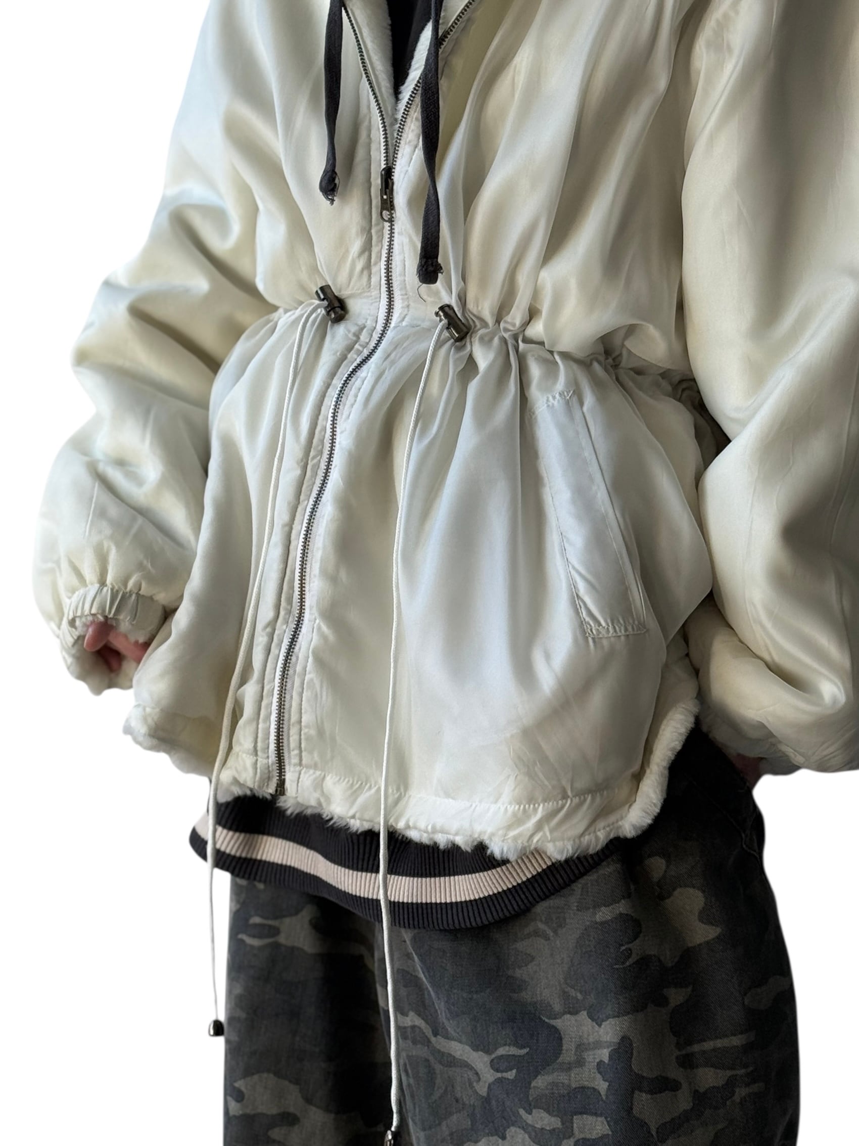 白×白で生地切り替えのおしゃれなリバーシブル✨ 古着でまず探しにくいホワイトカラー❗️ ただでさえ形もいいのにこの色は反則級‼️