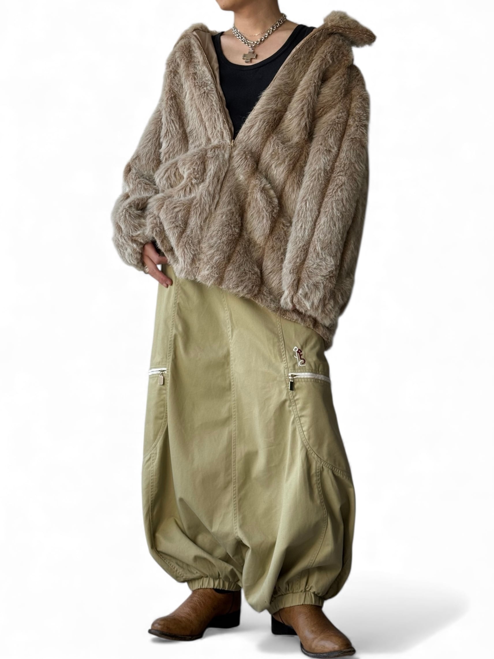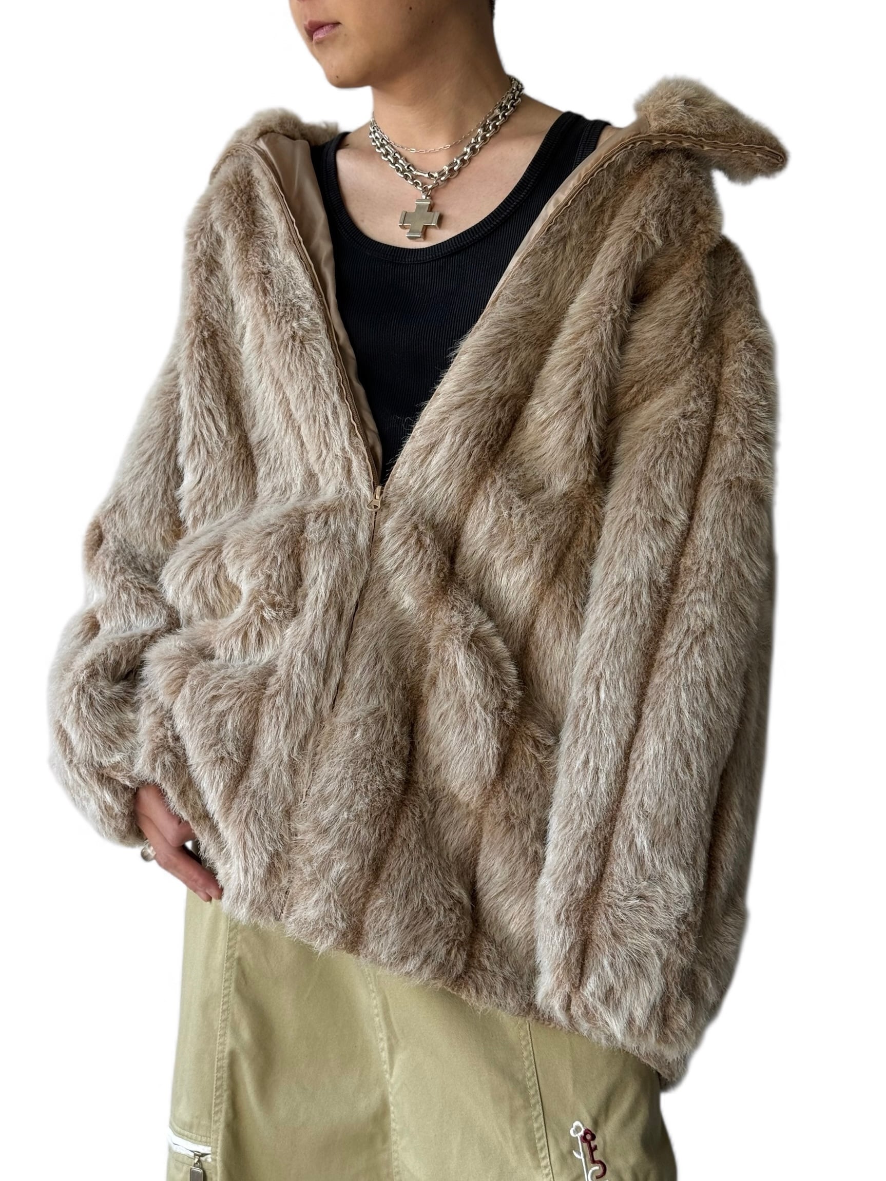 【ROAMAN'S】Oversized Volume neck faux fur zip blouson